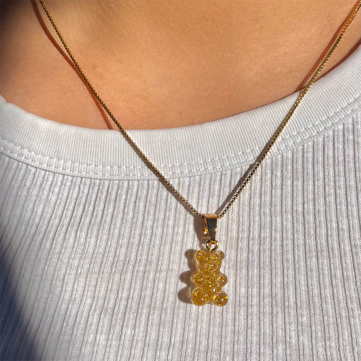 订购4周到|CRYSTAL HAZE-Nostalgia Bear-classic-碎金小熊 吊坠(金色环扣)[挪威设计师]