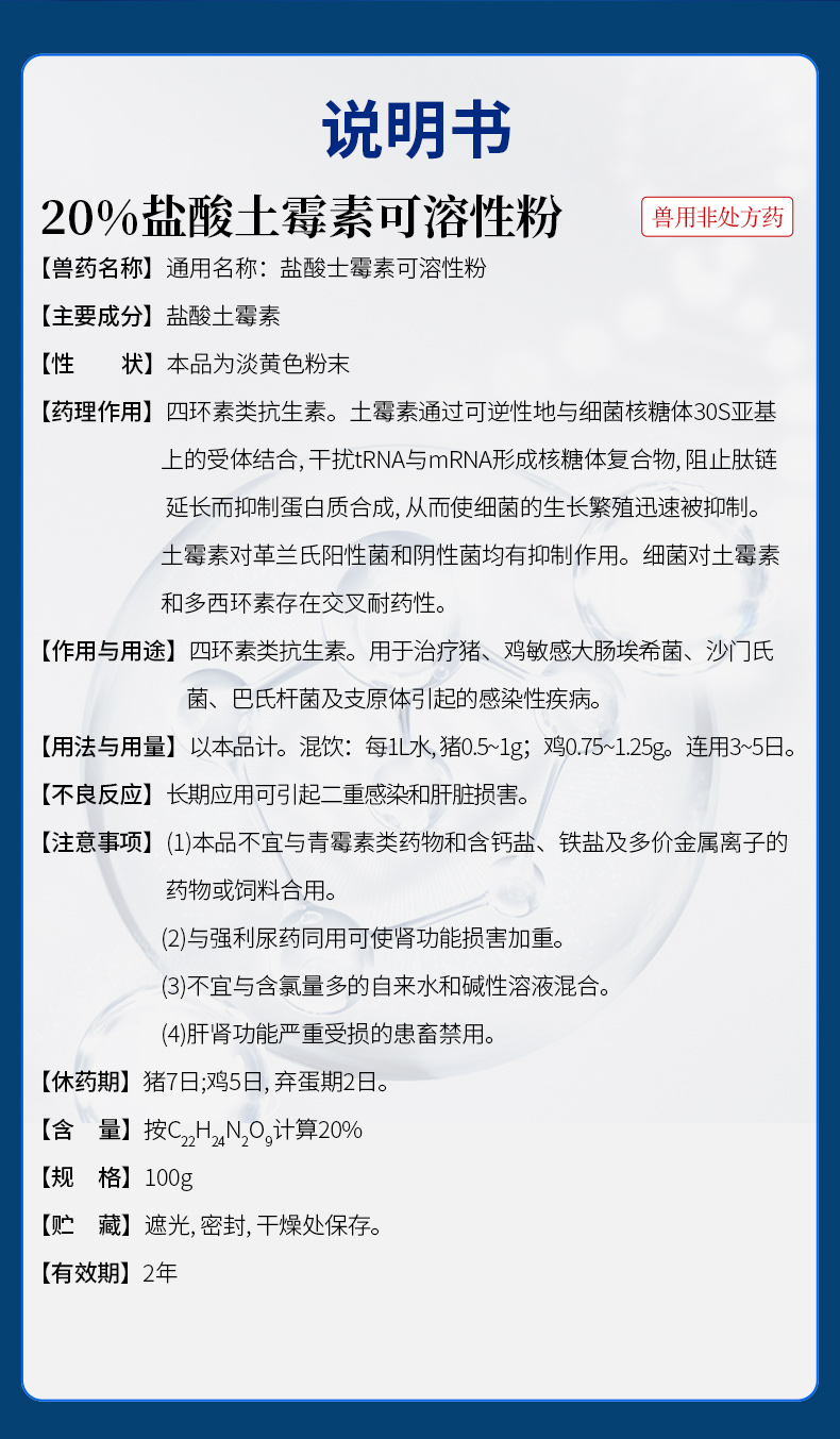 【积分兑换】华畜兽用 20%盐酸土霉素可溶性粉 采用脱色结晶工艺 药效释放更彻底