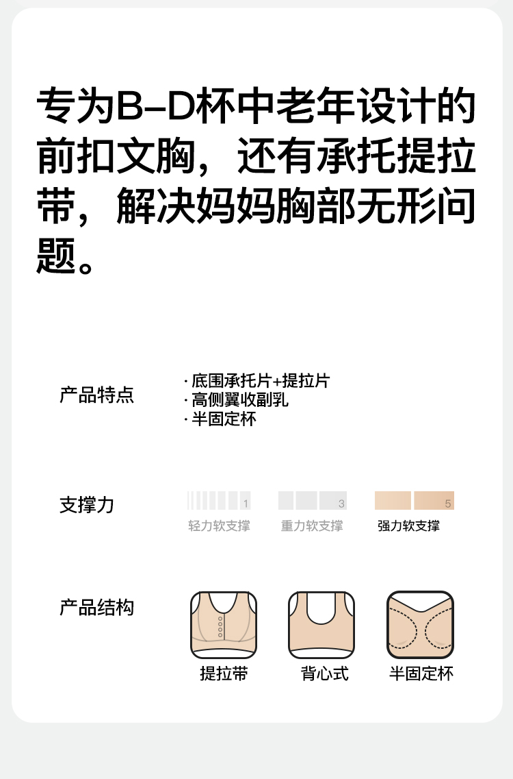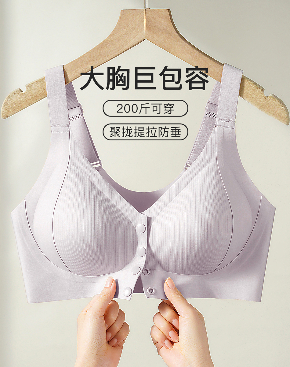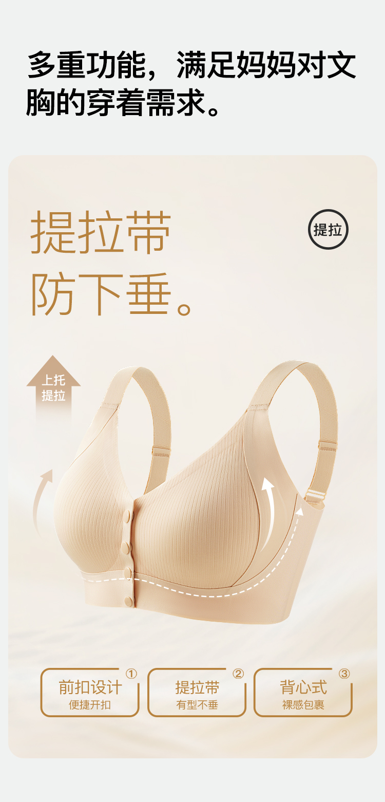 【无痕前开扣】中老年妈妈内衣女上托提拉防垂收副乳背心式文胸罩风华九歌