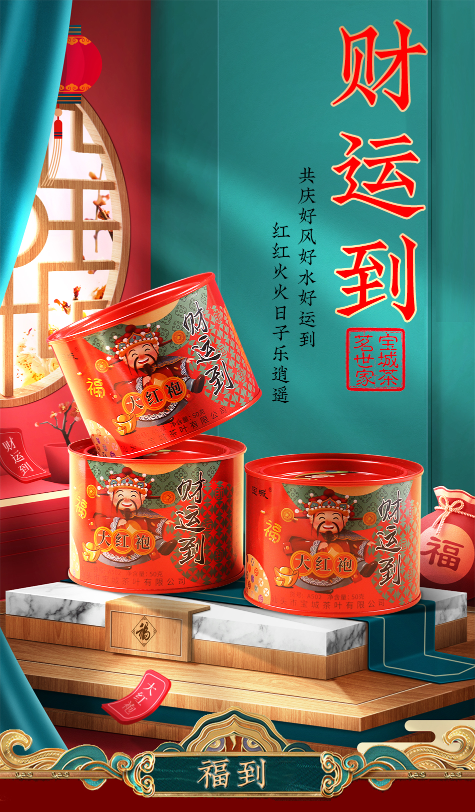宝城财运到大红袍茶叶10罐装共500克散装浓香型乌龙茶礼盒A502