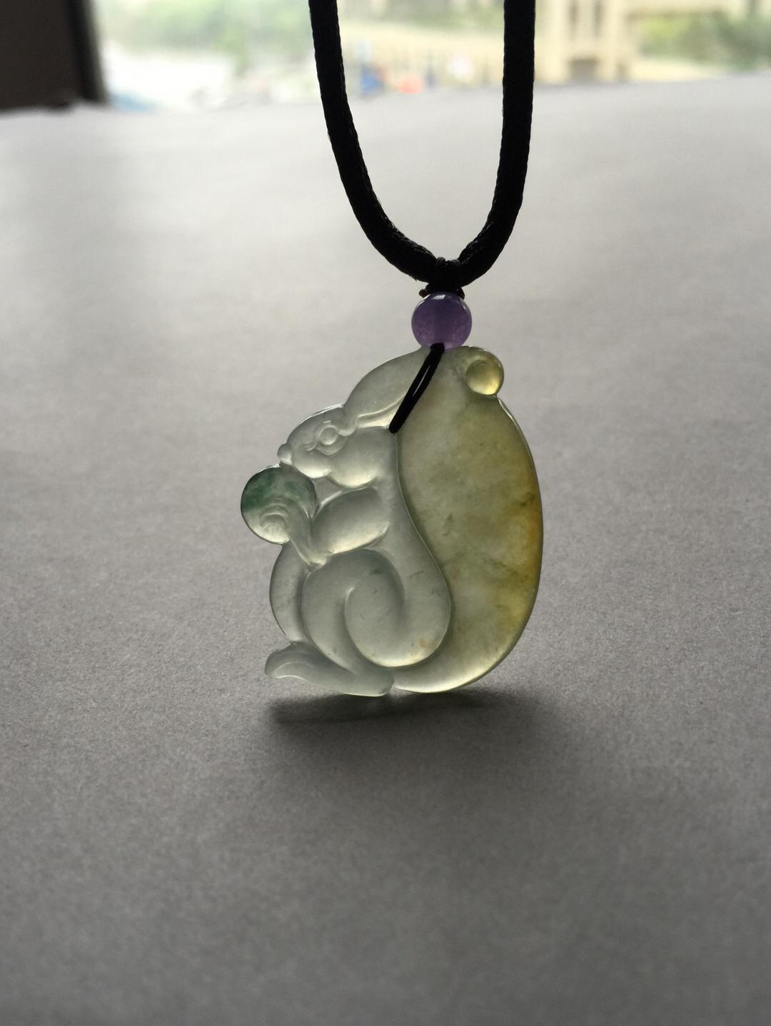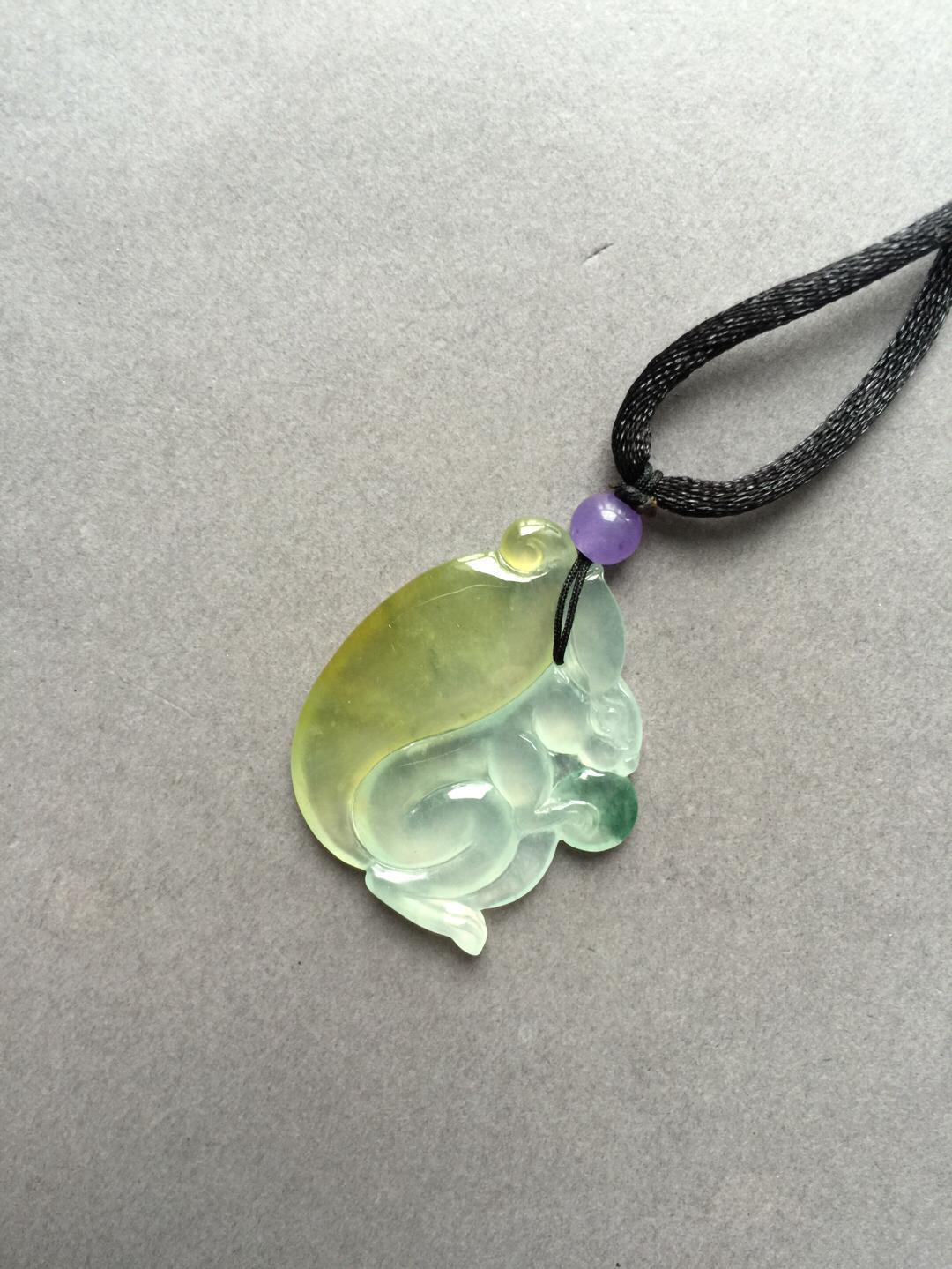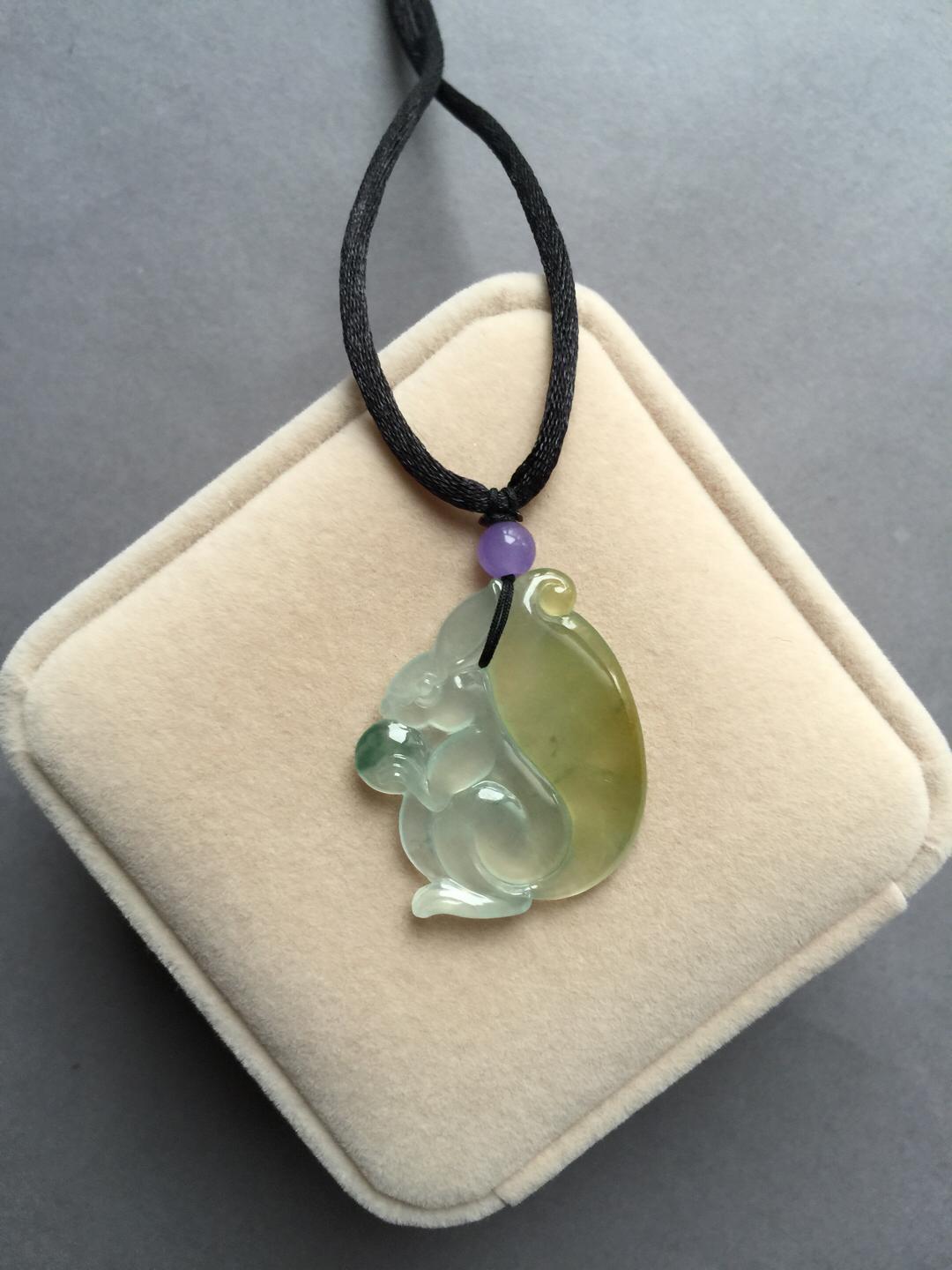 高冰种黄加绿翡翠三彩松鼠,福鼠运财,30*25.5*3.6mm。尺寸大气,种水棒,荧光四射,一条黄翡大尾巴精美异常,更巧妙的是绿色巧做松果。顿时让宝贝增添一份情趣。一件十分有情怀的作品。上好的高冰黄翡原料,如此品质很稀有,本来可以无脑雕刻个如意,福贝神马的,肯定很有销路。但是做这行,得有点担当对吧,没有突破和创新,怎么是翡翠禄来呢。小众的松鼠,送给同样小众的你,只为人群中这份与众不同