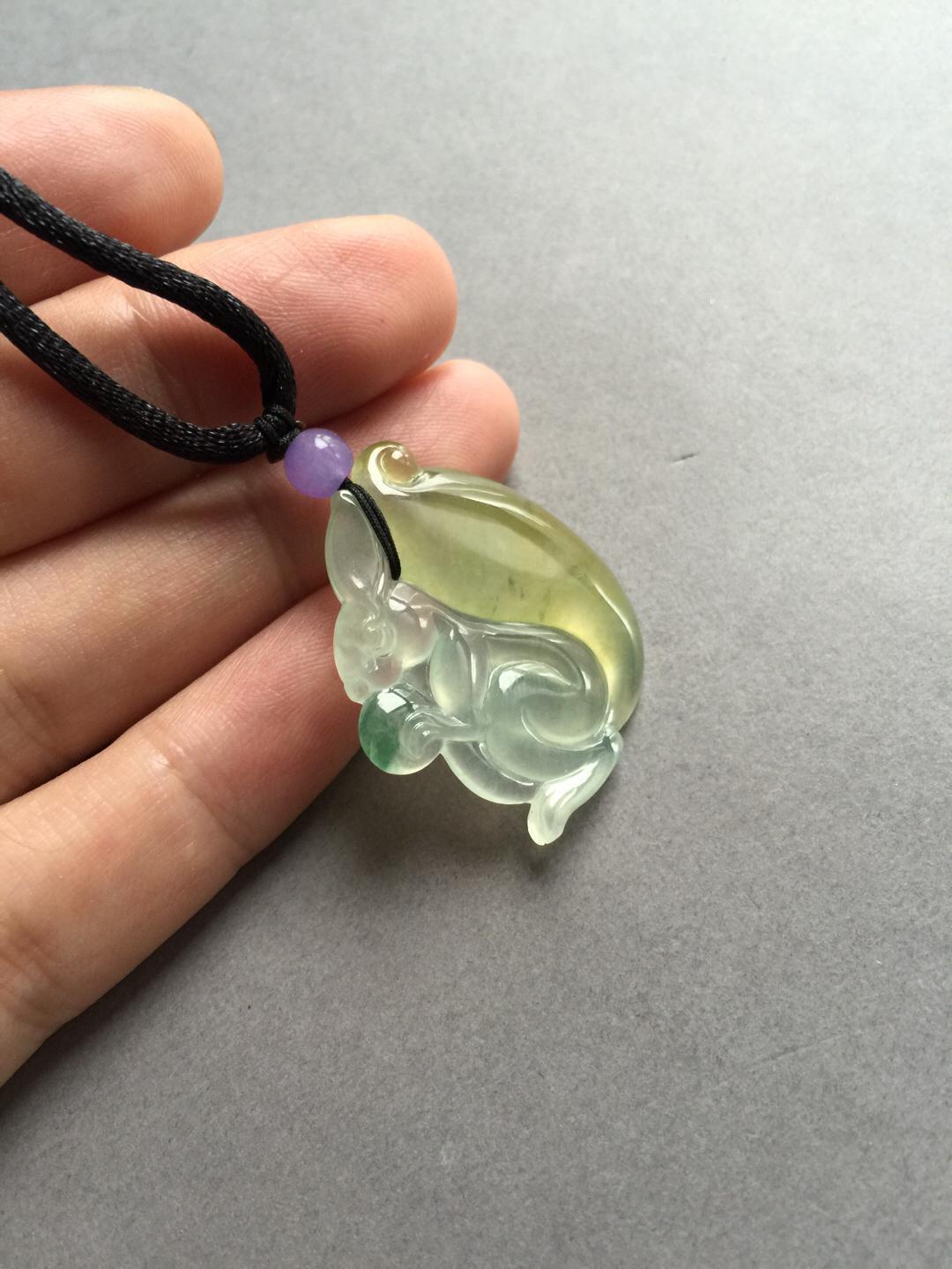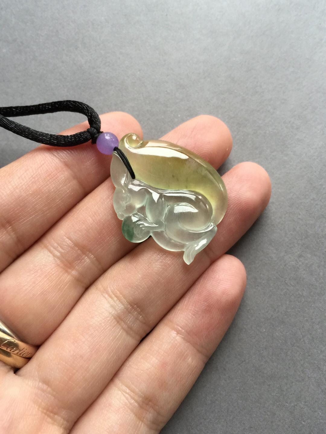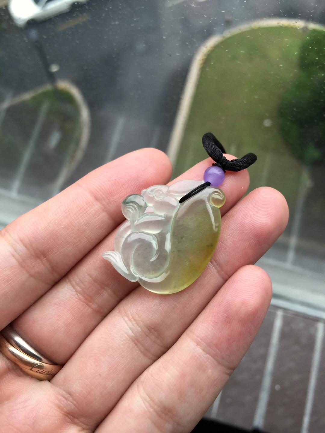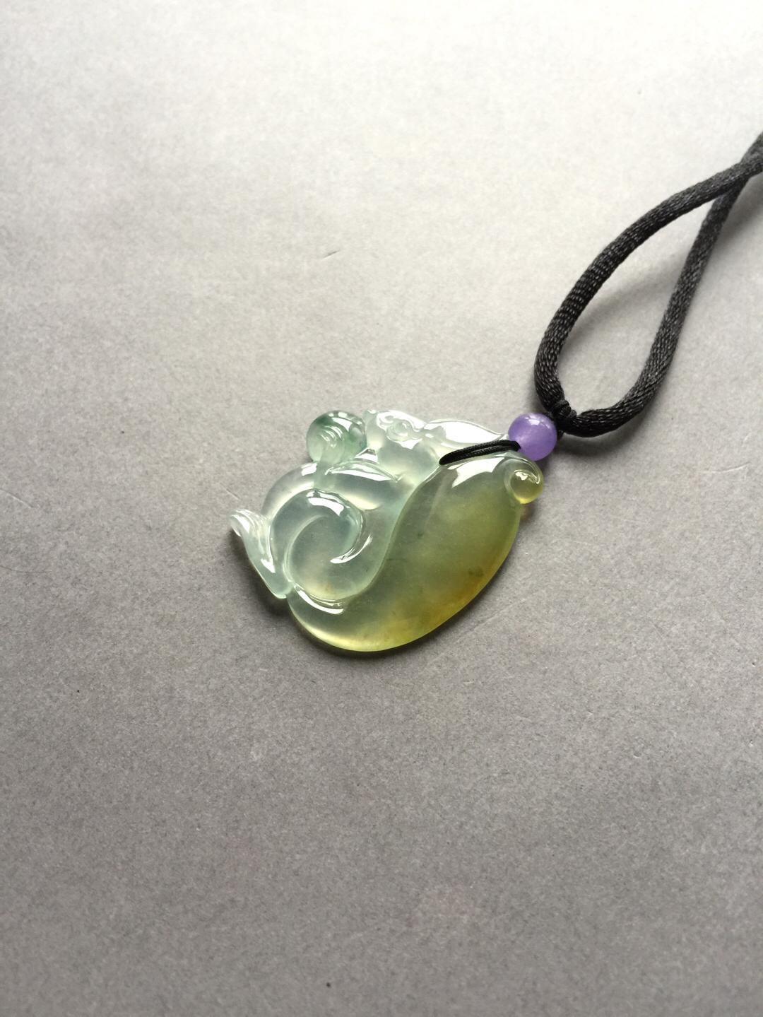 高冰种黄加绿翡翠三彩松鼠,福鼠运财,30*25.5*3.6mm。尺寸大气,种水棒,荧光四射,一条黄翡大尾巴精美异常,更巧妙的是绿色巧做松果。顿时让宝贝增添一份情趣。一件十分有情怀的作品。上好的高冰黄翡原料,如此品质很稀有,本来可以无脑雕刻个如意,福贝神马的,肯定很有销路。但是做这行,得有点担当对吧,没有突破和创新,怎么是翡翠禄来呢。小众的松鼠,送给同样小众的你,只为人群中这份与众不同