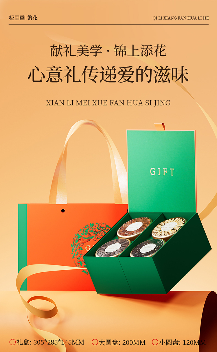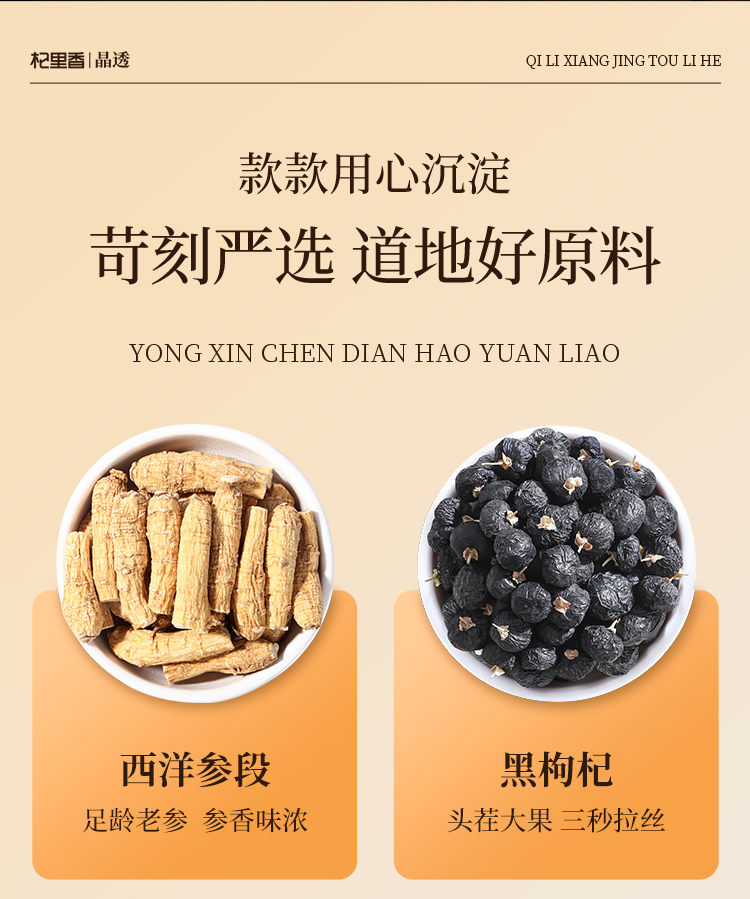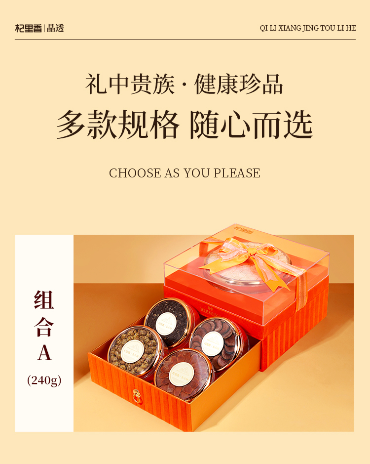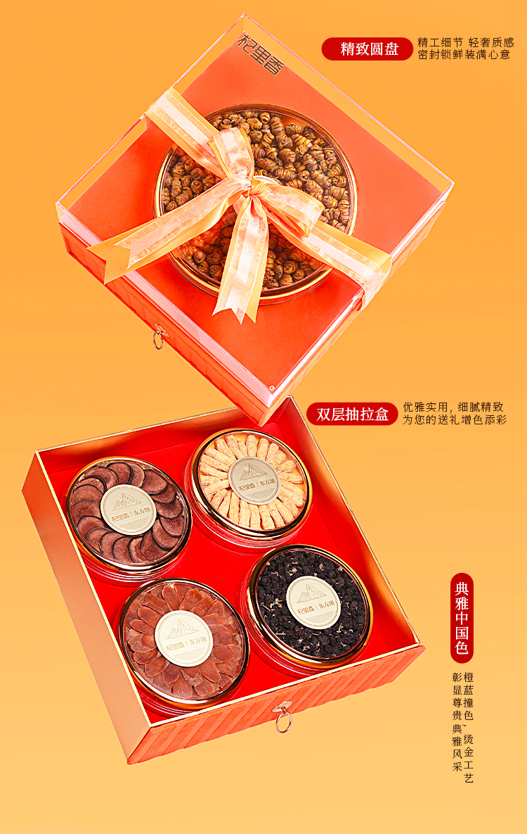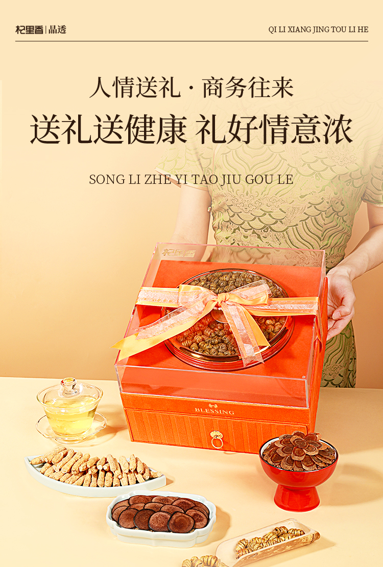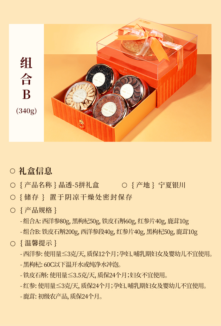 【冬季滋补】杞里香340g双层晶透橙色5拼礼盒-B石斛200g,西洋参段40g,红参40g,鹿茸10g, 黑枸杞50