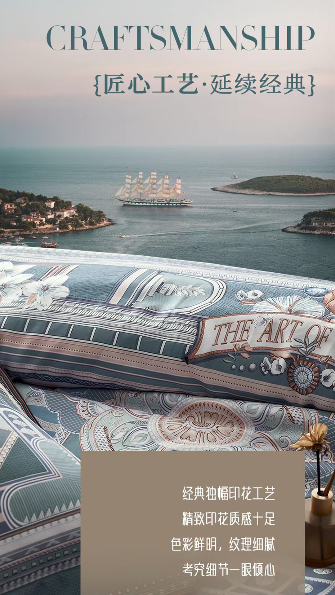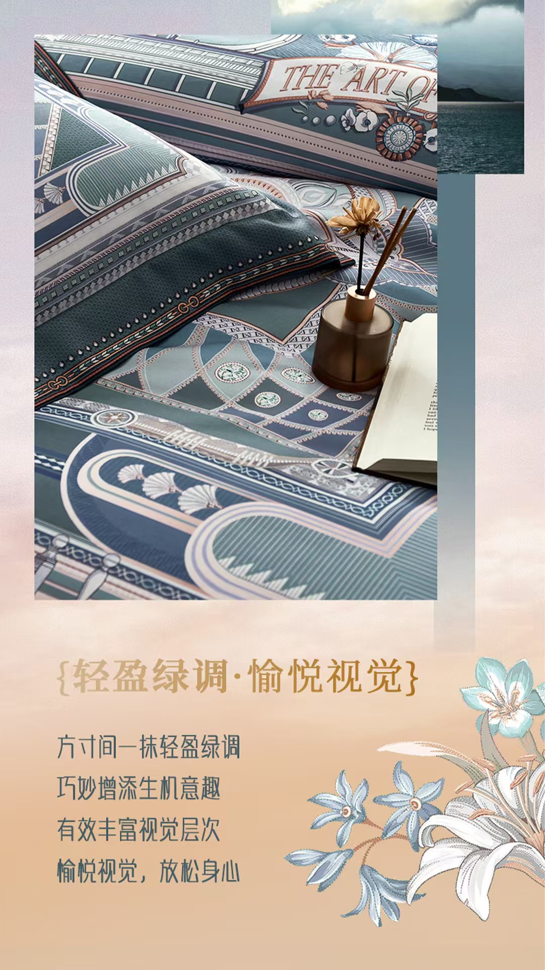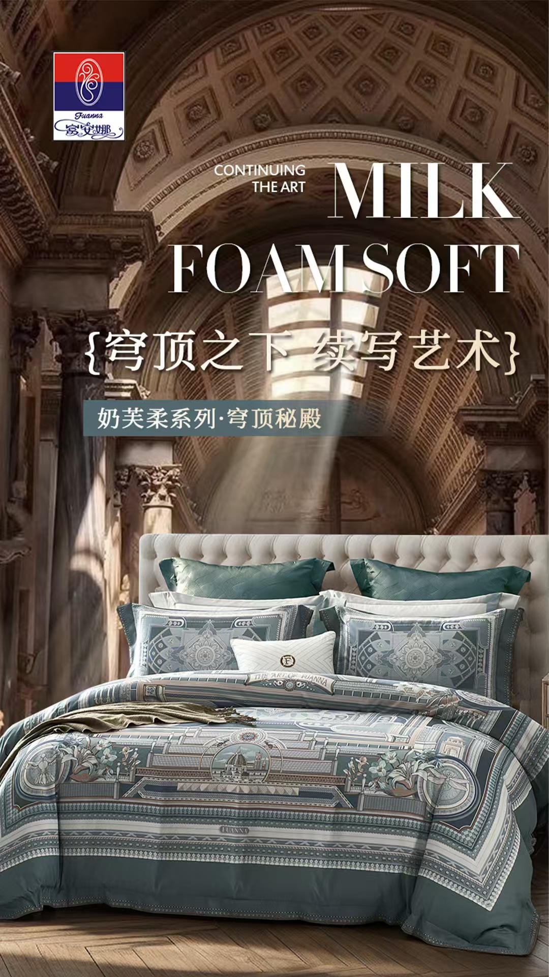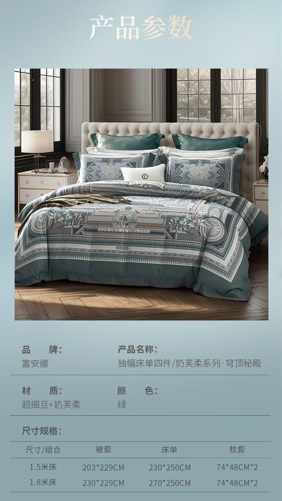 【6楼】富安娜国绣独幅床单四件/奶芙柔系列·穹顶秘殿,绿