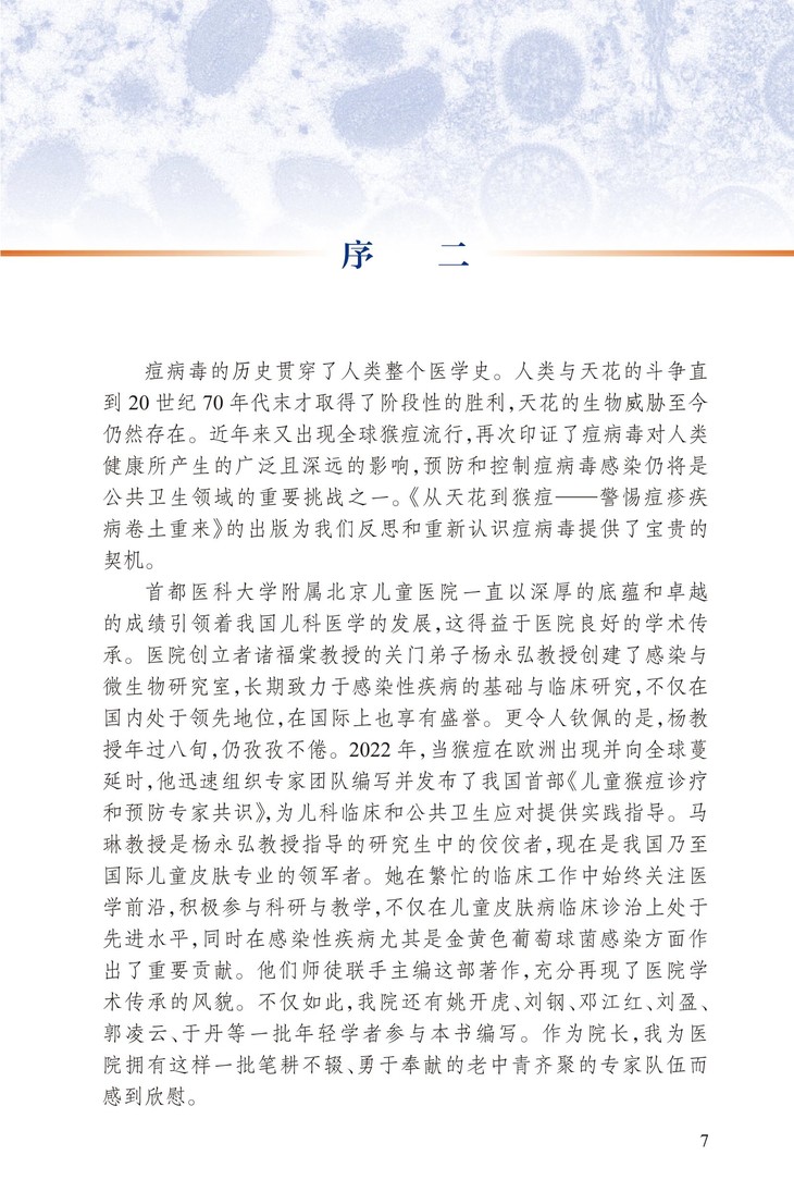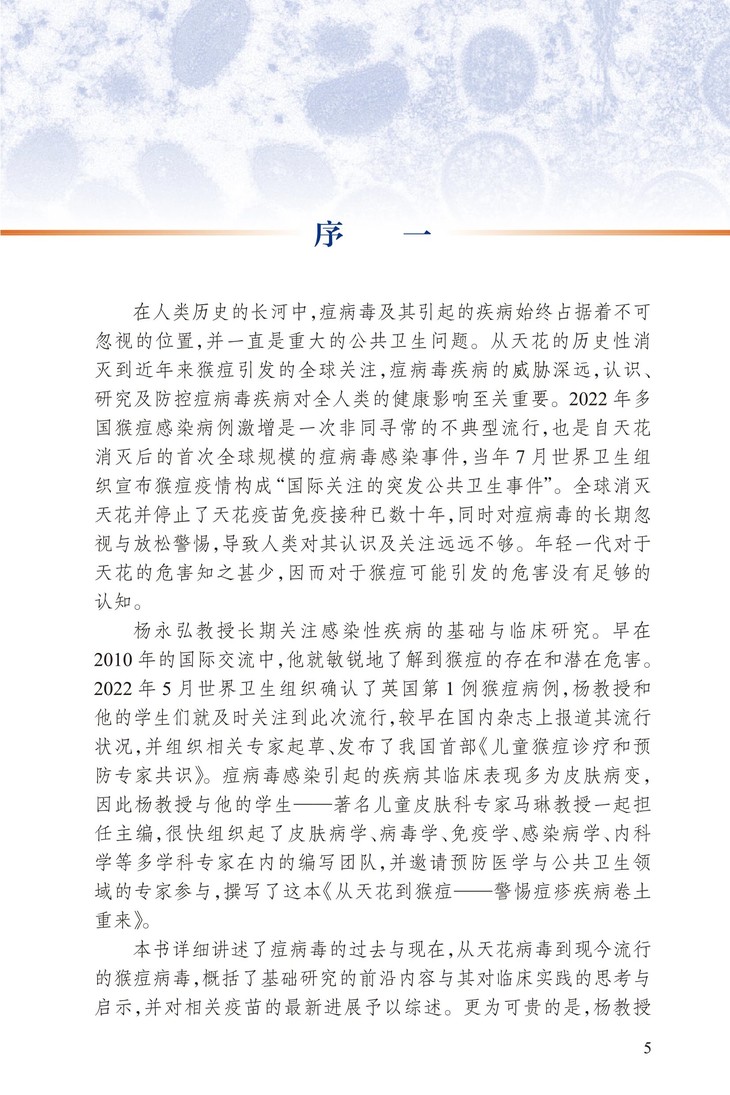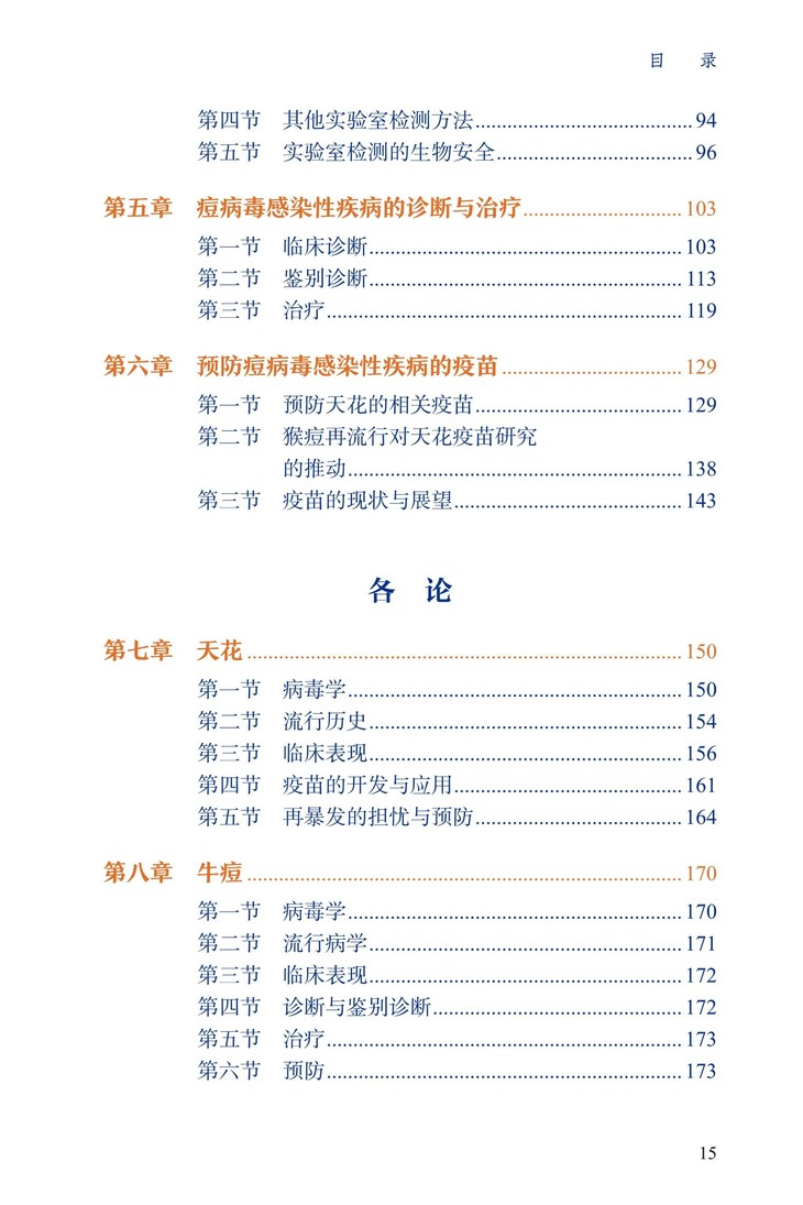 各论部分介绍了不同痘病毒,如天花、牛痘、痘苗、猴痘、羊口疮等引起的感染性疾病,重点讨论了天花和猴痘。