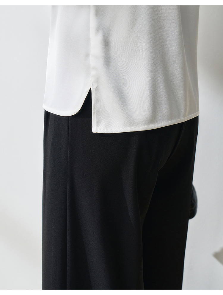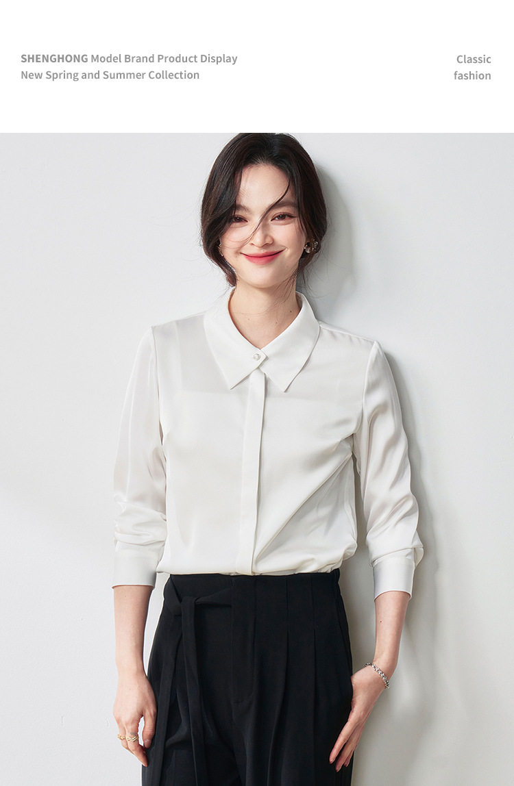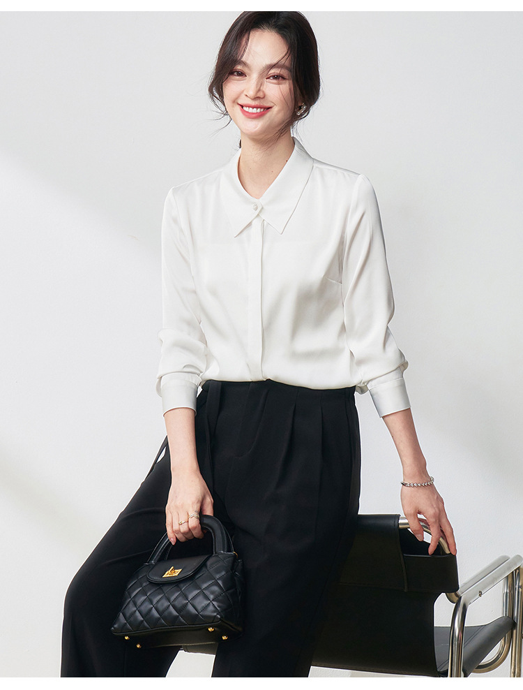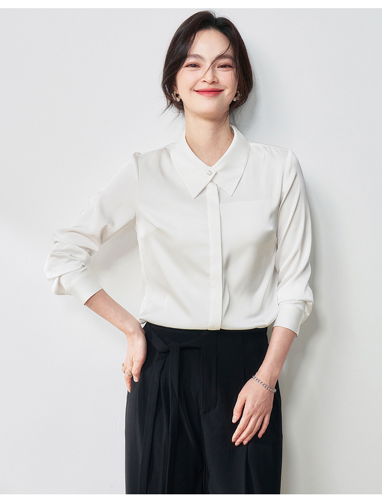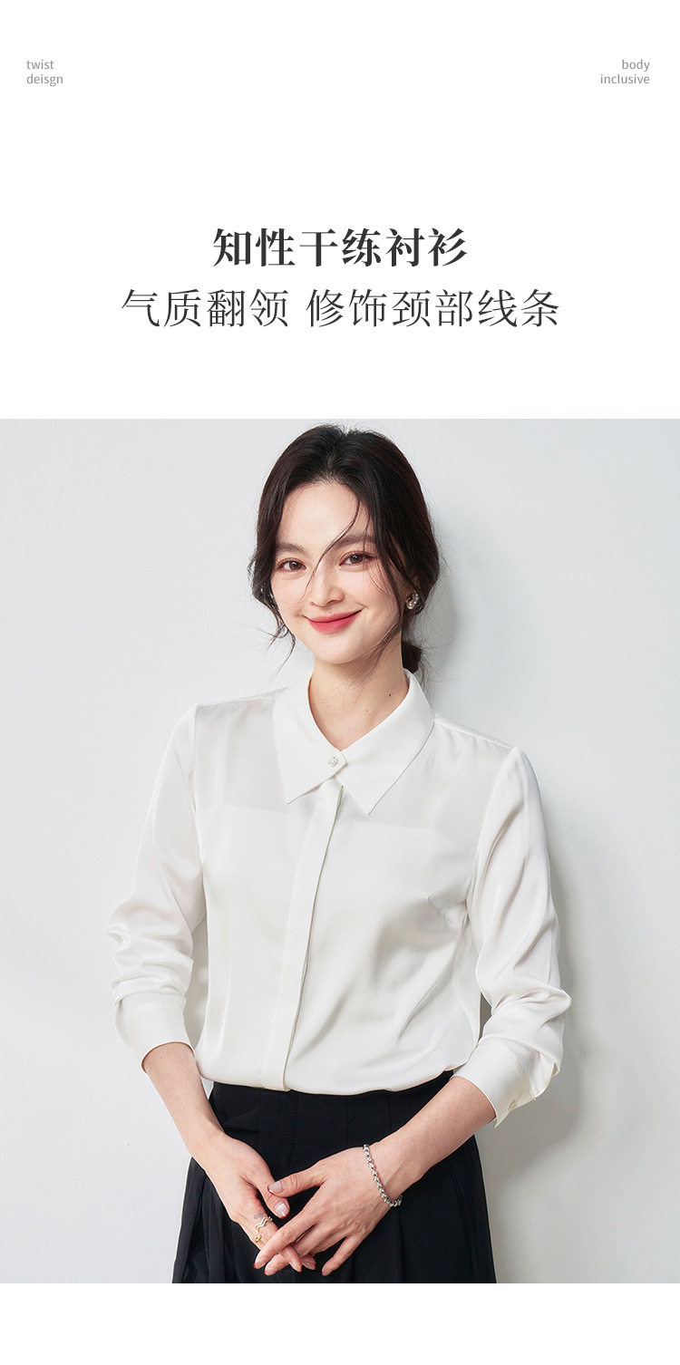 25春夏设计感交叉领通勤OL优雅气质仿醋酸哑光缎面长袖衬衫!