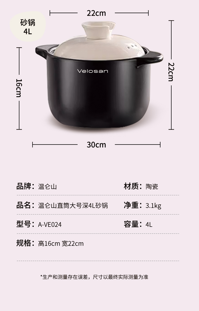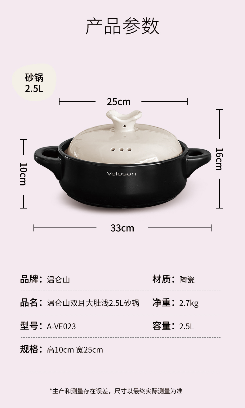 velosan温仑山·高温烧制砂锅 ,煲焖炖煮都拿手,高颜值,久烧不裂!