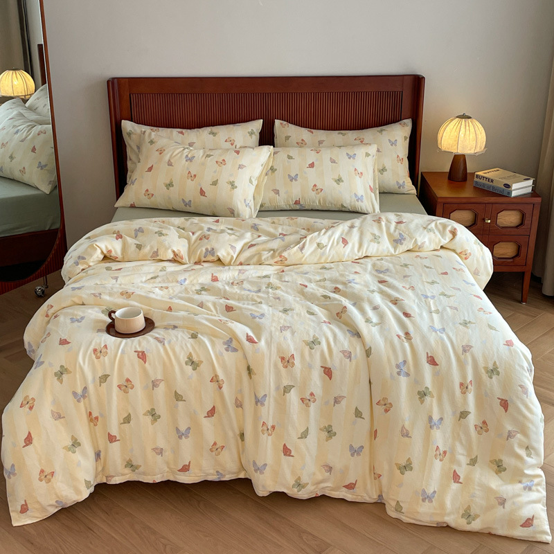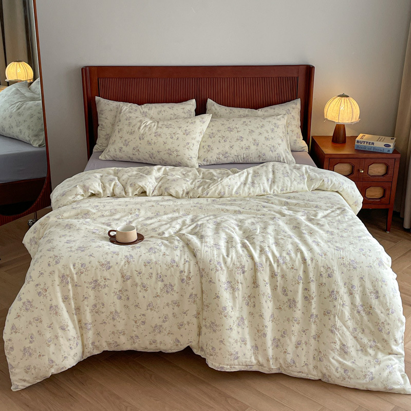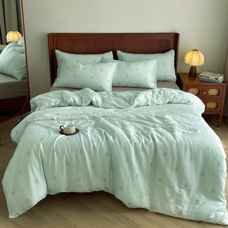 全棉双层纱~A类母婴级全棉纱布四件套 亲肤柔软西汉透气 越洗越软 月子被套床单床笠款印花三件套