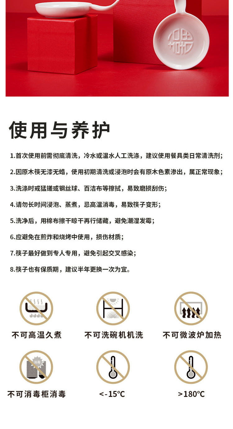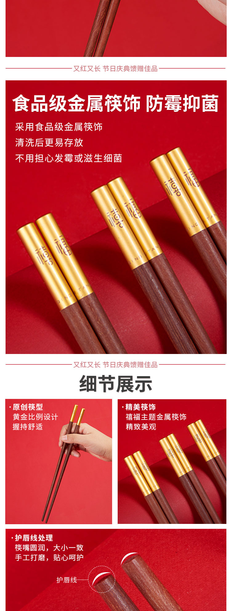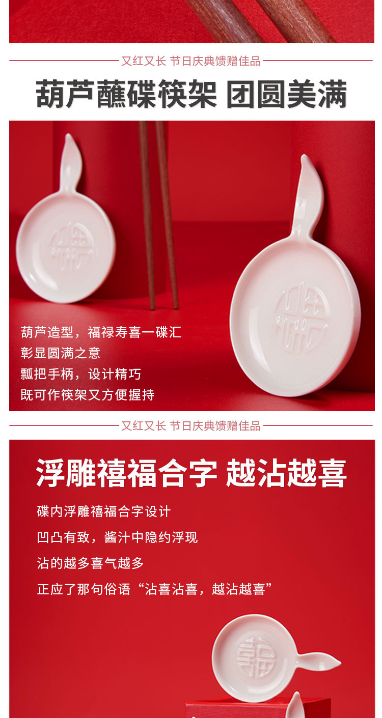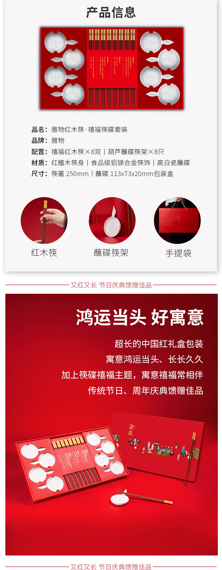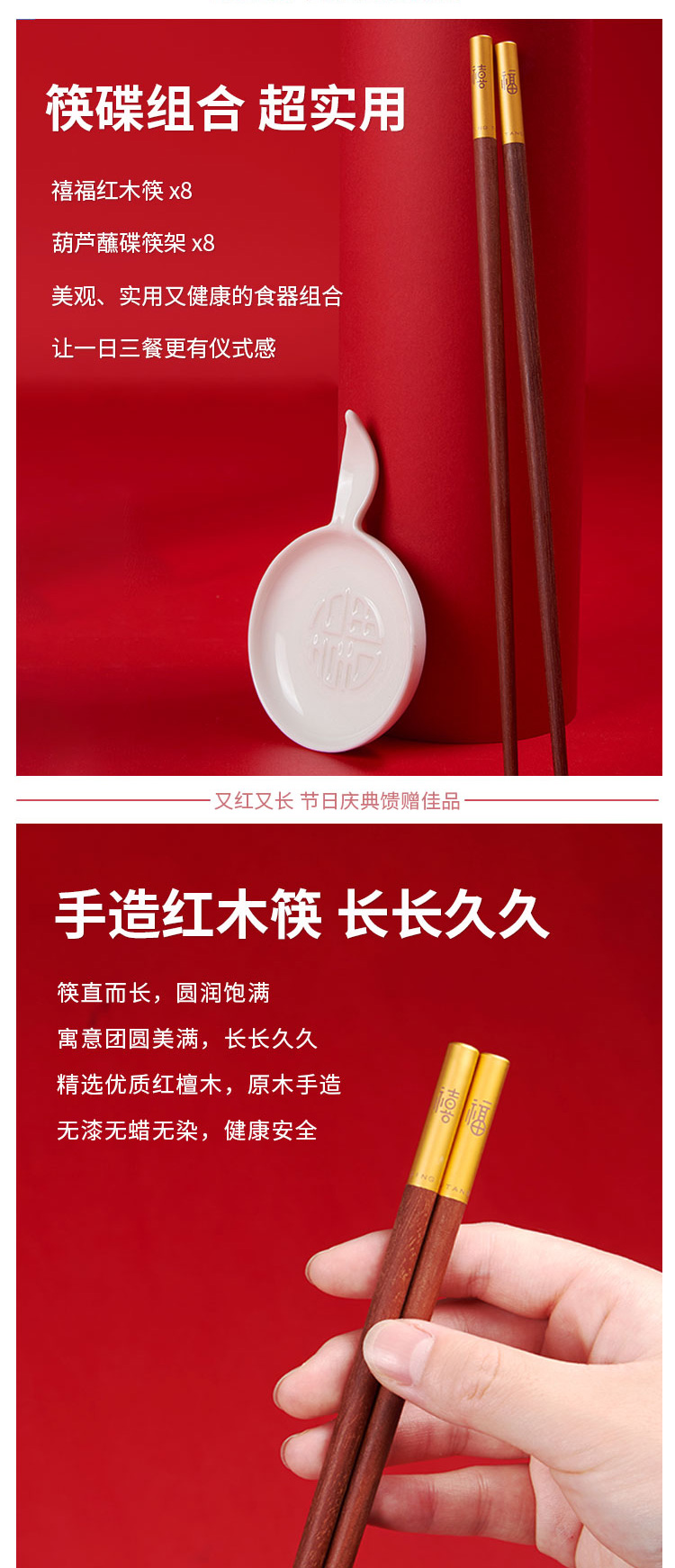 清朴堂 禧福八双装中国餐具 中式婚礼红木筷子碟子套装