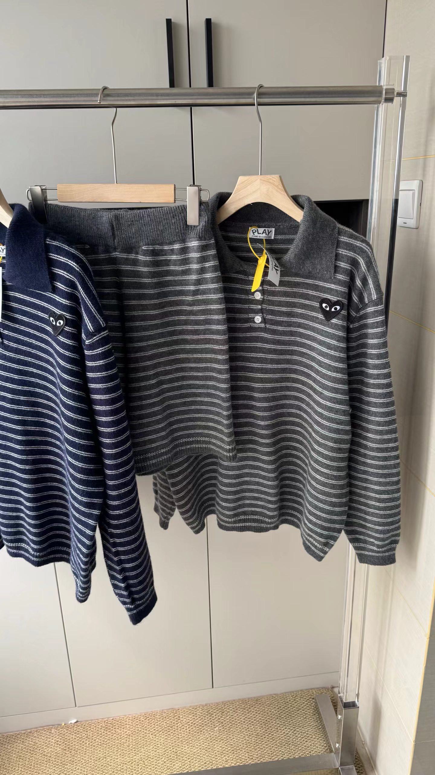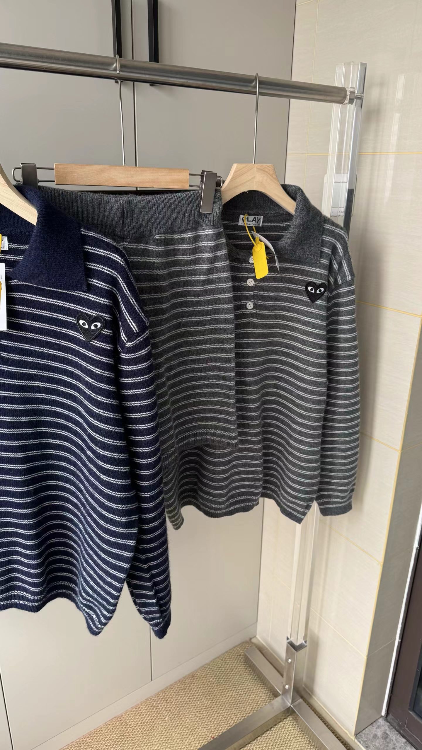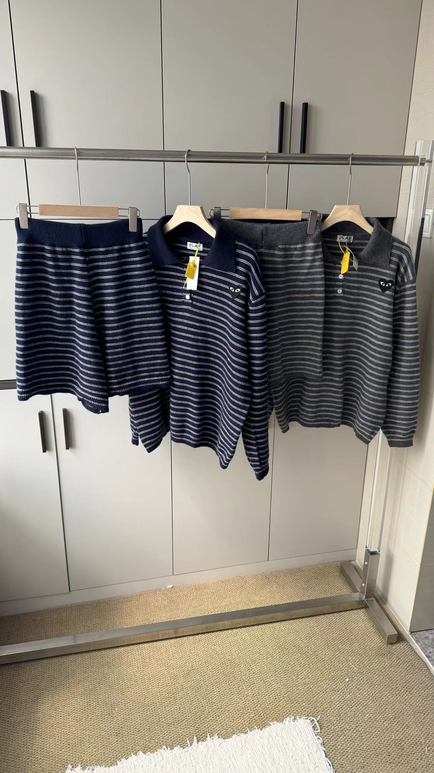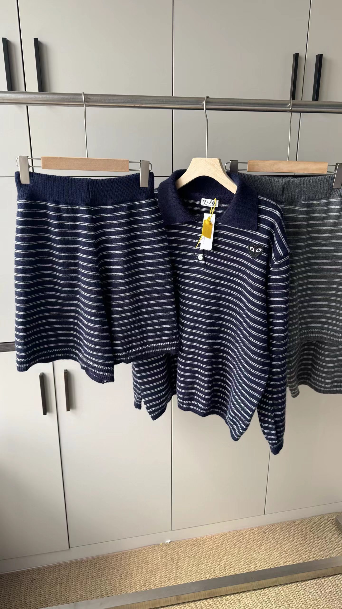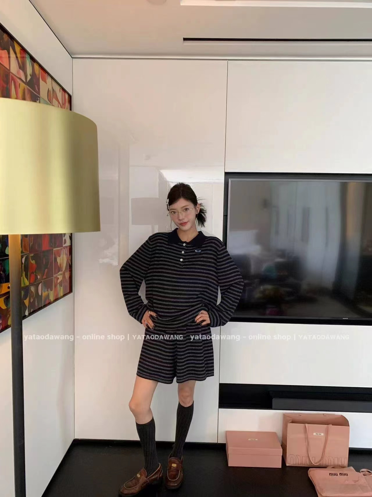 条纹针织套装休闲慵懒的韩系通勤风,宽松版型兼顾舒适与时髦感,一套穿搭省心又显气质。细密白色横条纹,视觉上显瘦又有层次感 翻领+半开襟纽扣设计,带点复古Polo感,领口露出内搭白边更显jing致 落肩+灯笼袖版型,弱化肩线、修饰手臂线条,对各种肩型都很友好。左胸位置点缀黑色爱心刺绣小标,增添辨识度与可爱感。 同面料同条纹的直筒短裙,长度在大腿中部,利落显腿长。与上衣无缝衔接,整体感强,不用费心搭配下装。针织面料柔软厚实,自带软糯肌理感,秋冬穿着保暖又有垂坠感。配色低调耐看,适配日常通勤、约会、居家等多种场景。