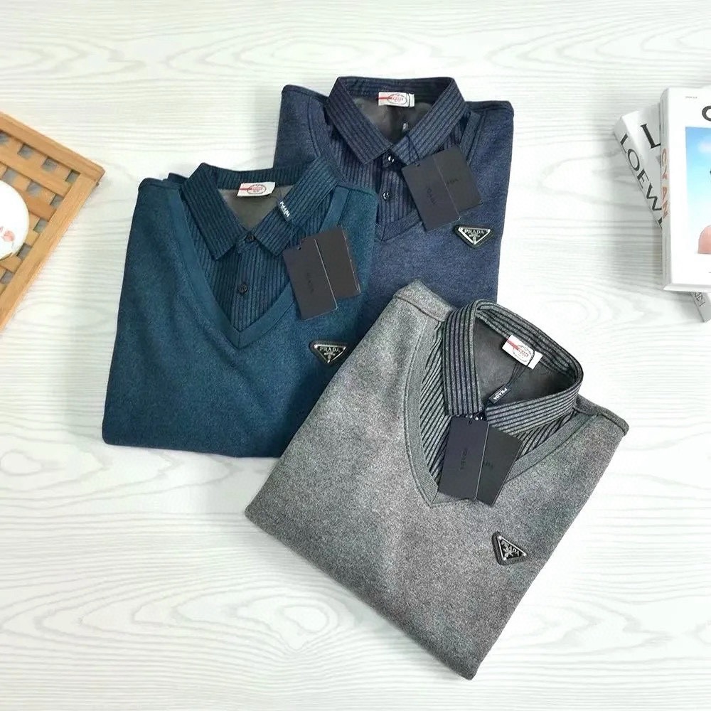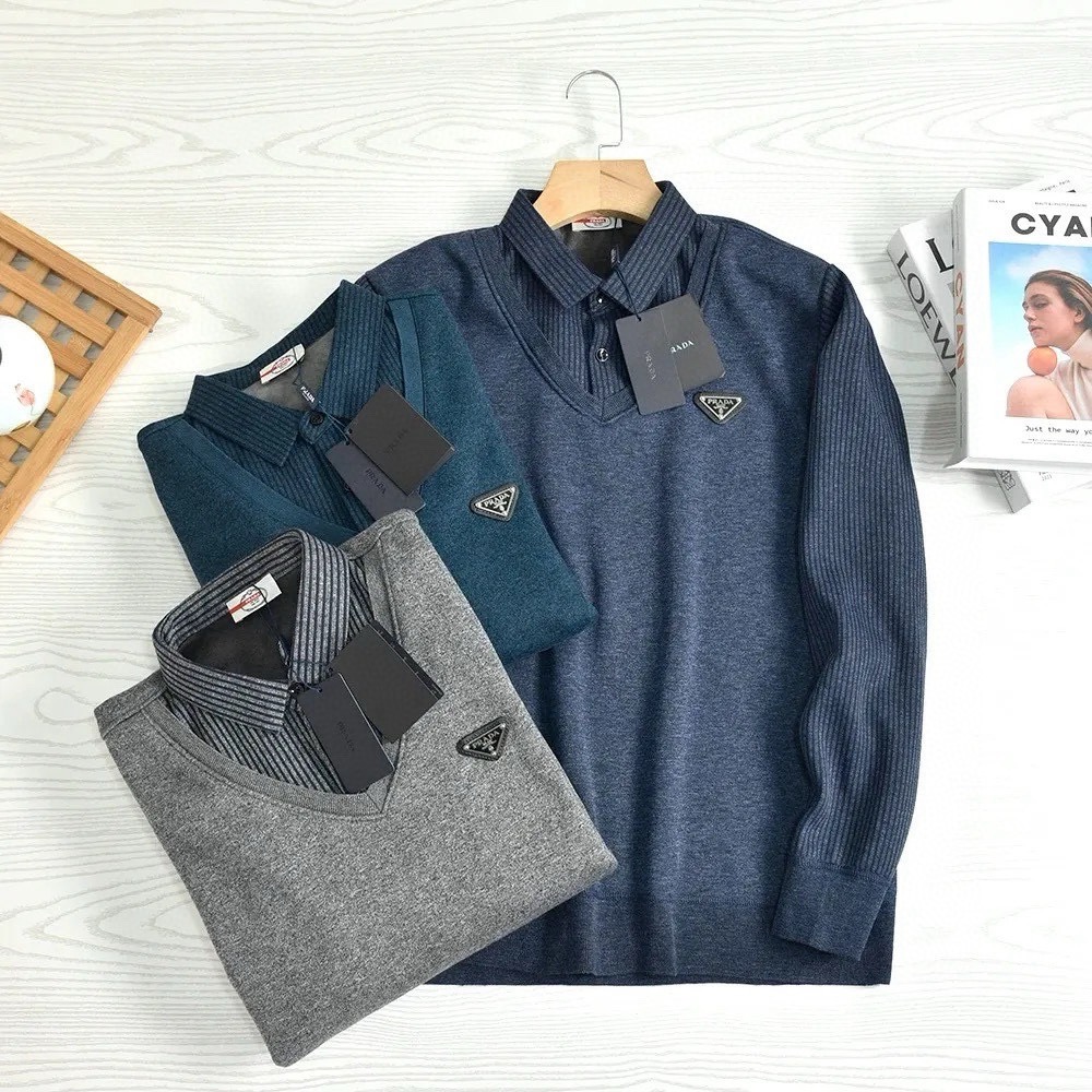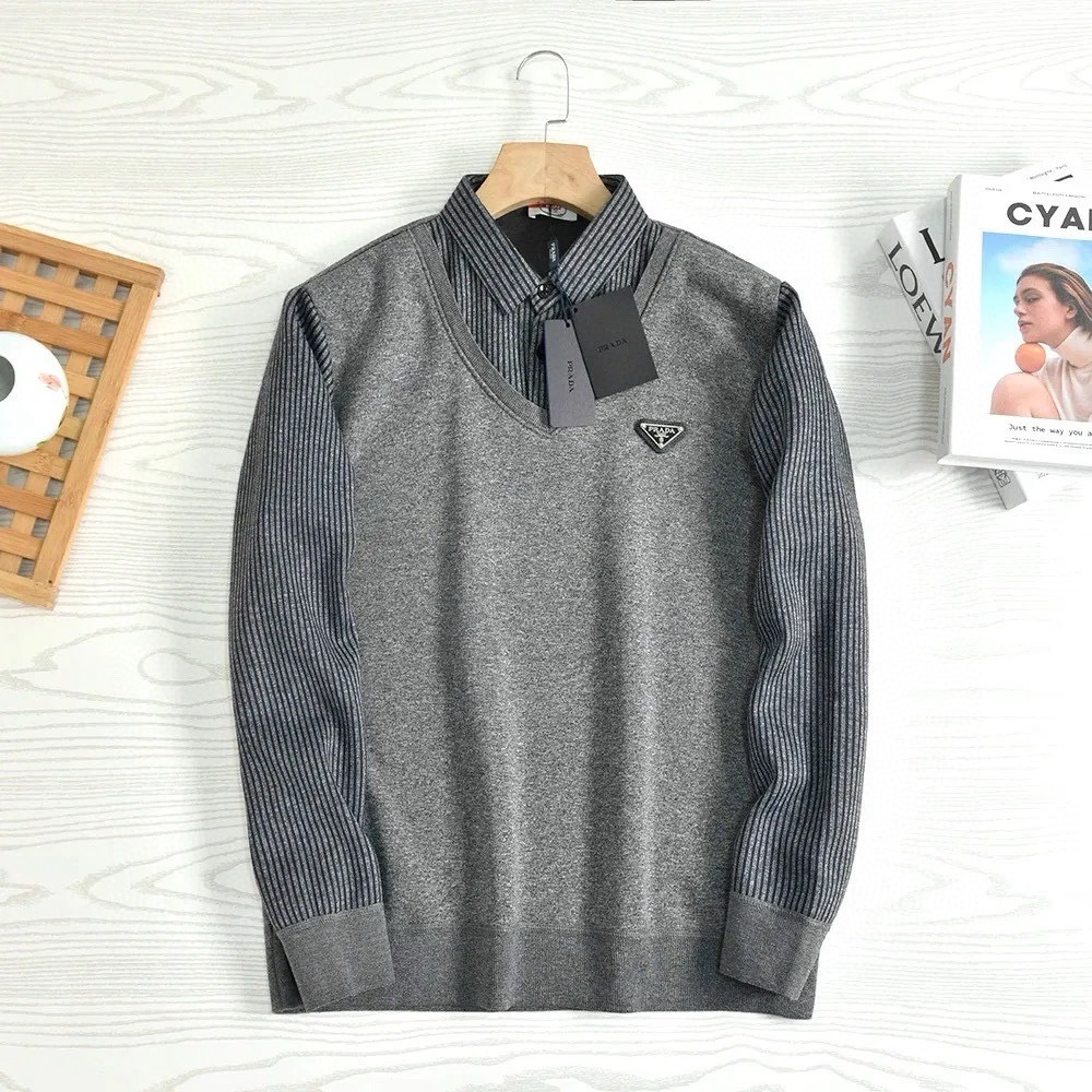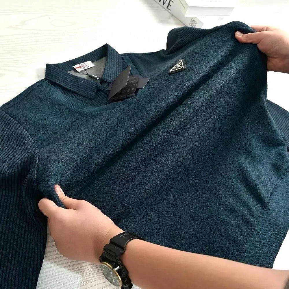 PRADA(普拉达)2025春季新款RB针织衫毛衣假两件!拍摄图片可以看出衣服非常有质感和厚度,绝不是普通的一件!入手一件,当两件穿!既经济,又时尚!十足的高级感!男神春季必入单品!!