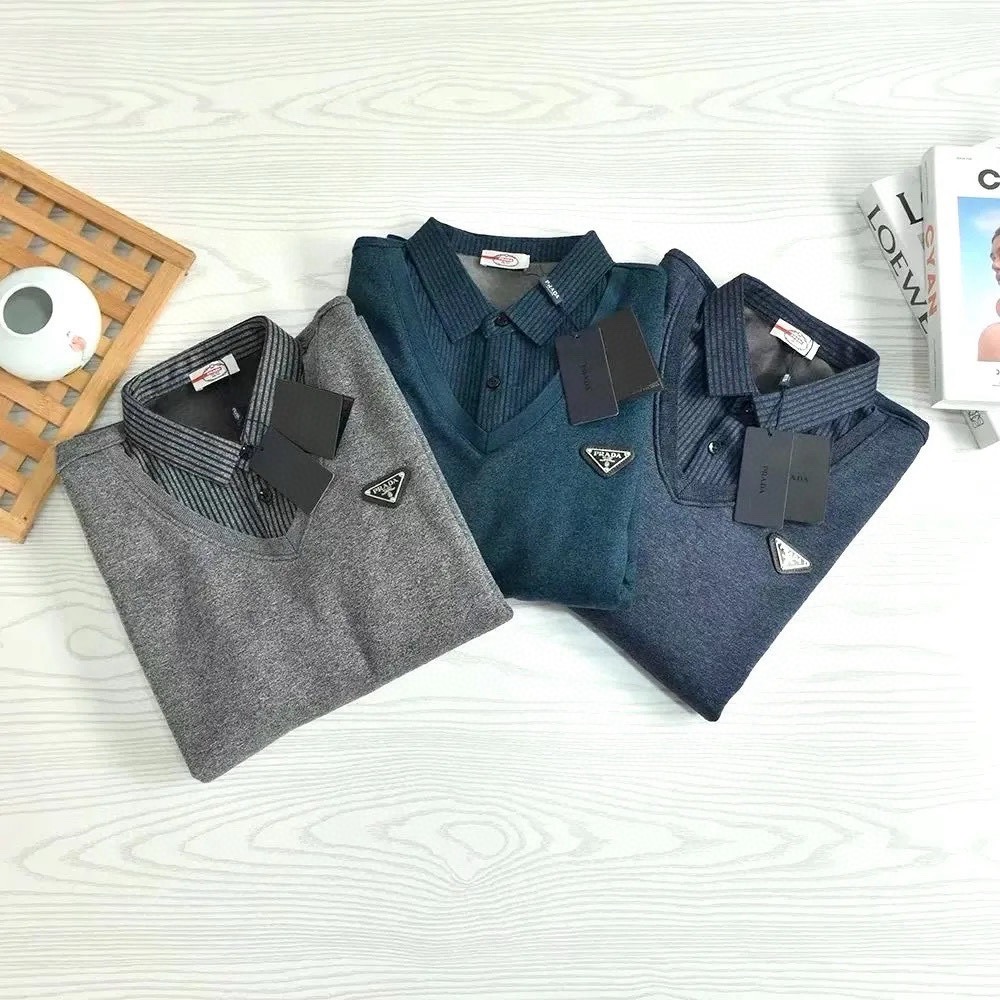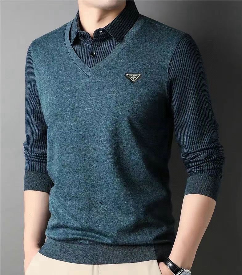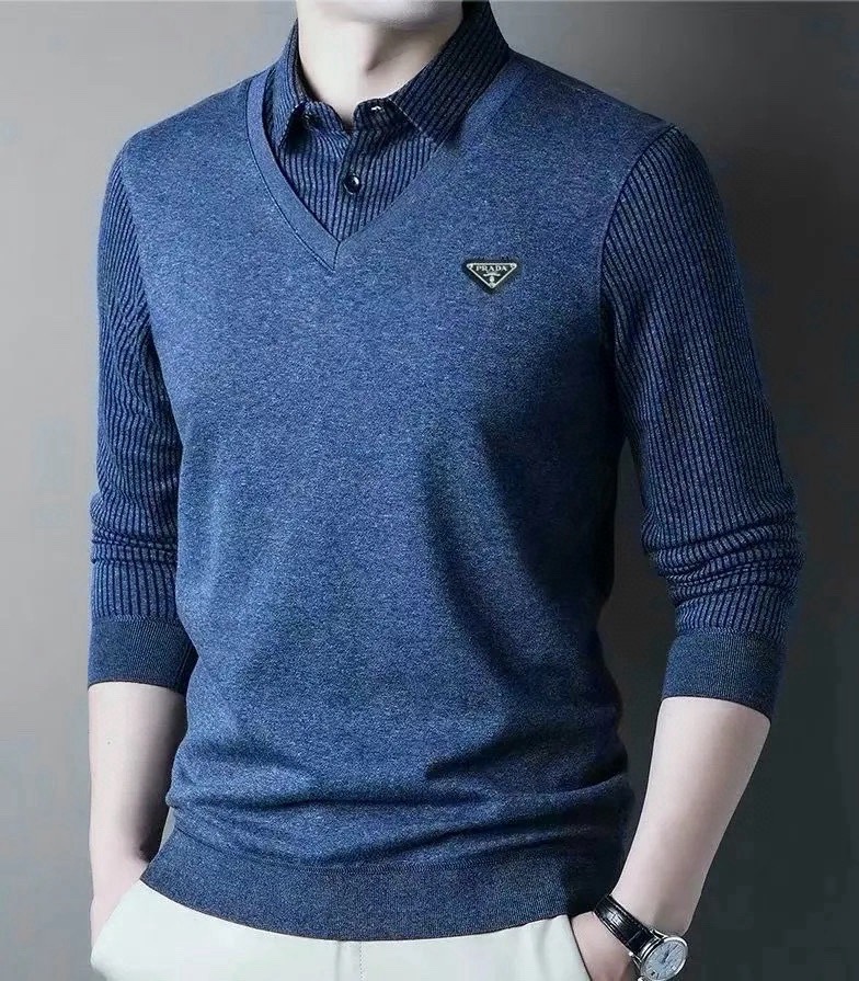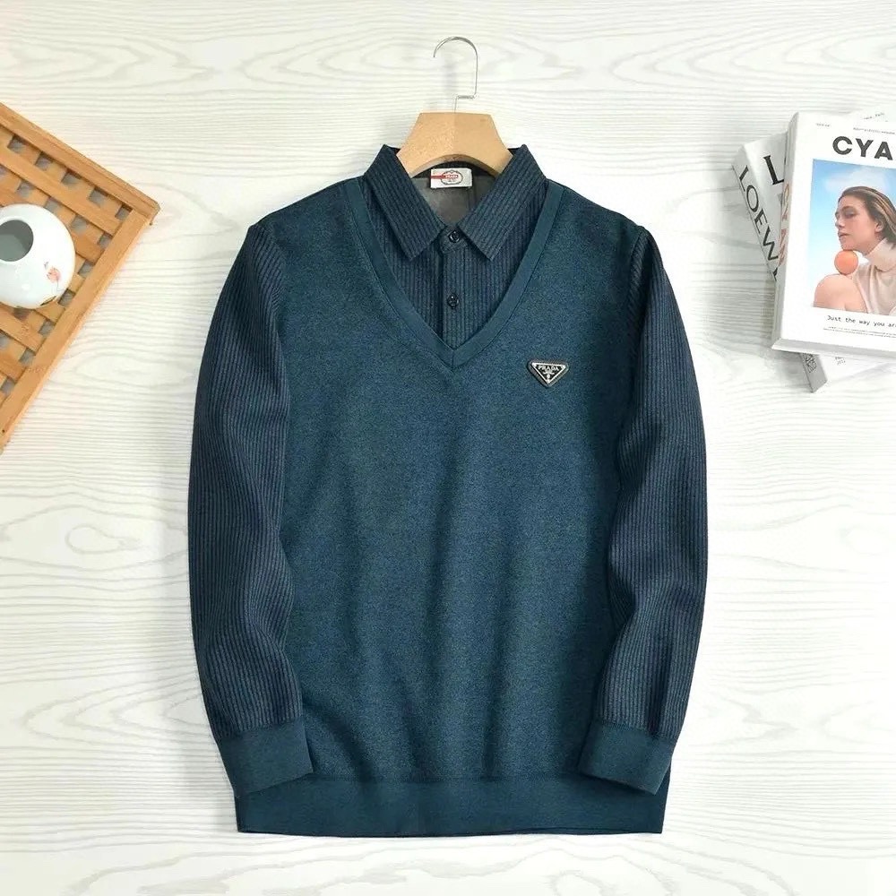 PRADA(普拉达)2025春季新款RB针织衫毛衣假两件!拍摄图片可以看出衣服非常有质感和厚度,绝不是普通的一件!入手一件,当两件穿!既经济,又时尚!十足的高级感!男神春季必入单品!!