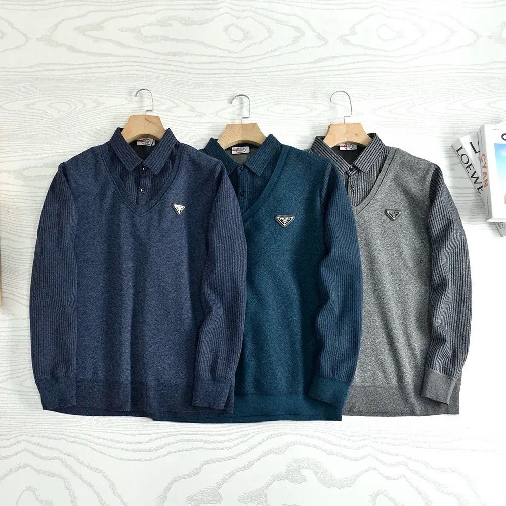 【 复古休闲!轻奢时尚!】P*ADA(普*达)春季自留款,针织衫毛衣假两件!小胸标LOGO徽章!弹力衣身,做工精良!
