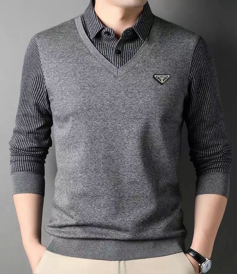 【 复古休闲!轻奢时尚!】P*A*A(普拉达)春季自留款,针织衫毛衣假两件!小胸标LOGO徽章!弹力衣身,做工精良!