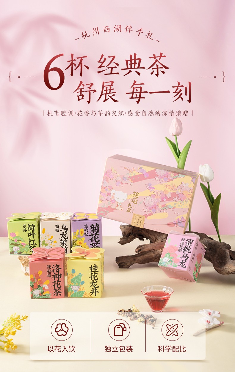 杭州西湖景区情人节礼物满陇桂雨桂花蜜花运花茶礼盒伴手礼
