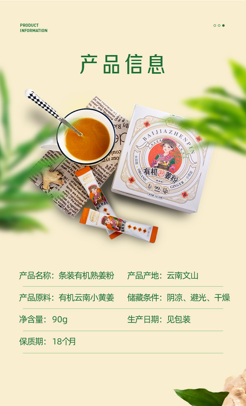 24国有机认证云南有机熟小黄姜粉生姜粉 90g