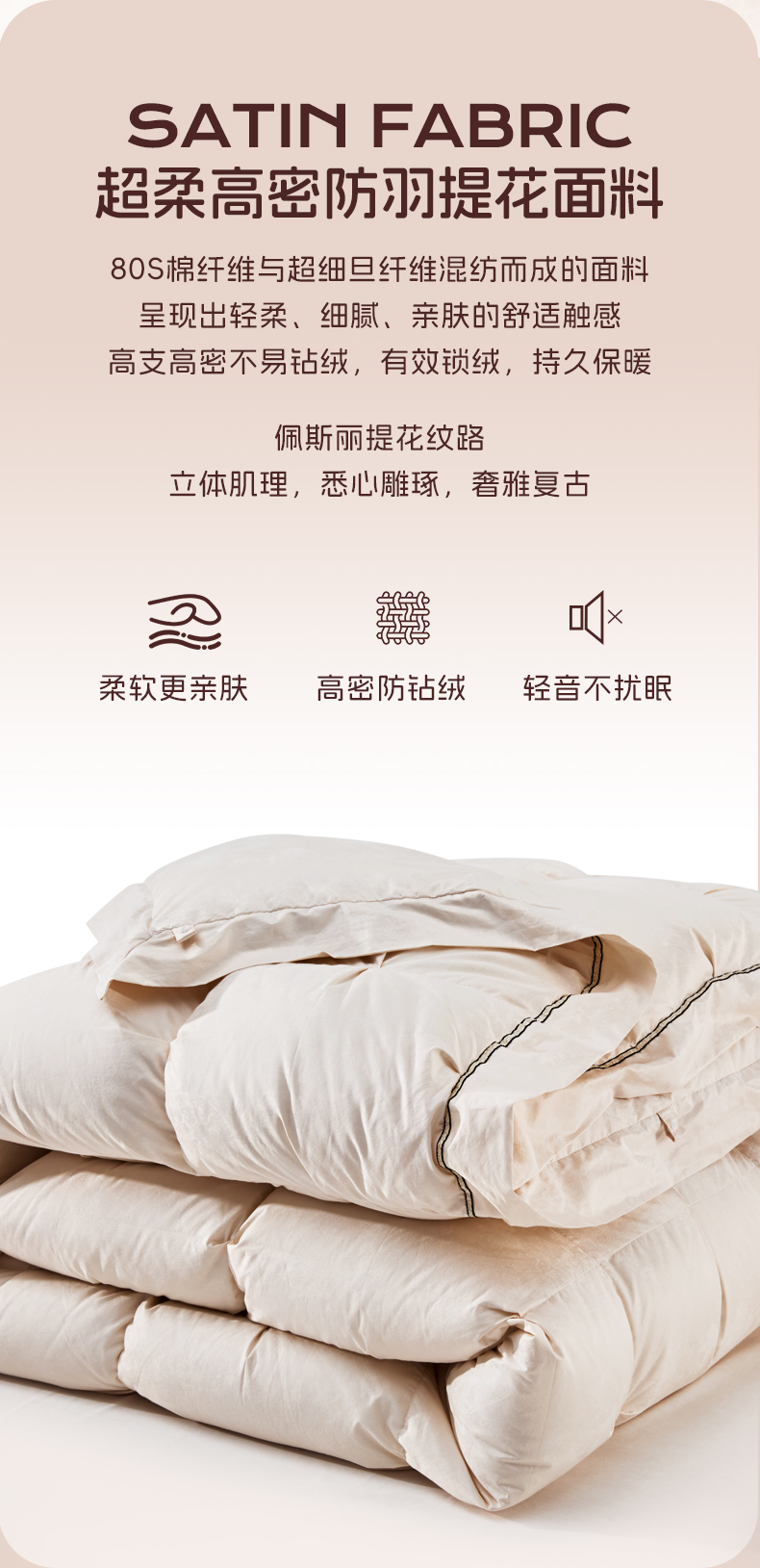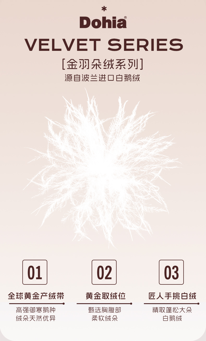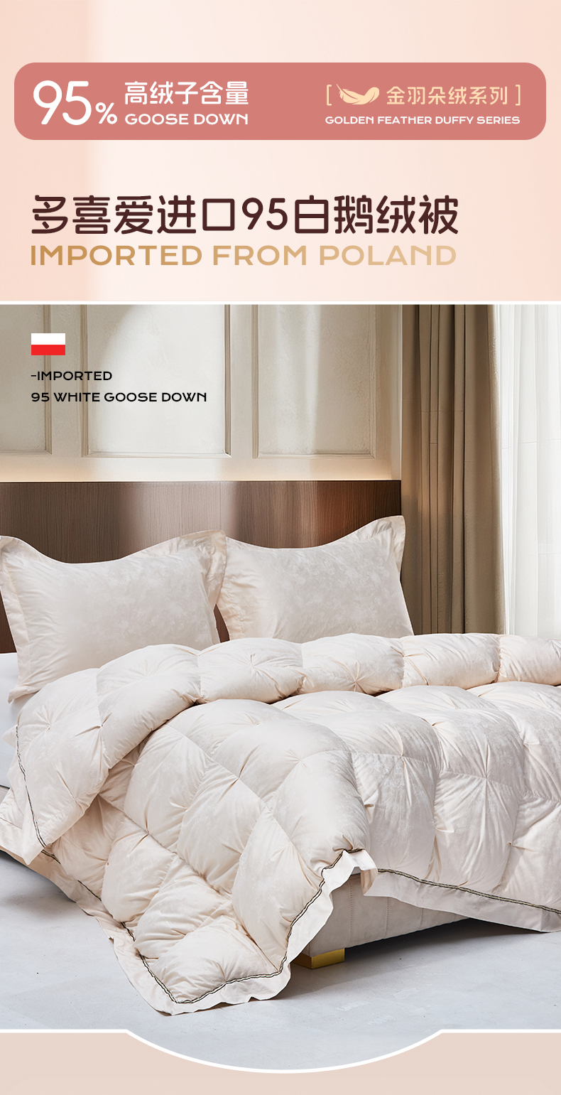 多喜爱 金羽朵95进口白鹅绒冬被-云曦漫享【波兰进口白鹅绒】【95%绒子含量】【1000+清洁度】【防羽提花面料】【3D热气球工艺】双层边 织带工艺 10CM检测口 可套被头设计 高档皮箱