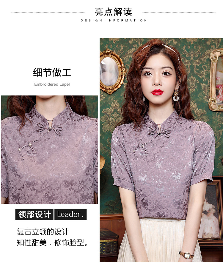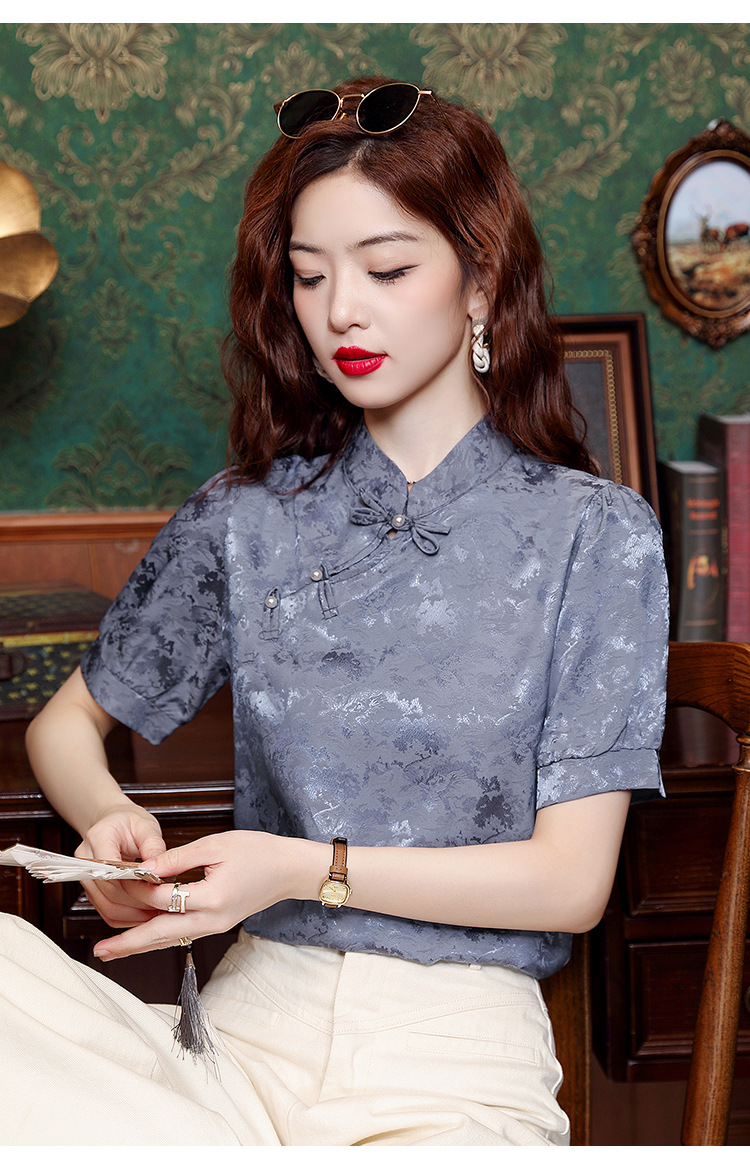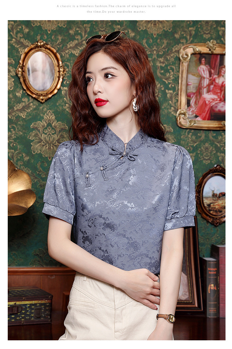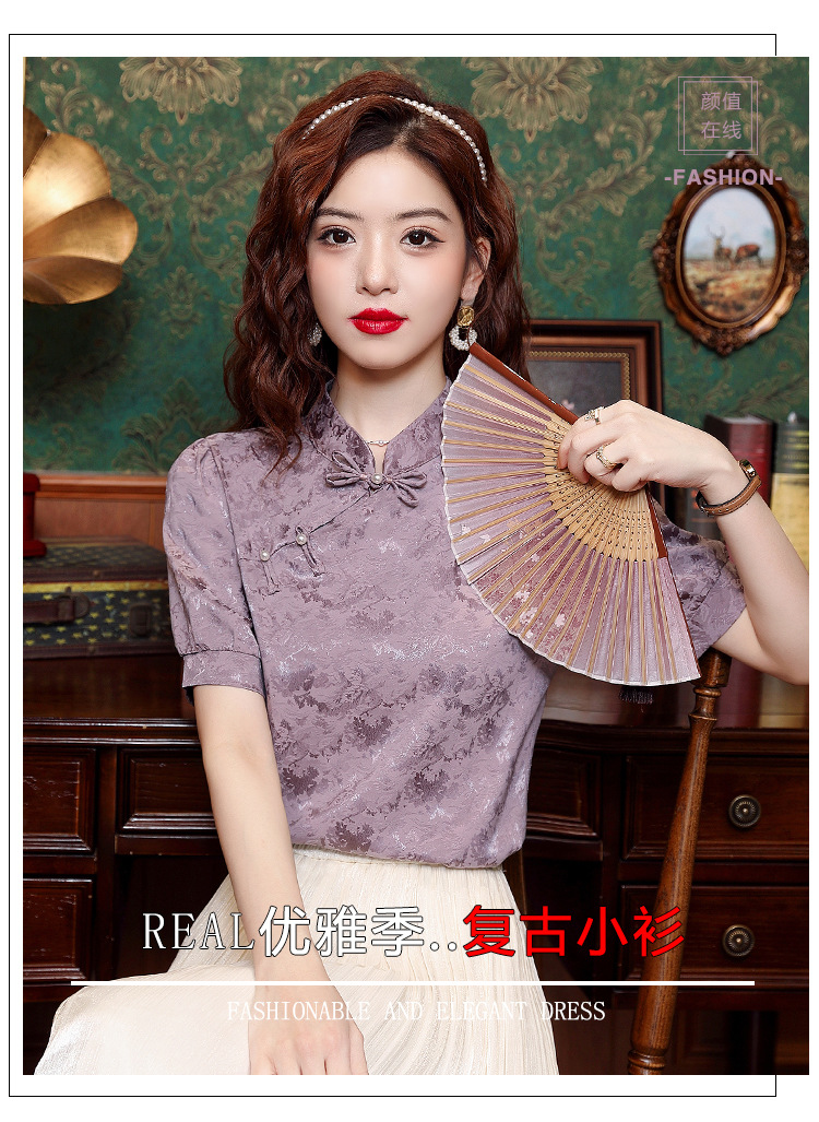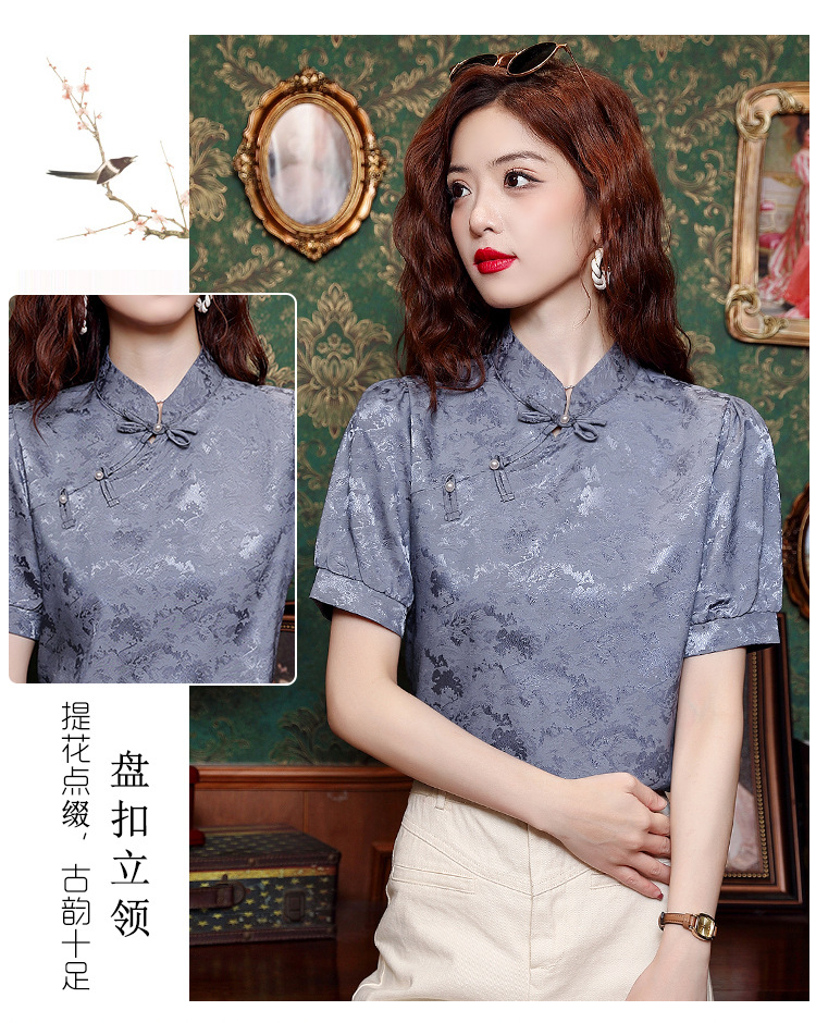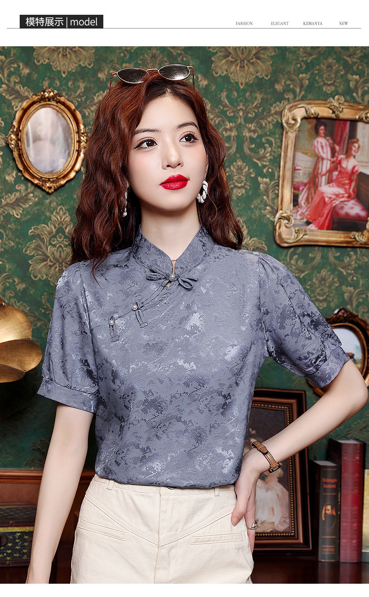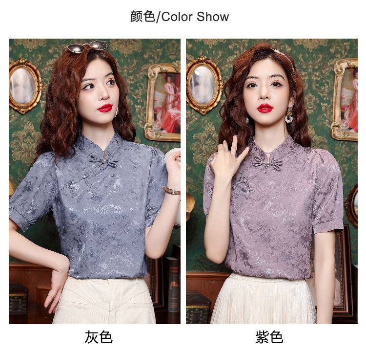 KQLE324N9818 改良旗袍衬衣女2024夏季新款短袖新中式名媛气质小众轻奢打底上衣