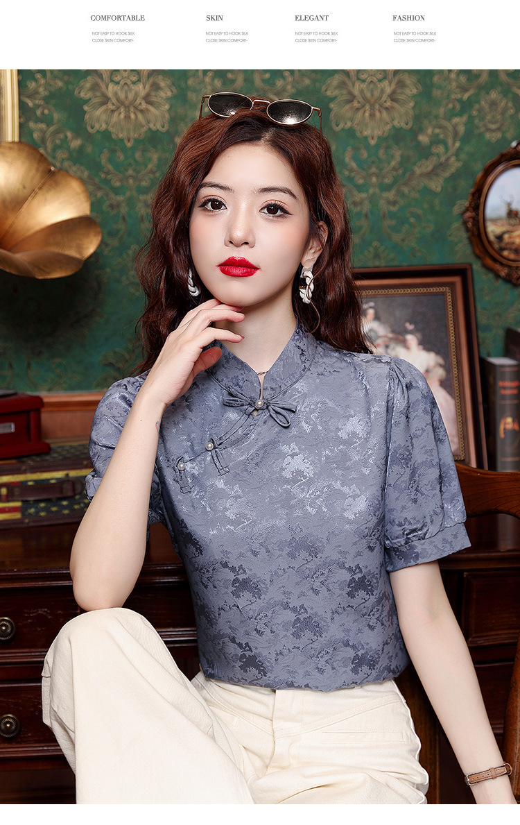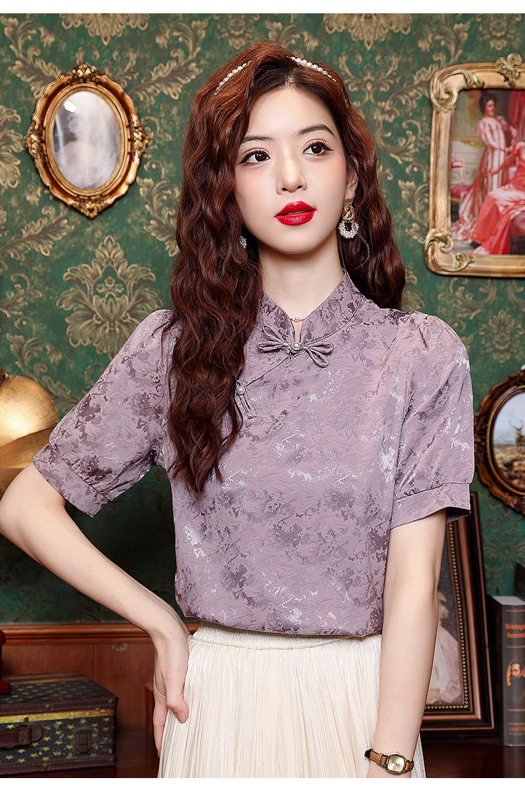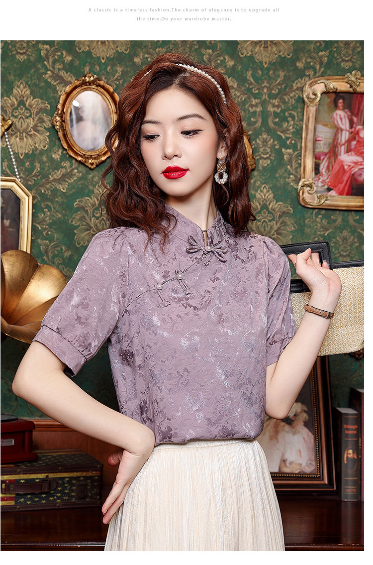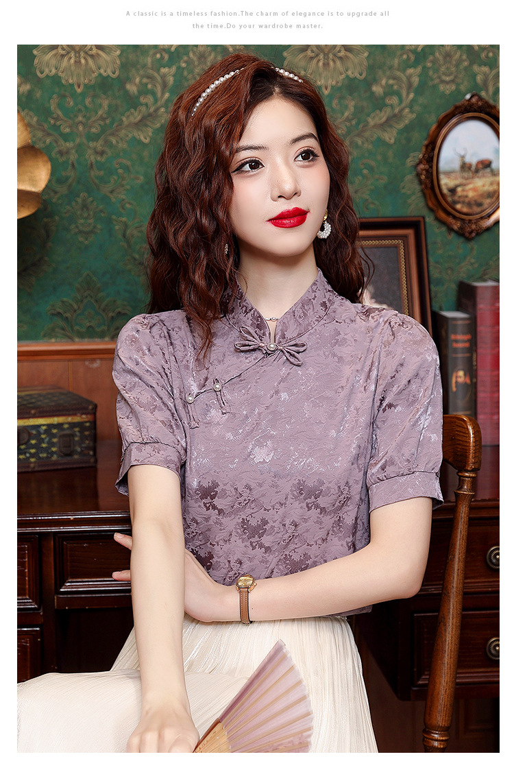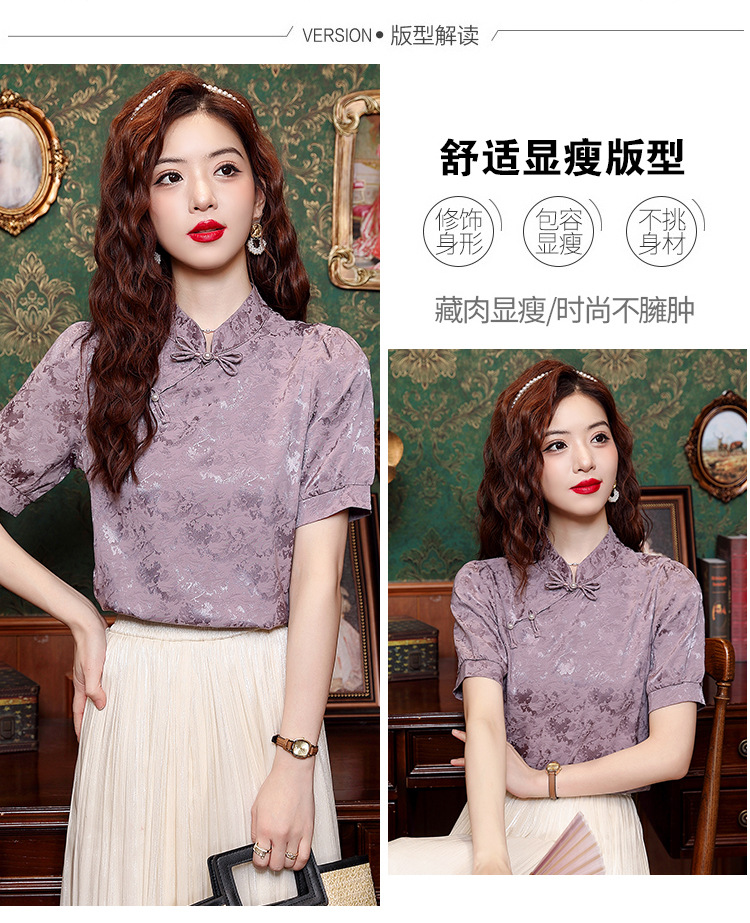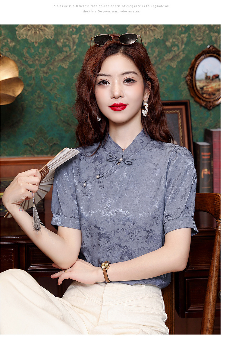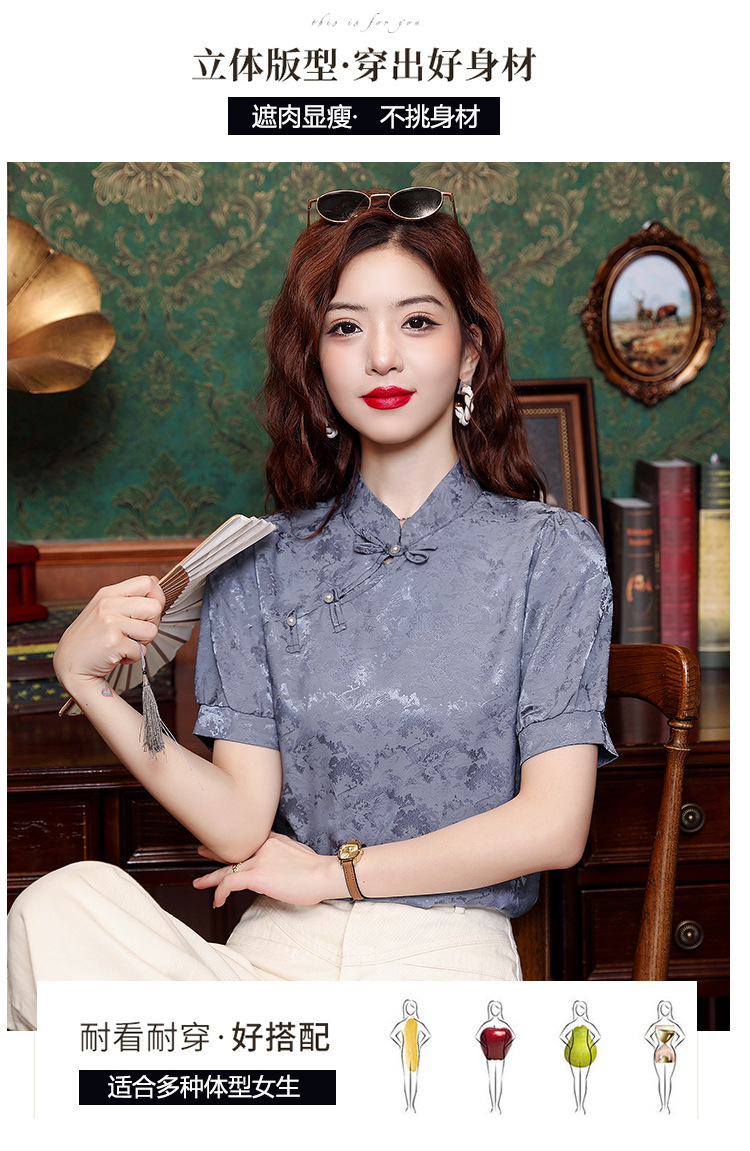 KQLE324N9818 改良旗袍衬衣女2024夏季新款短袖新中式名媛气质小众轻奢打底上衣