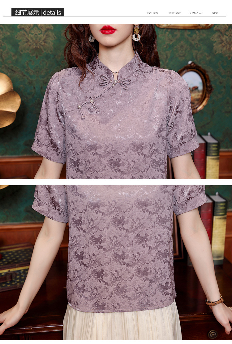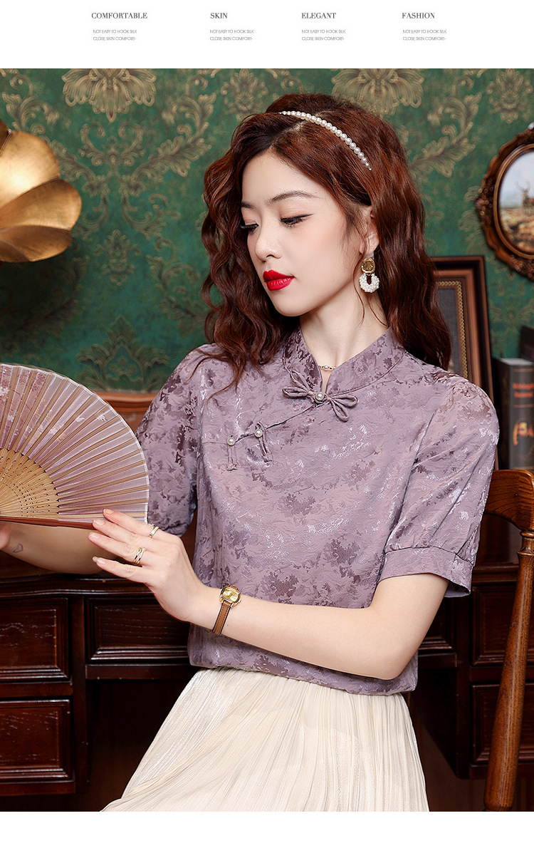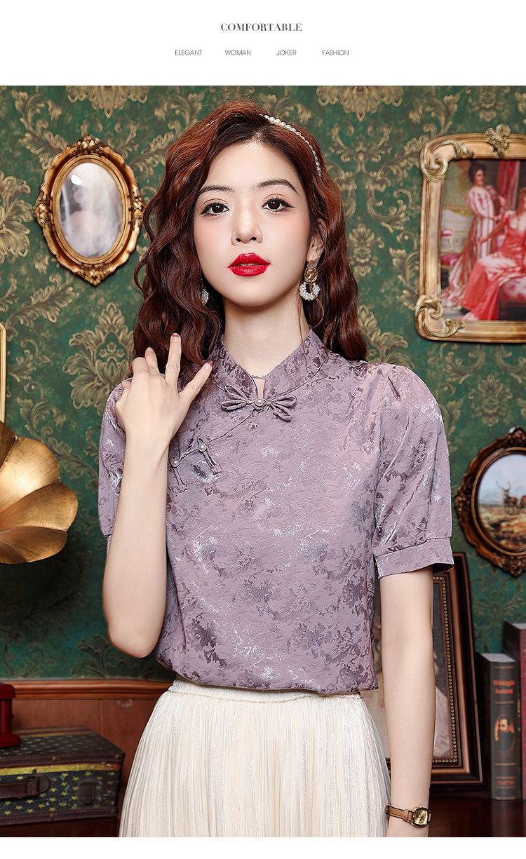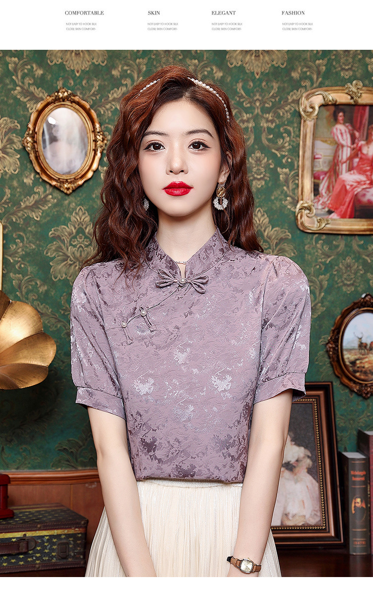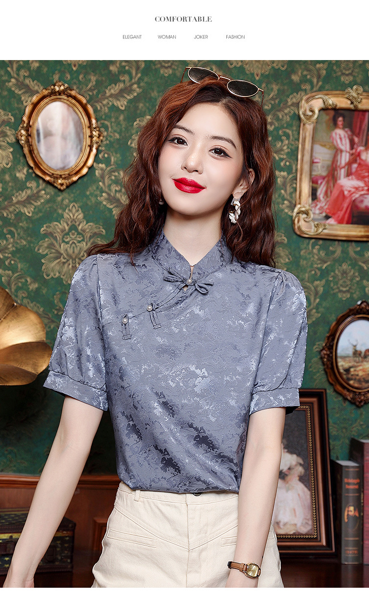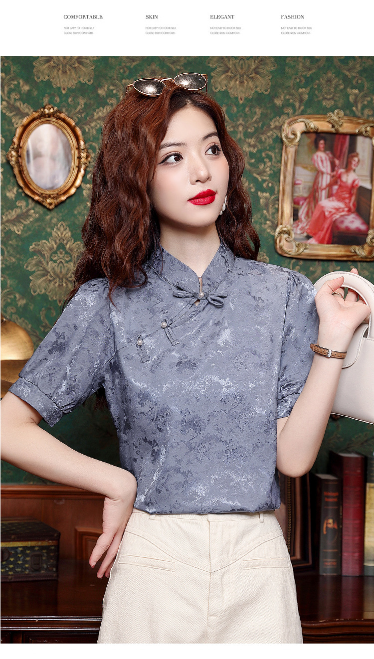 KQLE324N9818 改良旗袍衬衣女2024夏季新款短袖新中式名媛气质小众轻奢打底上衣