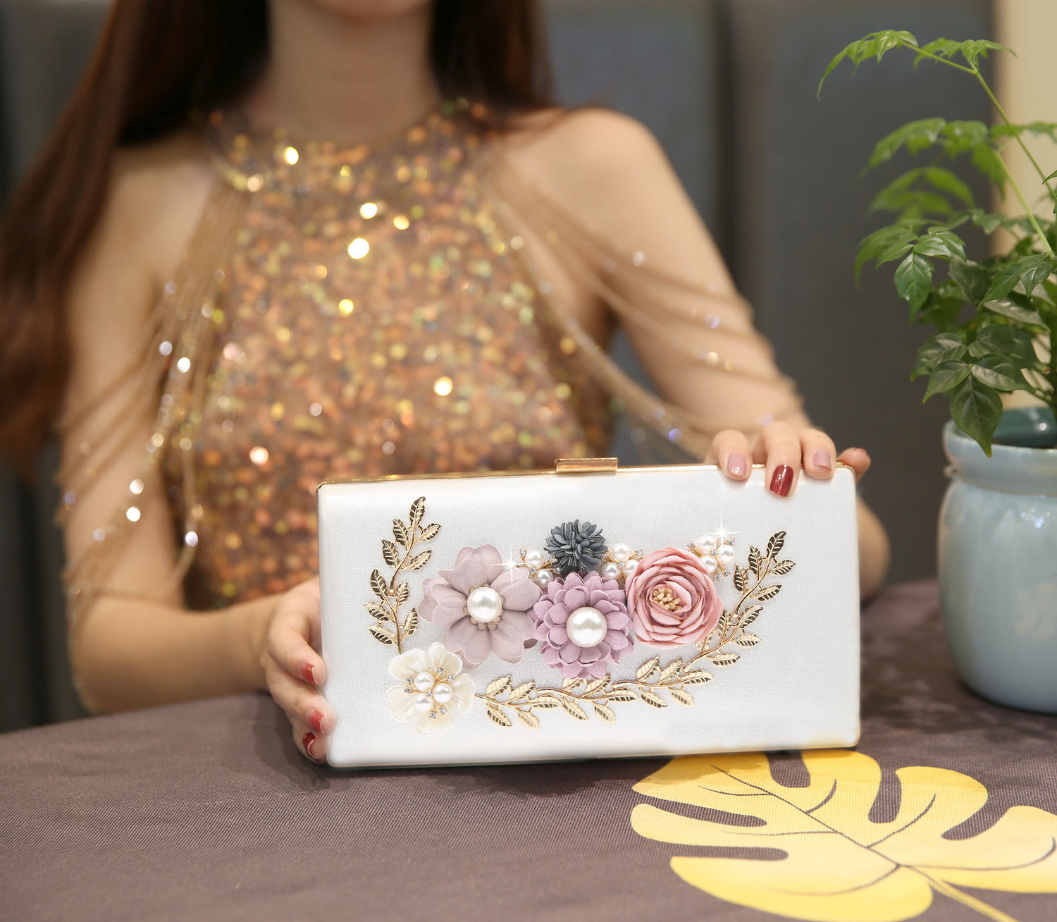 SHJM-12068新跨境手提优雅花朵包实用可爱手抓包PU女包手拿包放大手机12068