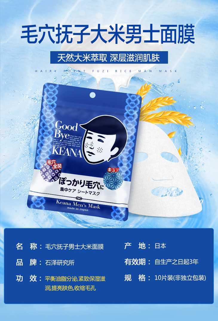 【海外直邮】石泽研究所抚子大米男士面膜 10片