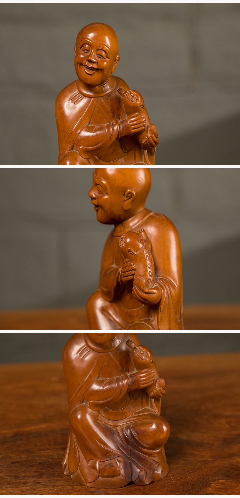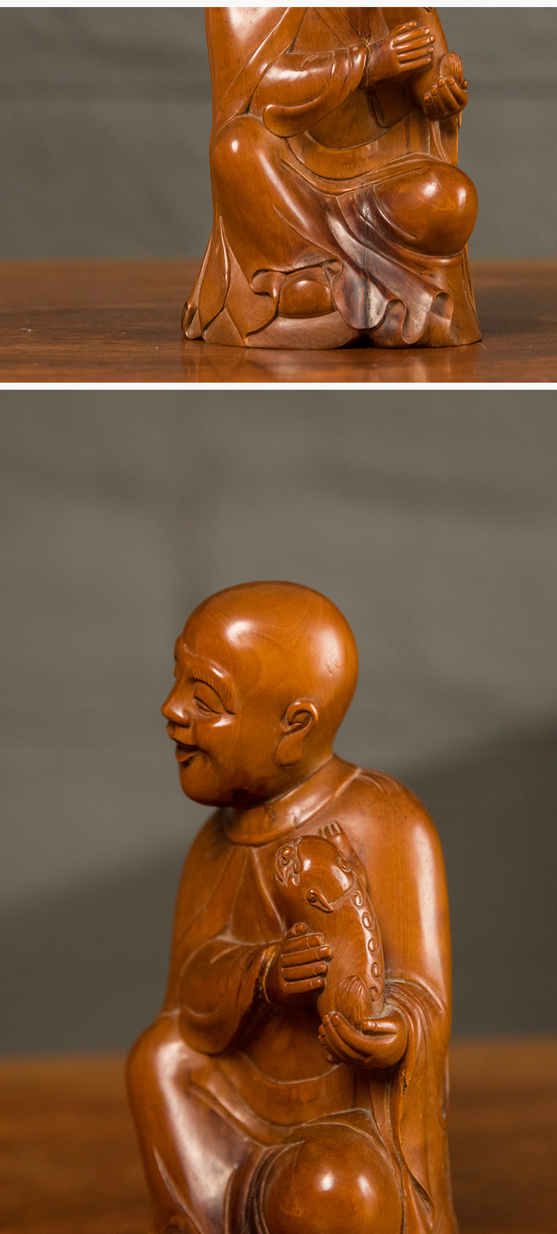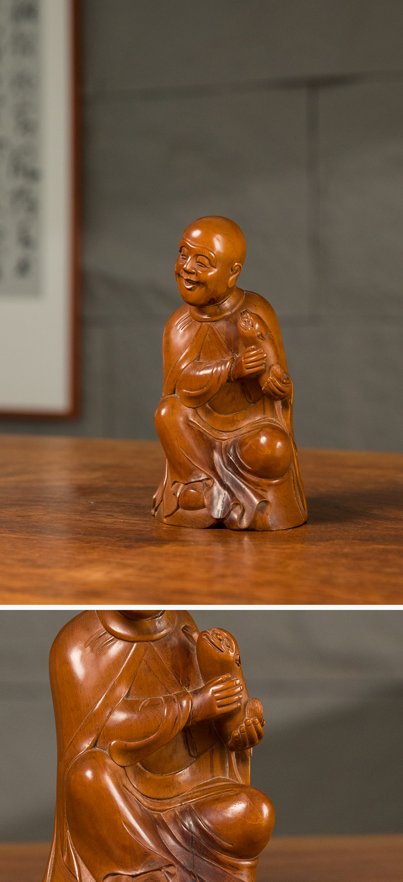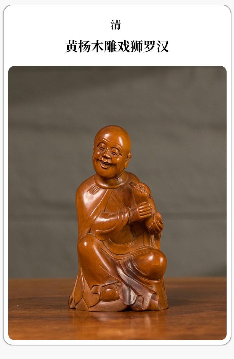 清 黄杨木雕戏狮罗汉