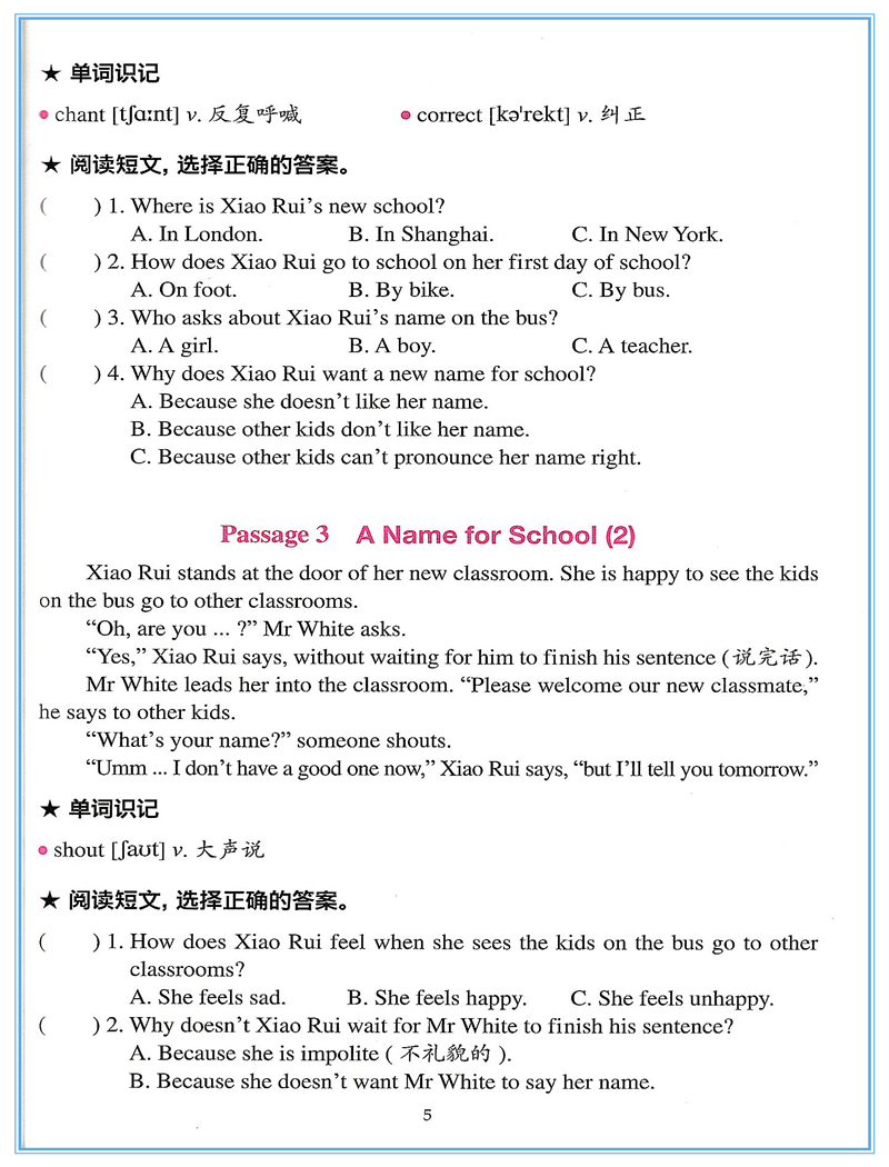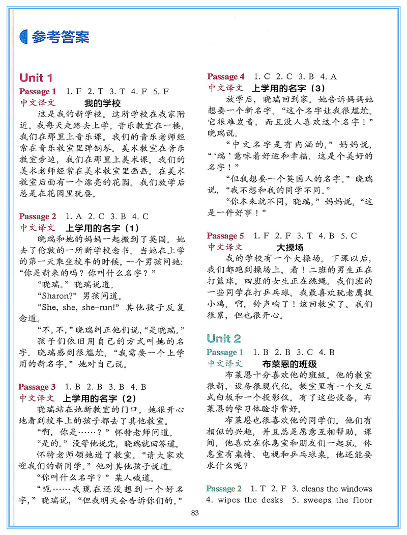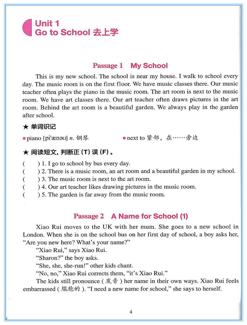 小学英语阅读训练100篇4年级】(三年级起点)英语阅读理解专项训练