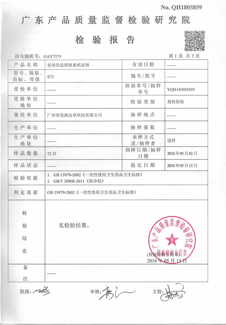 本次测评指标包括:重量、透气性、滑渗量、渗漏量、回渗量等功能指标,以及游离甲醛、微生物、可迁移性荧光增白剂等安全指标。