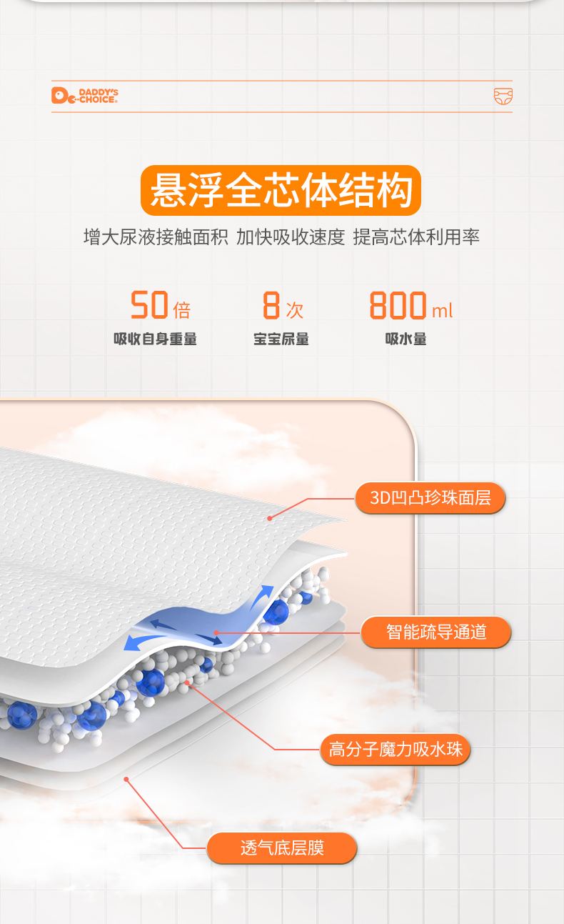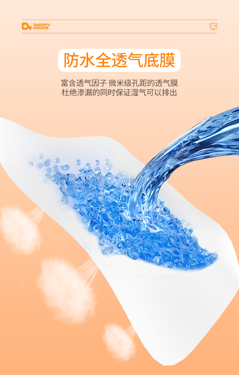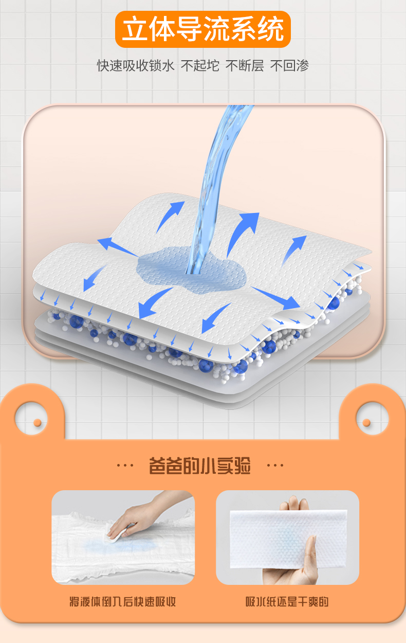经过多项实验测试,"爸爸的选择极薄2.0系列"纸尿裤在轻薄、吸水性能、锁水性能、透气性上表现都比较好,在性能测试上最终成为了本次测评推荐的好产品。