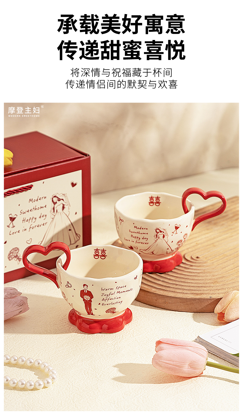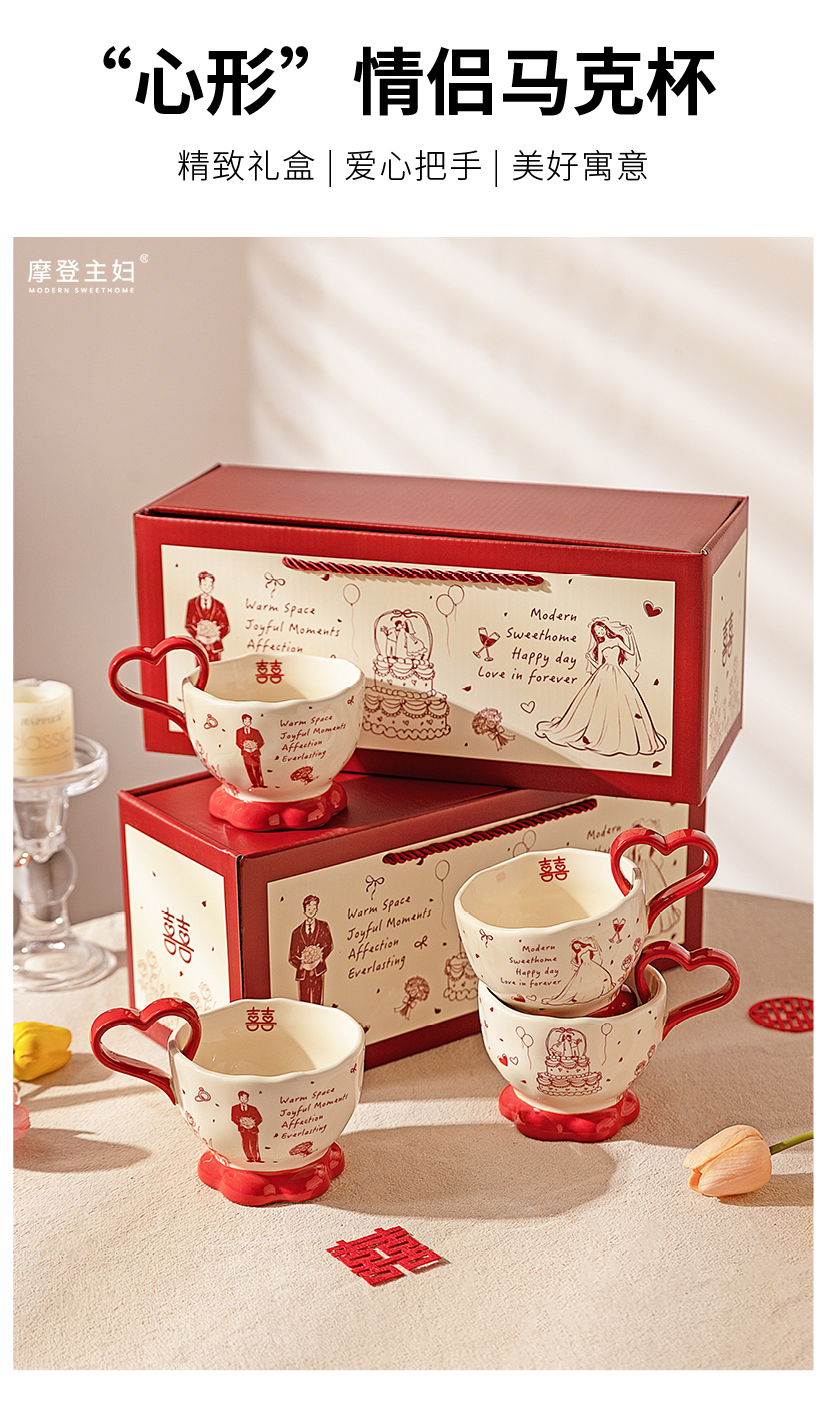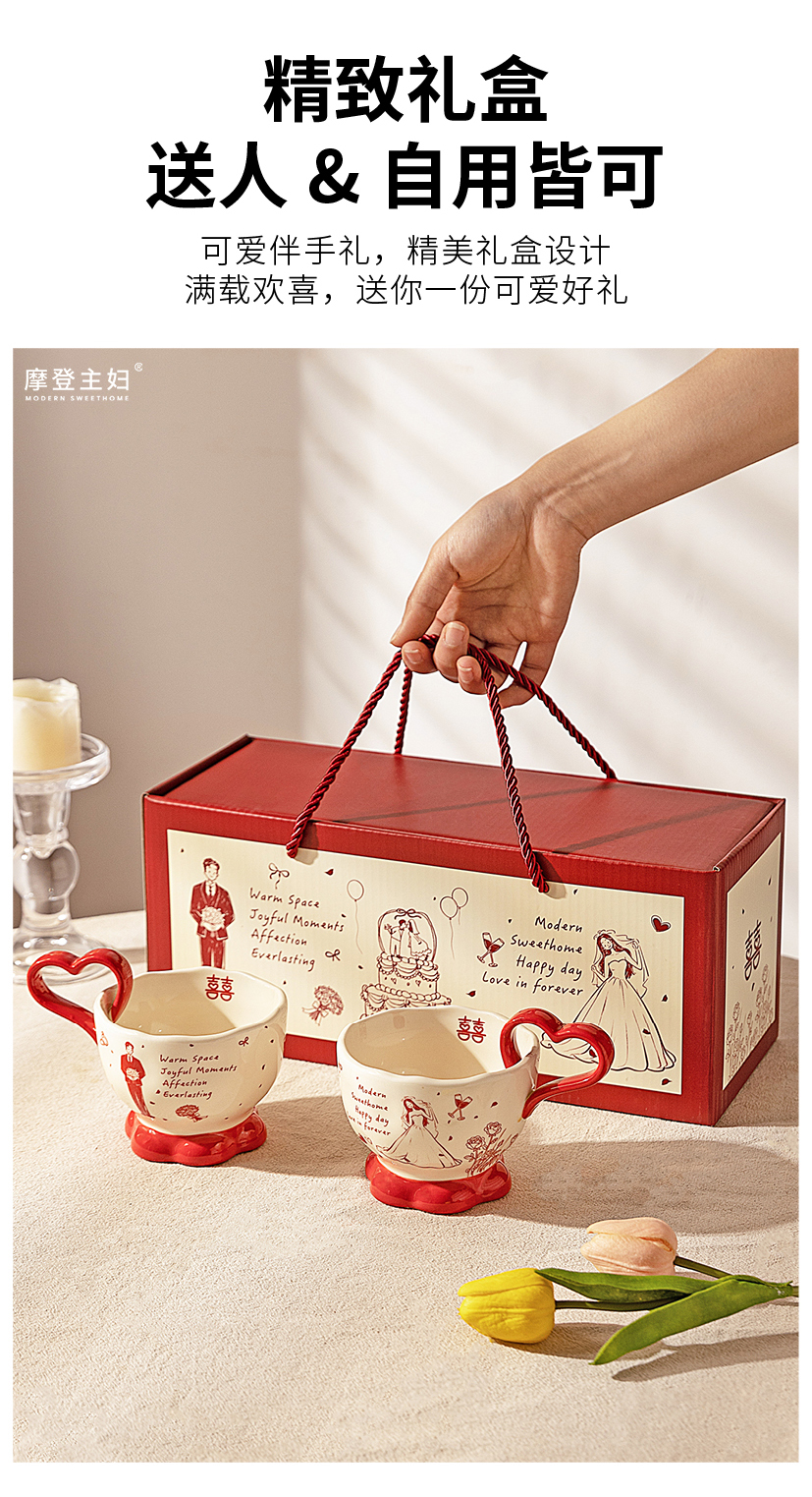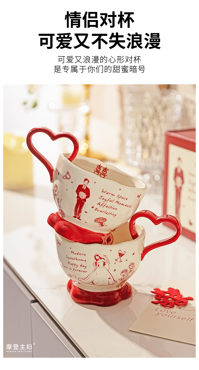 摩登主妇陶瓷心形马克杯礼盒新婚礼物结婚一对杯子订婚伴手礼情侣水杯