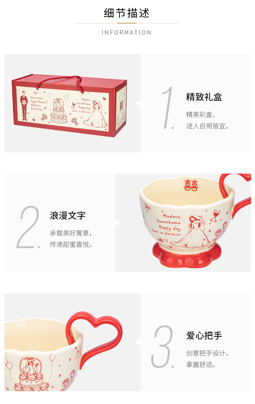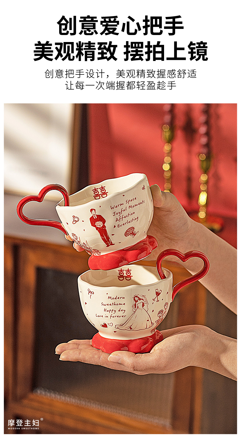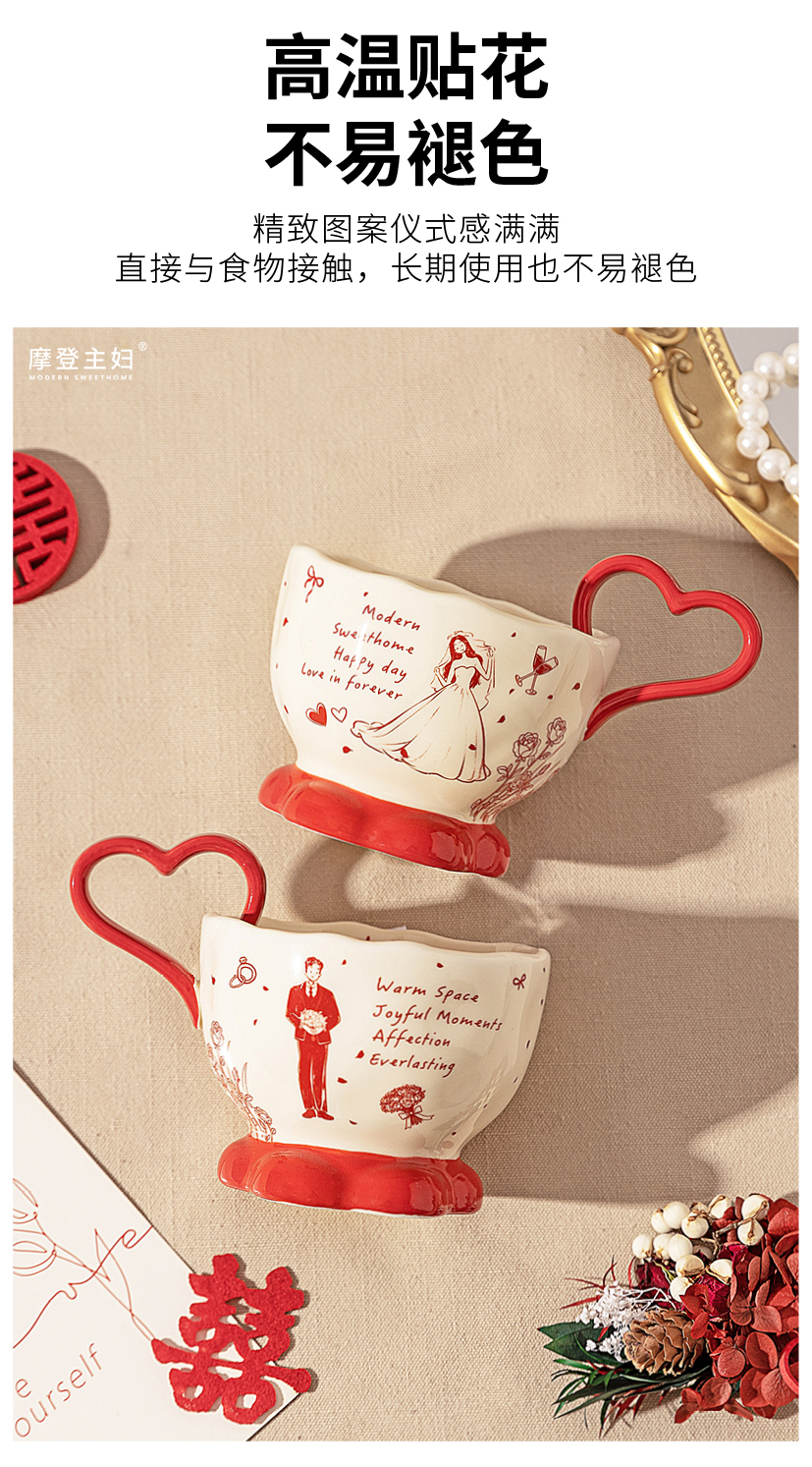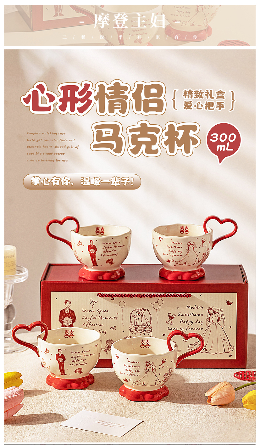 摩登主妇陶瓷心形马克杯礼盒新婚礼物结婚一对杯子订婚伴手礼情侣水杯
