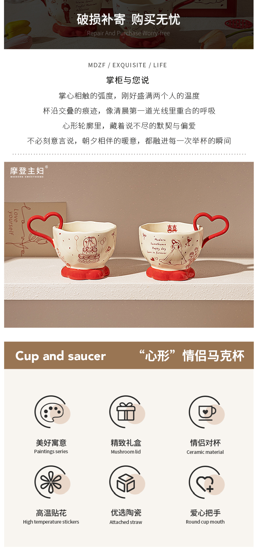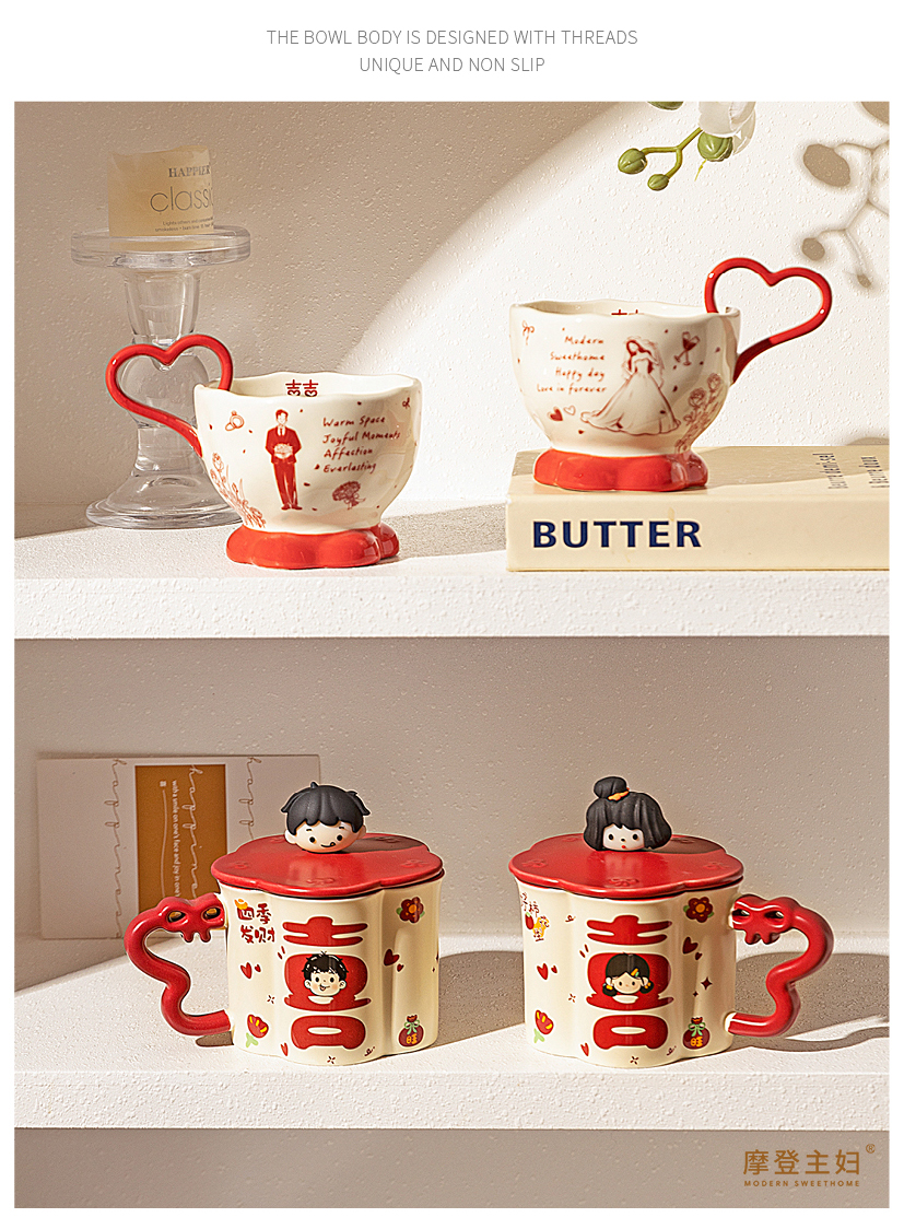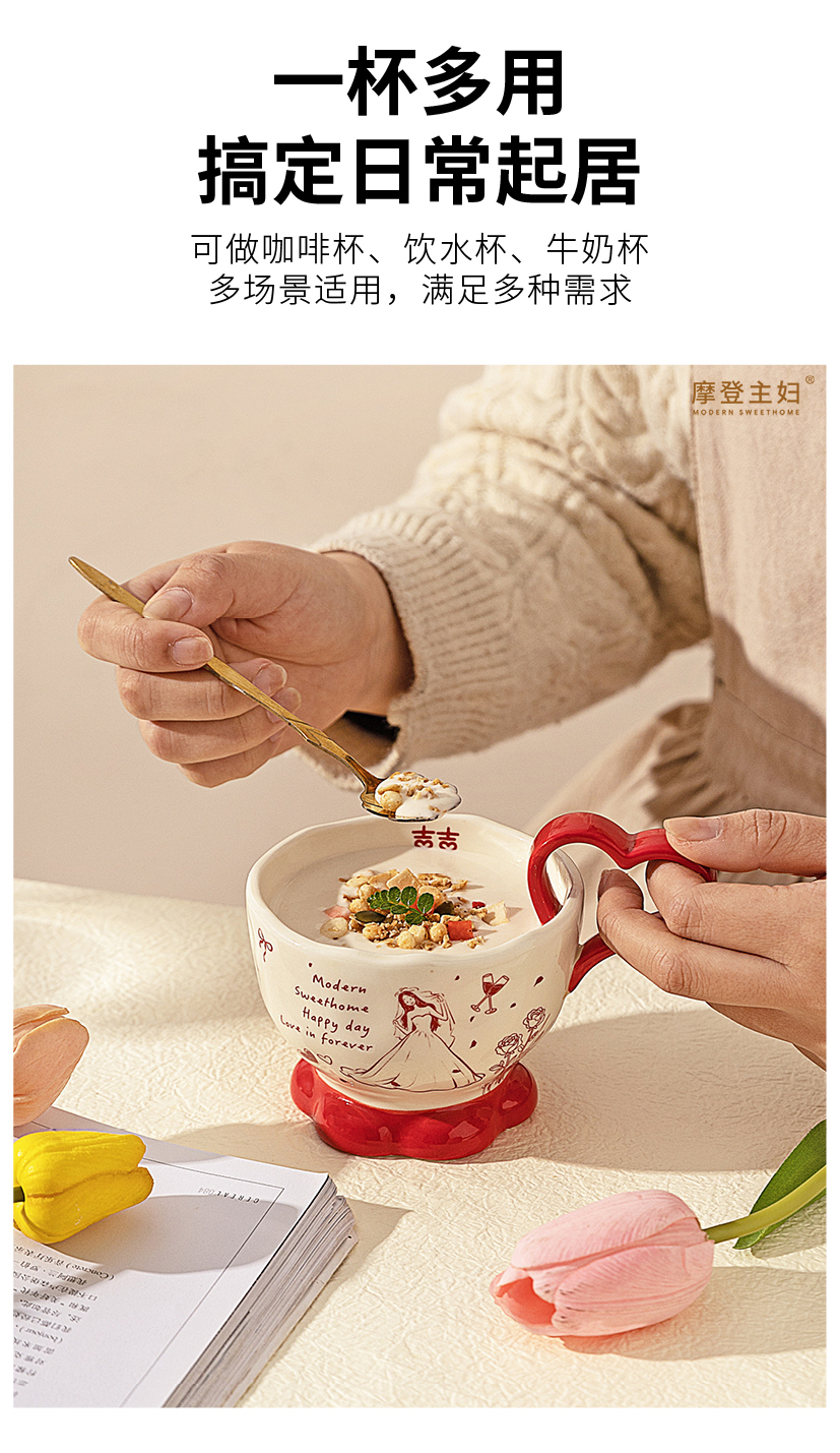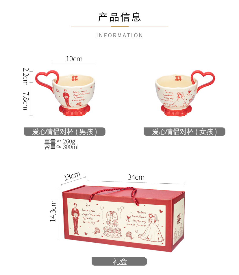 摩登主妇陶瓷心形马克杯礼盒新婚礼物结婚一对杯子订婚伴手礼情侣水杯