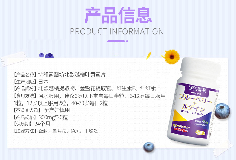 协和北欧蓝莓(越橘)叶黄素片 0.3g*30粒*瓶