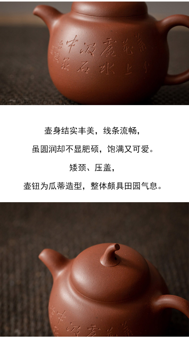 茶香记 紫砂壶 四号井底槽清 刻绘景舟瓜梨 诗文刻绘 古典器型 泡茶器