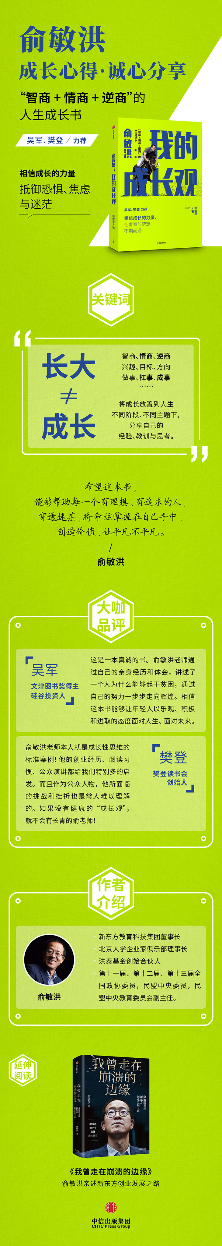 俞敏洪 我的成长观 俞敏洪成长心得全盘分享 励志 自我实现 人生成长书 相信成长的力量 中信出版社图书 正版