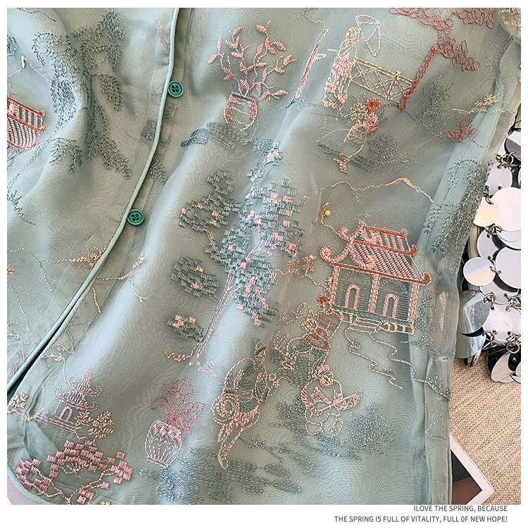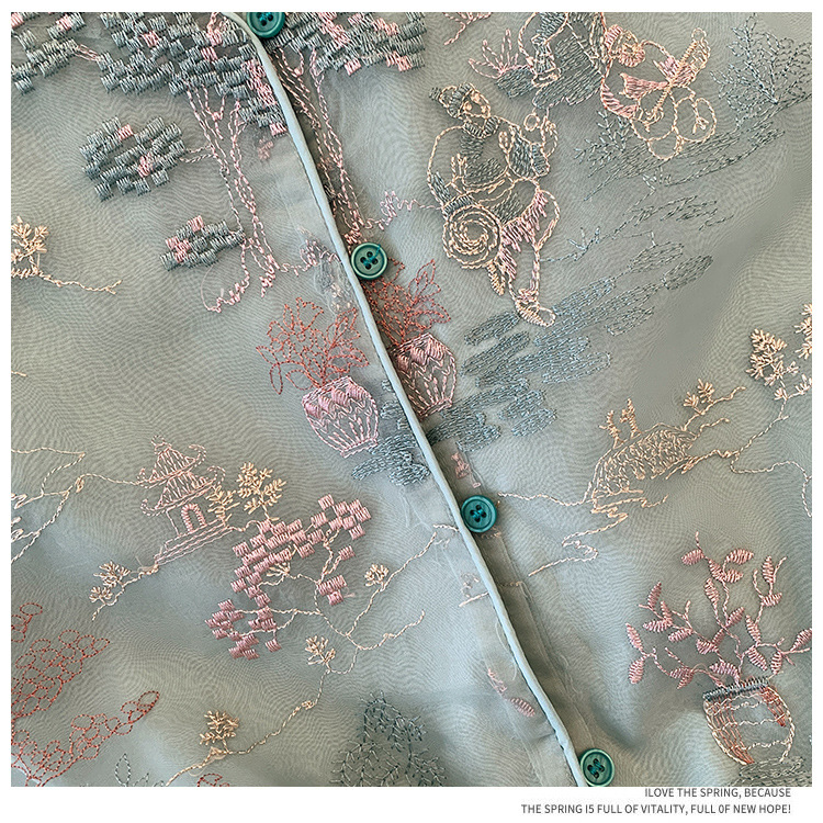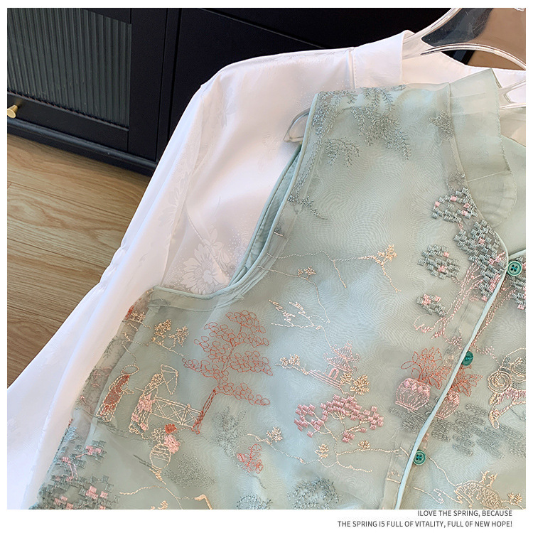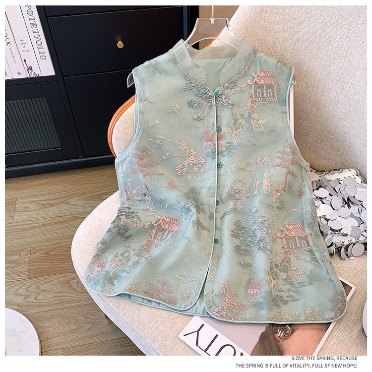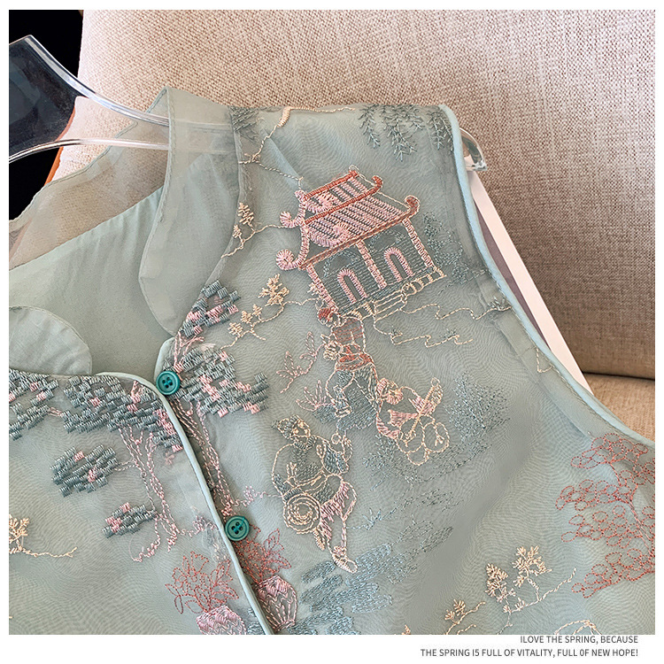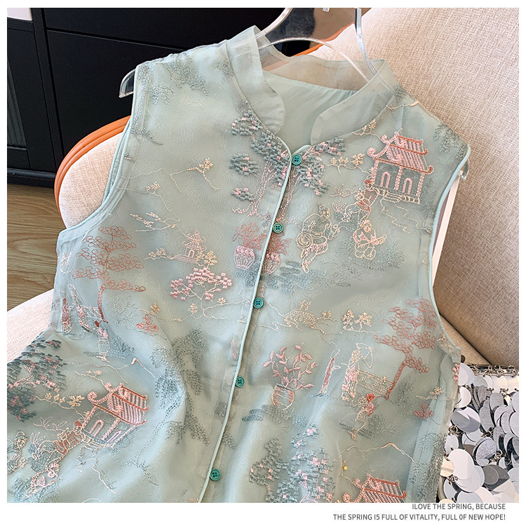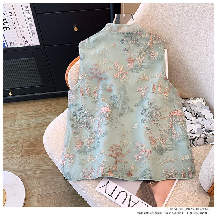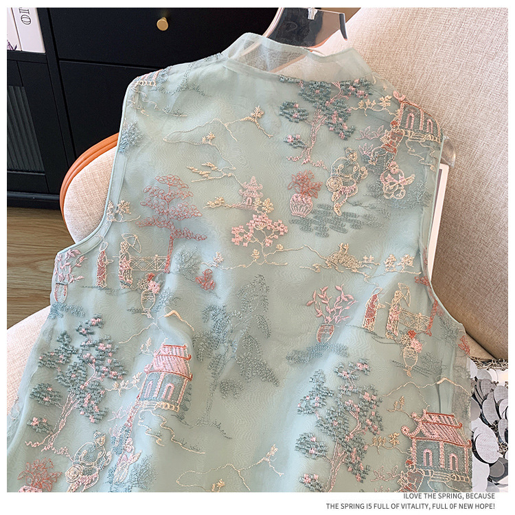 KQLB105M3385 2024春季新款重工整件刺绣欧根纱马甲双层中式外套女
