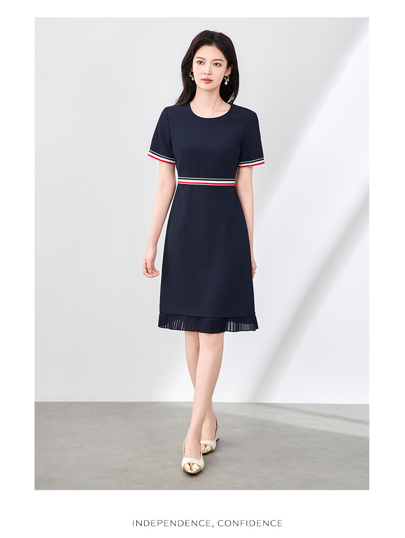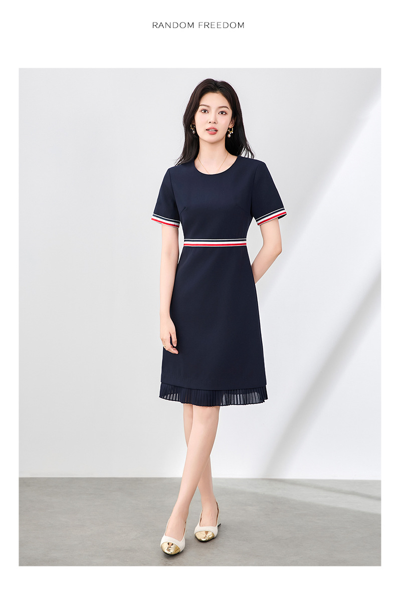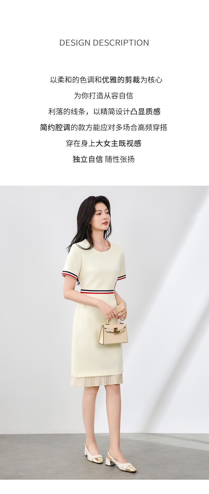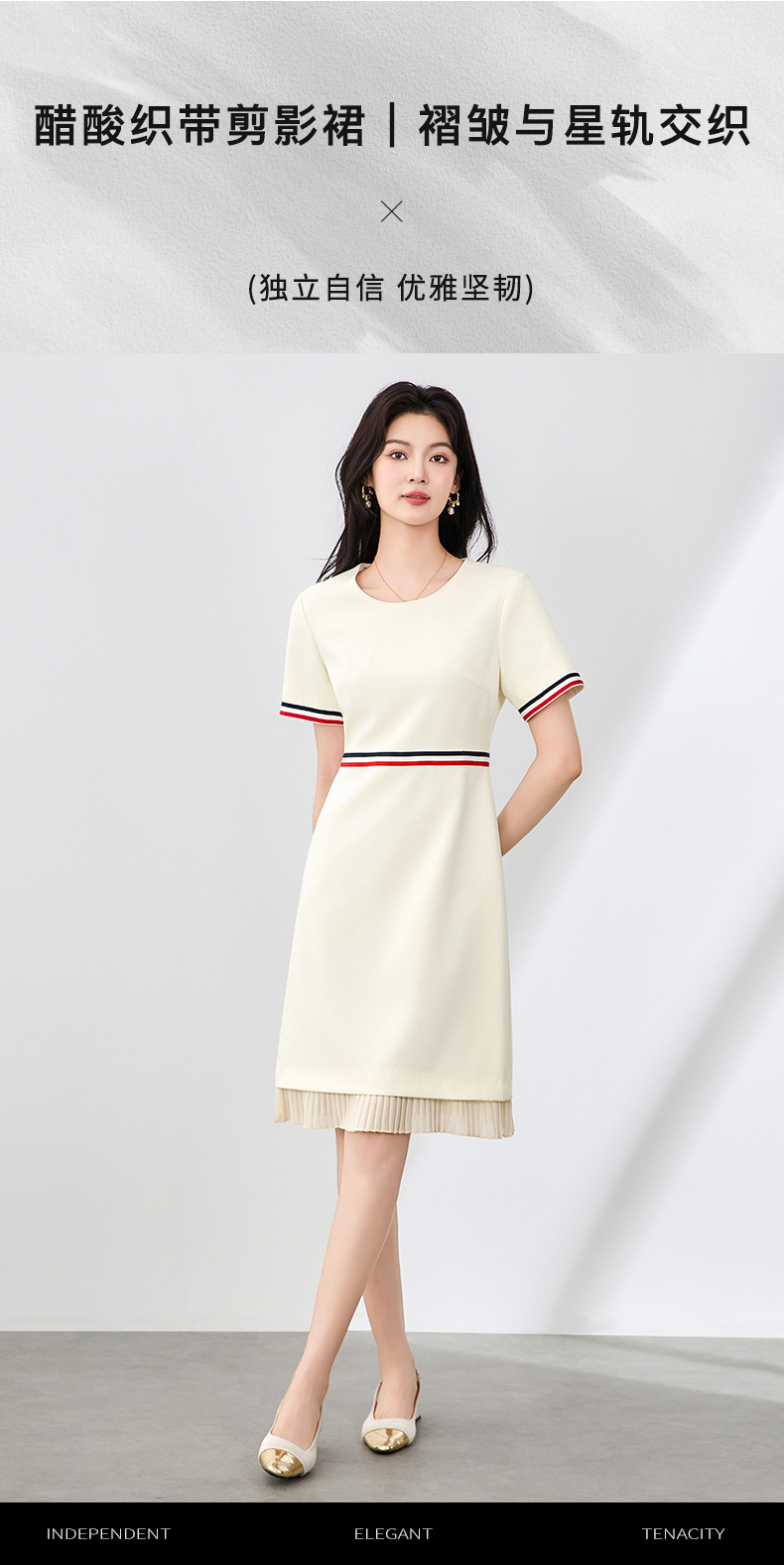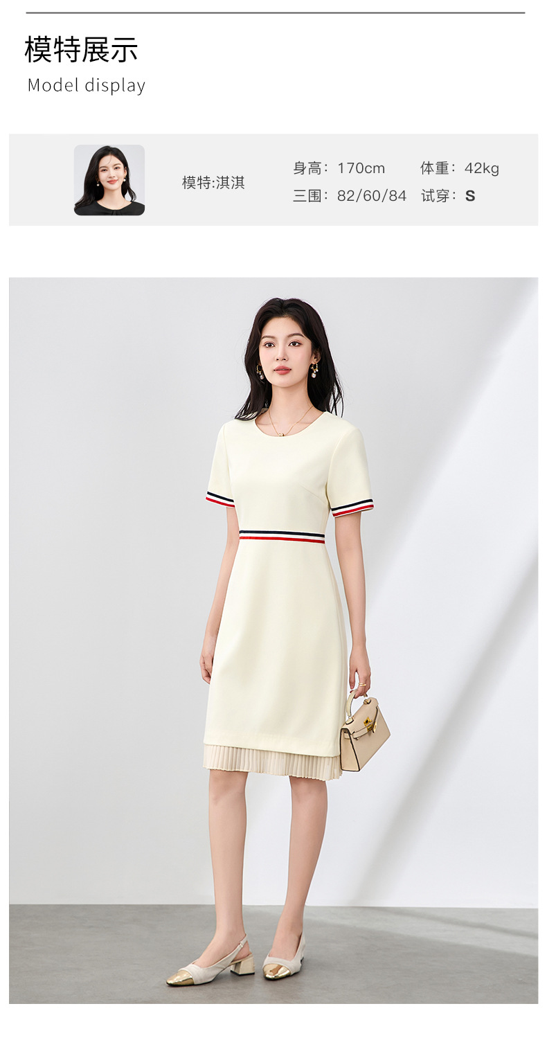 「高货wl」全新升级【铂金会员330/天猫439/差价109】(04216)洛诗琳2025夏季新款简约雅致醋酸撞色条纹拼接A字连衣裙