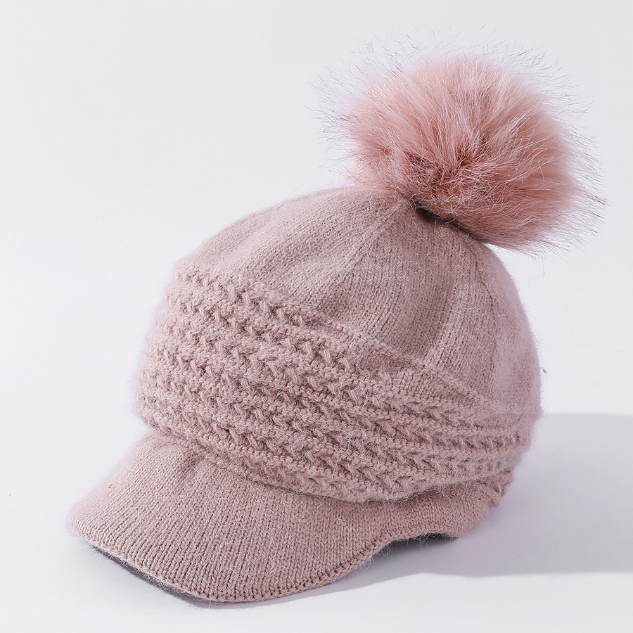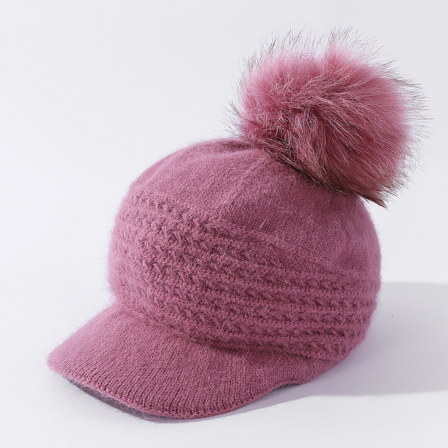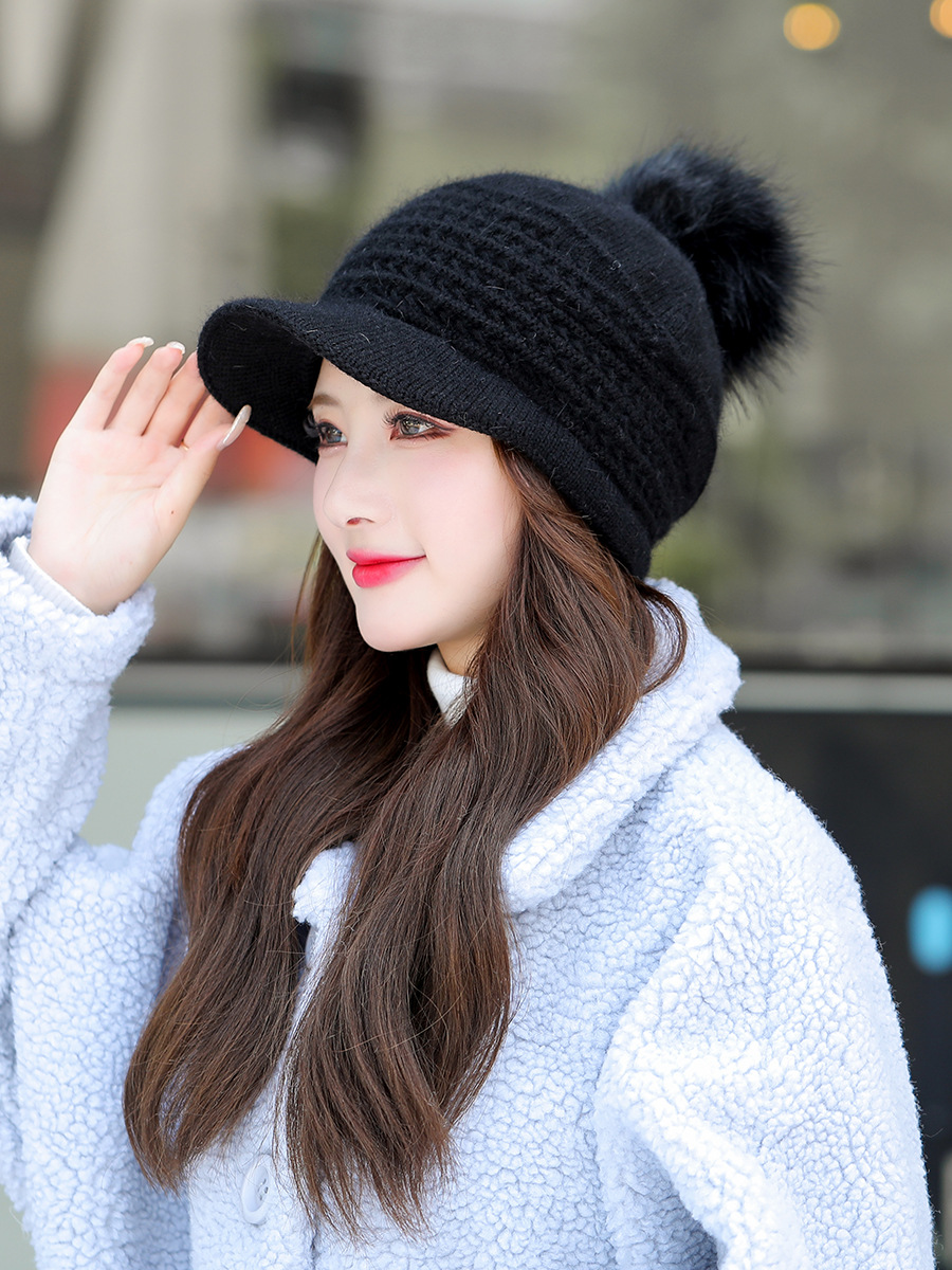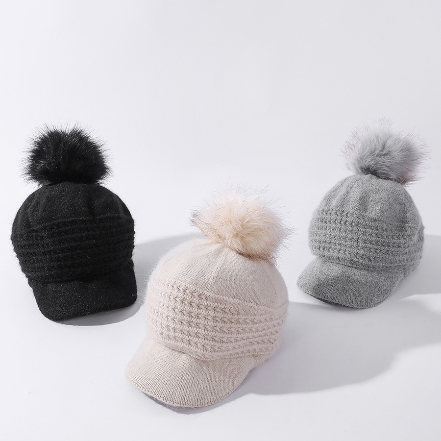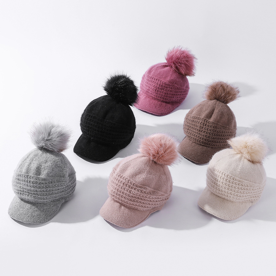 JC-T2-M1321(PH箭头兔毛棒球帽)兔毛棒球帽子女韩国户外加绒保暖针织帽韩版箭头休闲毛球毛线帽冬
