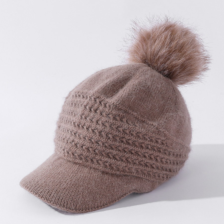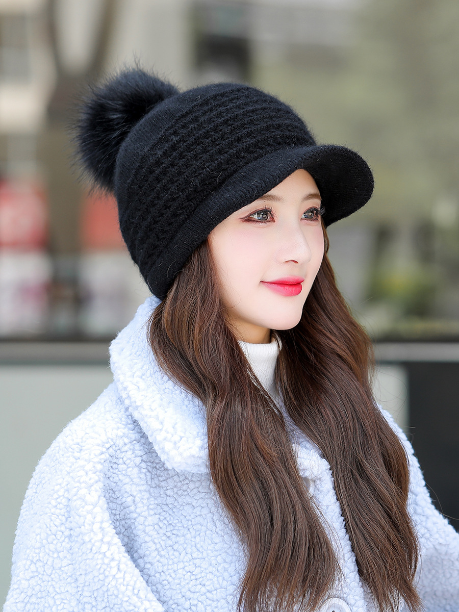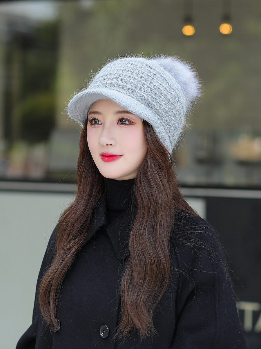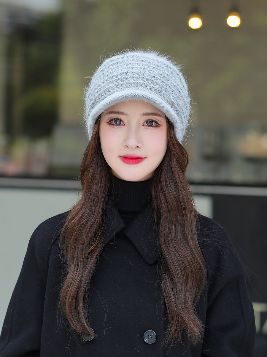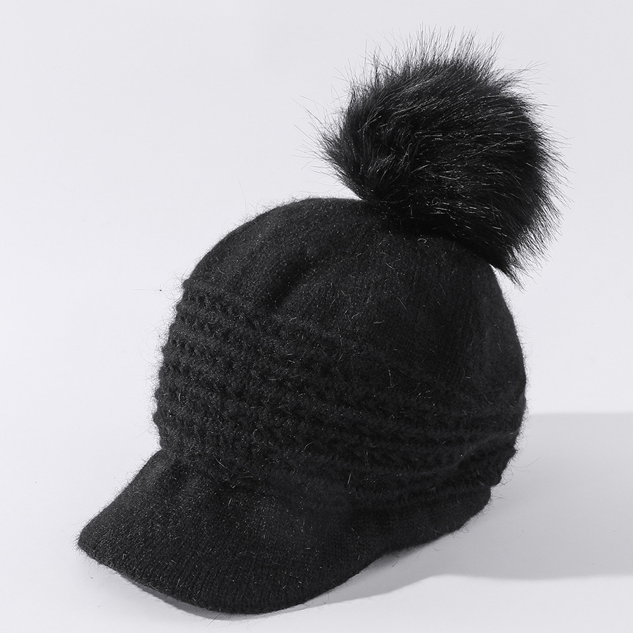 JC-T2-M1321(PH箭头兔毛棒球帽)兔毛棒球帽子女韩国户外加绒保暖针织帽韩版箭头休闲毛球毛线帽冬