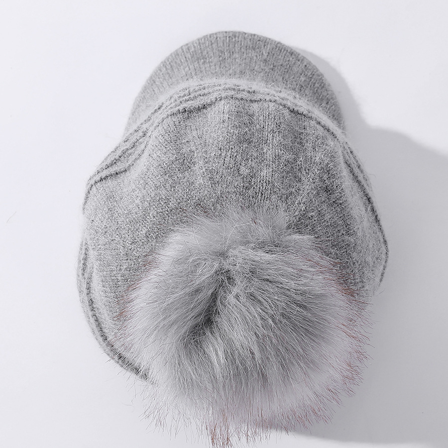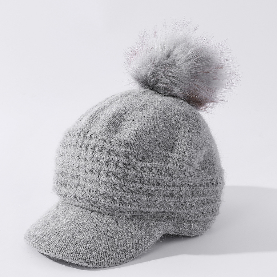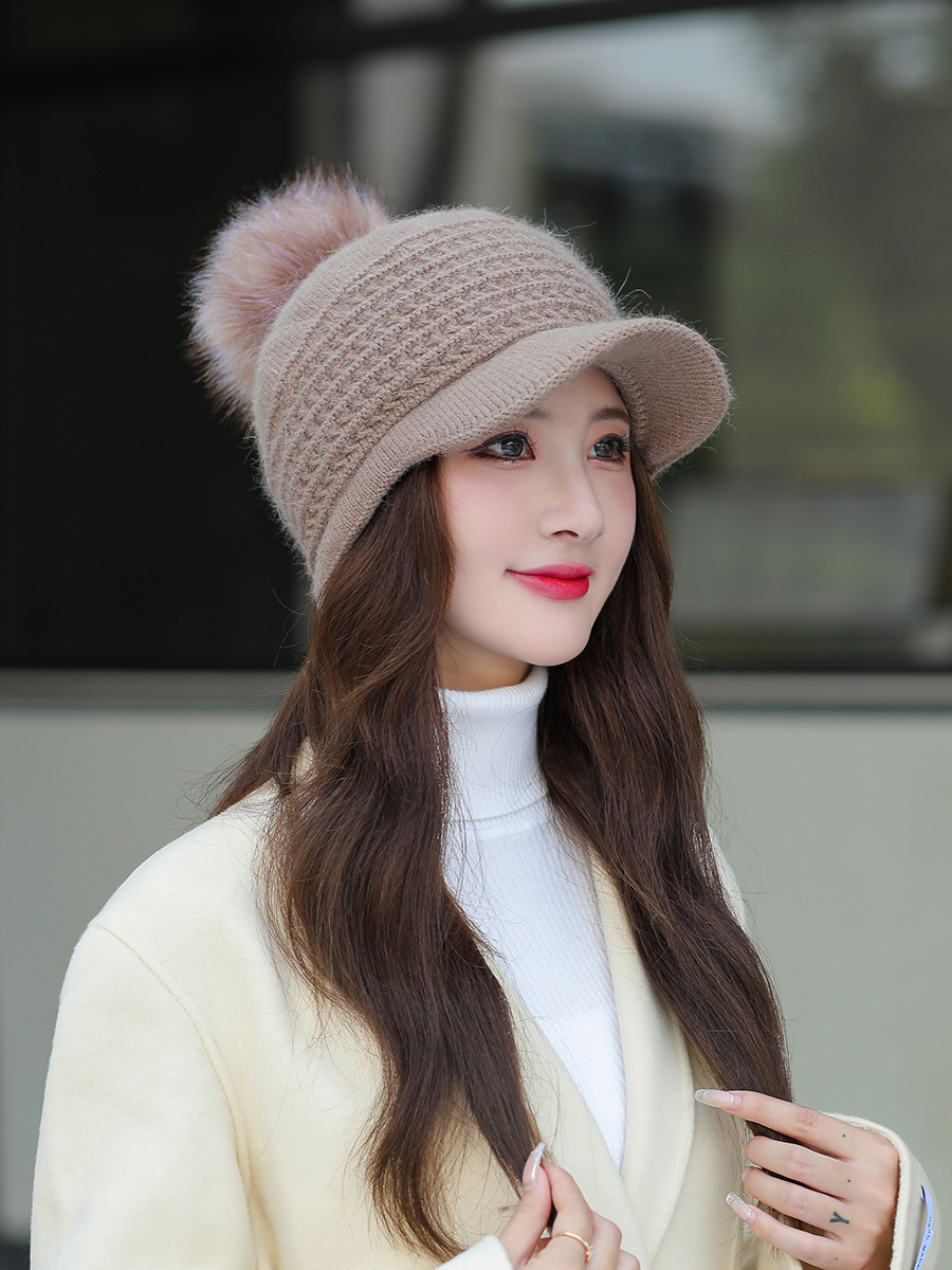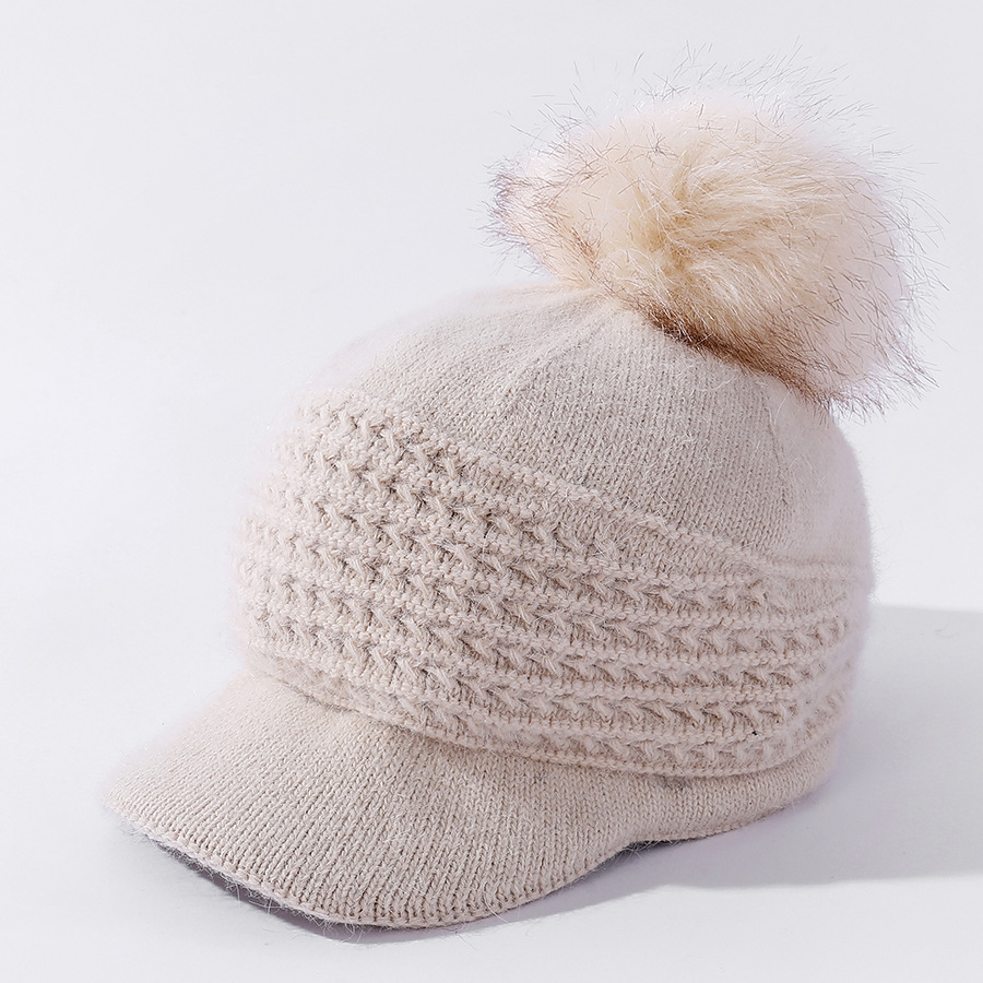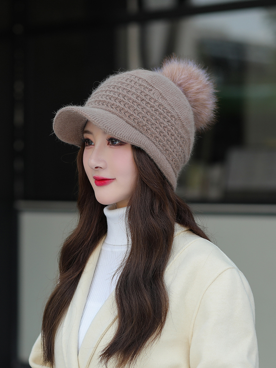 JC-T2-M1321(PH箭头兔毛棒球帽)兔毛棒球帽子女韩国户外加绒保暖针织帽韩版箭头休闲毛球毛线帽冬
