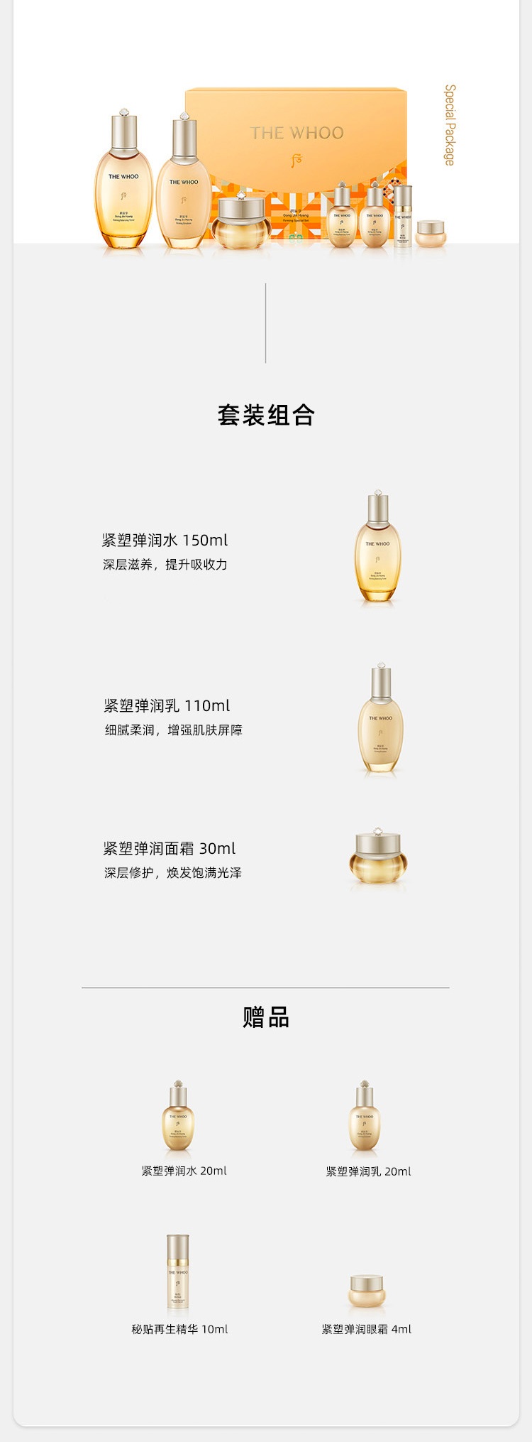 【保税仓】THE WHOO拱辰享七件套(水150ml+乳110ml+面霜30ml+水中样20ml+乳中样20ml+精华10ml+眼霜4ml/套)