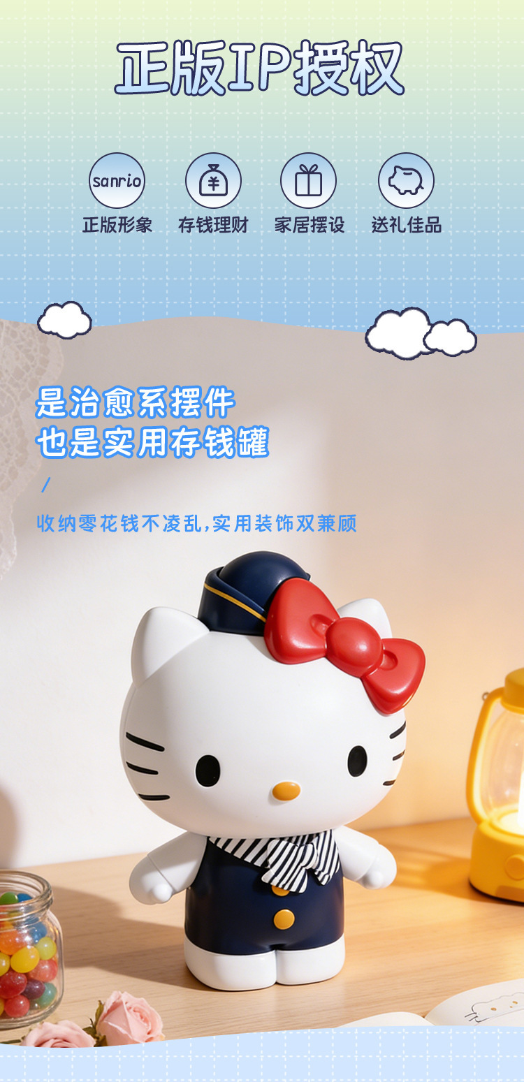 三丽鸥2026新款 正版儿童kitty猫存钱罐 玩偶摆件女孩生日礼物玩具