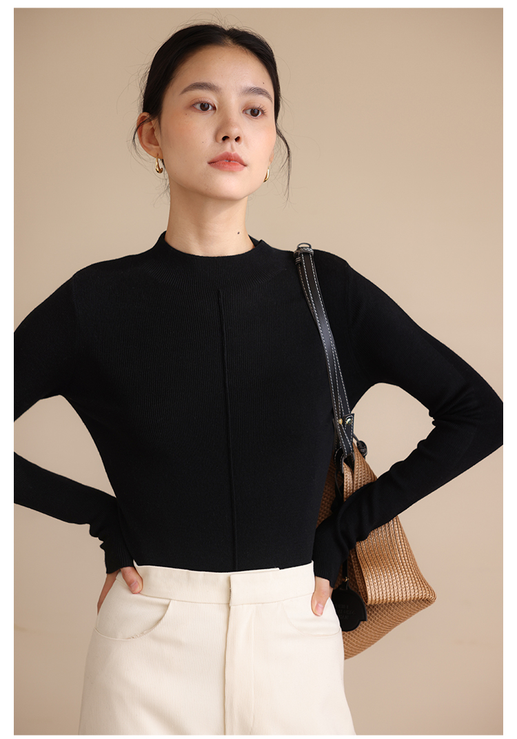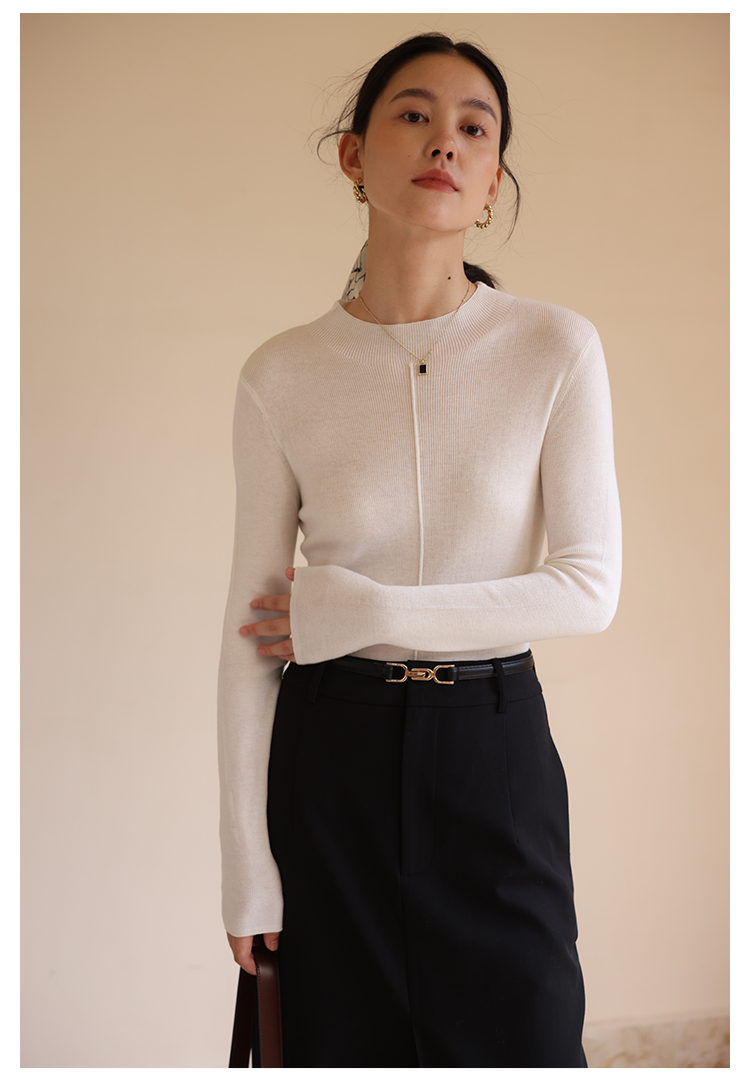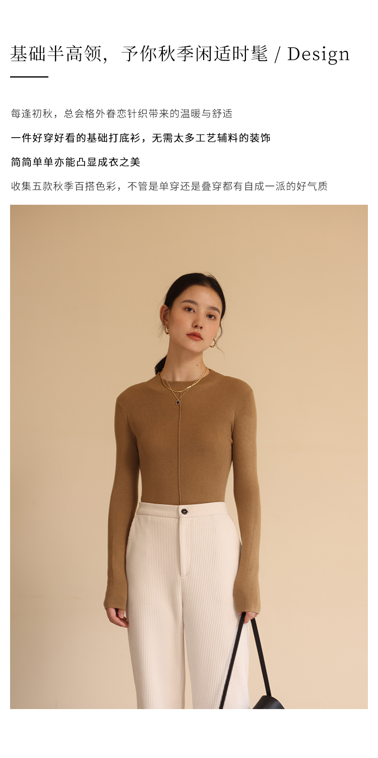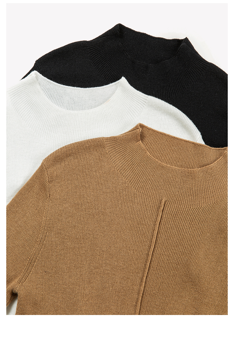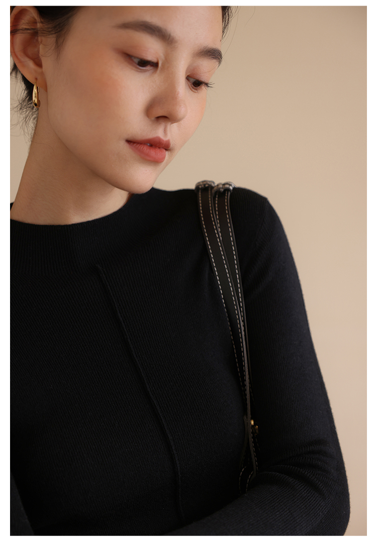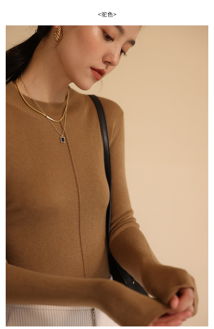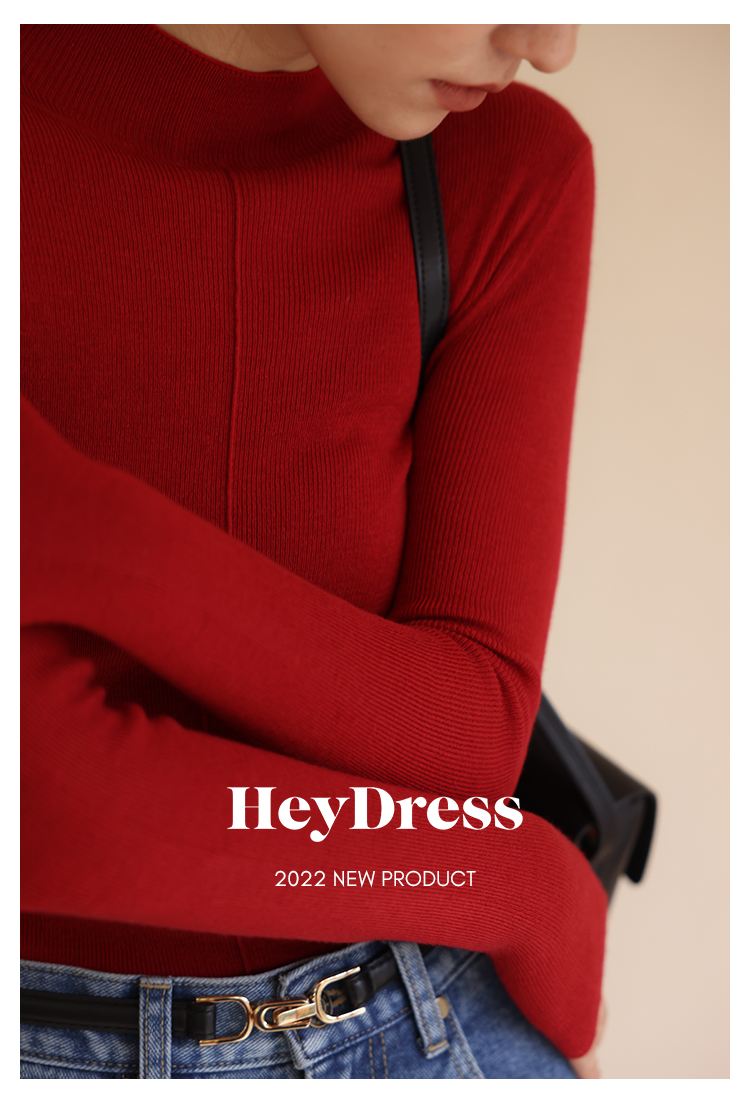 HeyDress半高领针织衫女秋冬圆领修身设计感打底衫内搭上衣