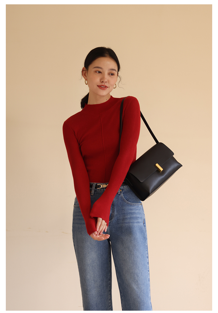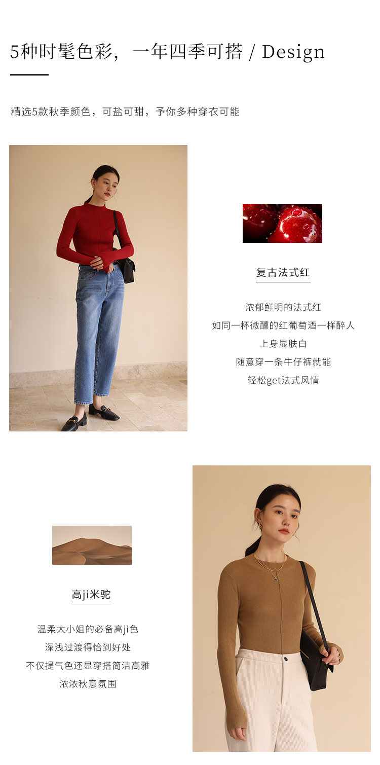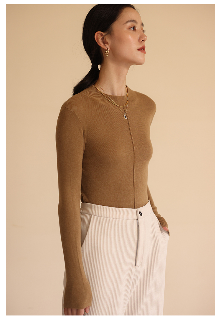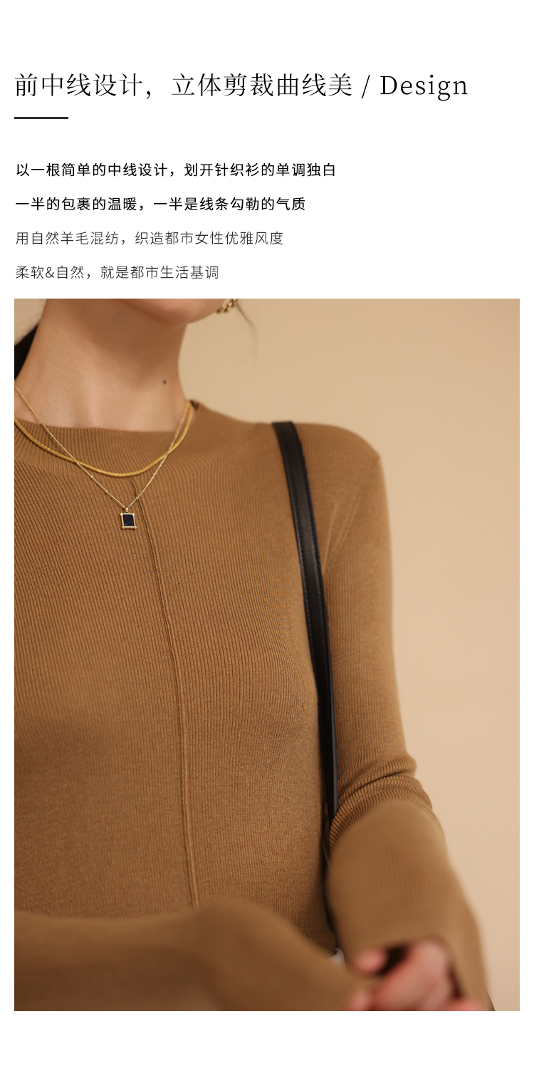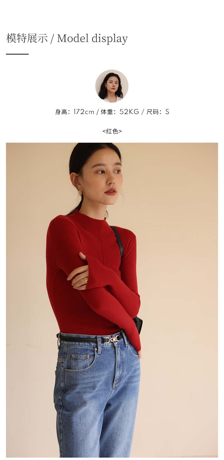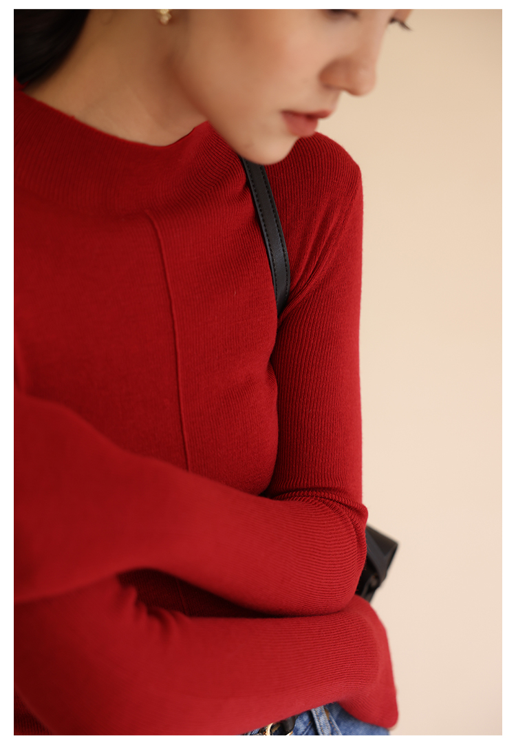 HeyDress半高领针织衫女秋冬圆领修身设计感打底衫内搭上衣