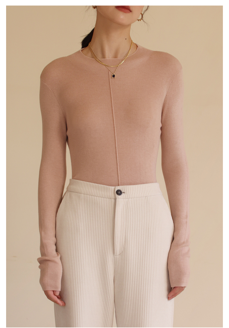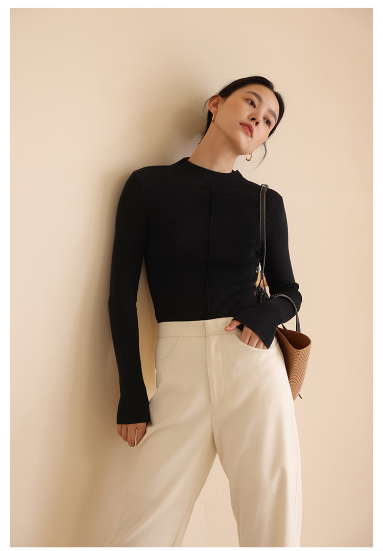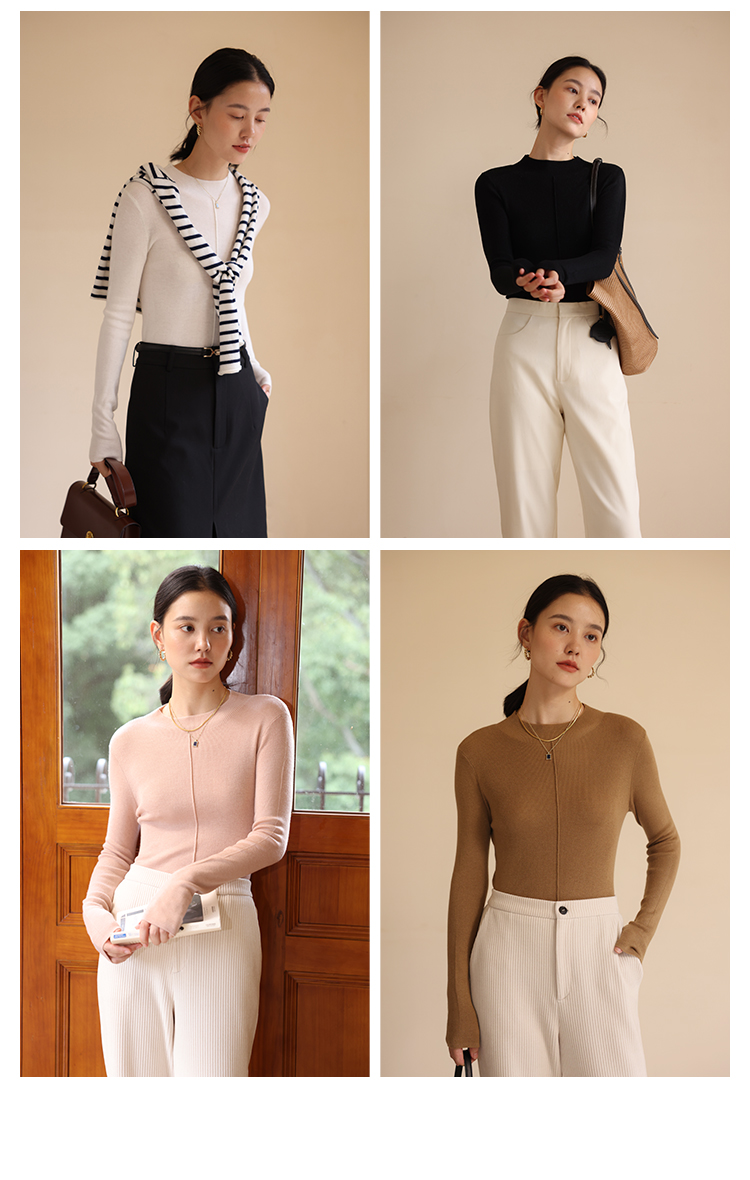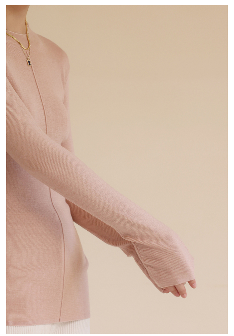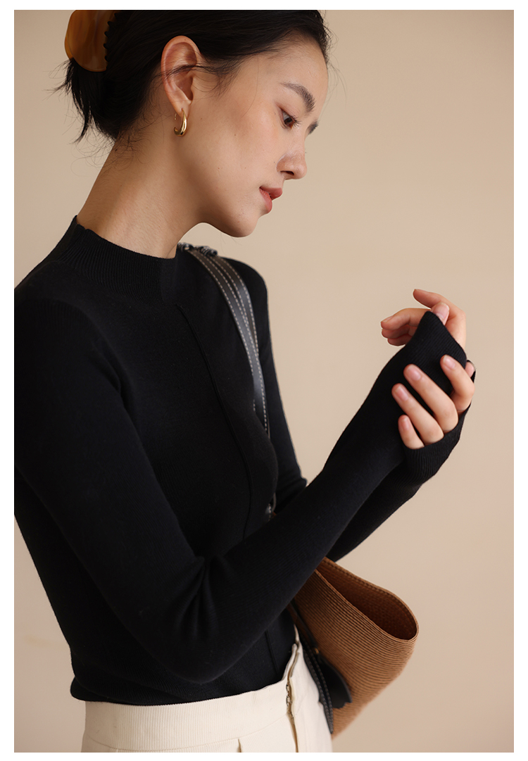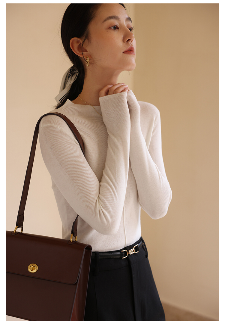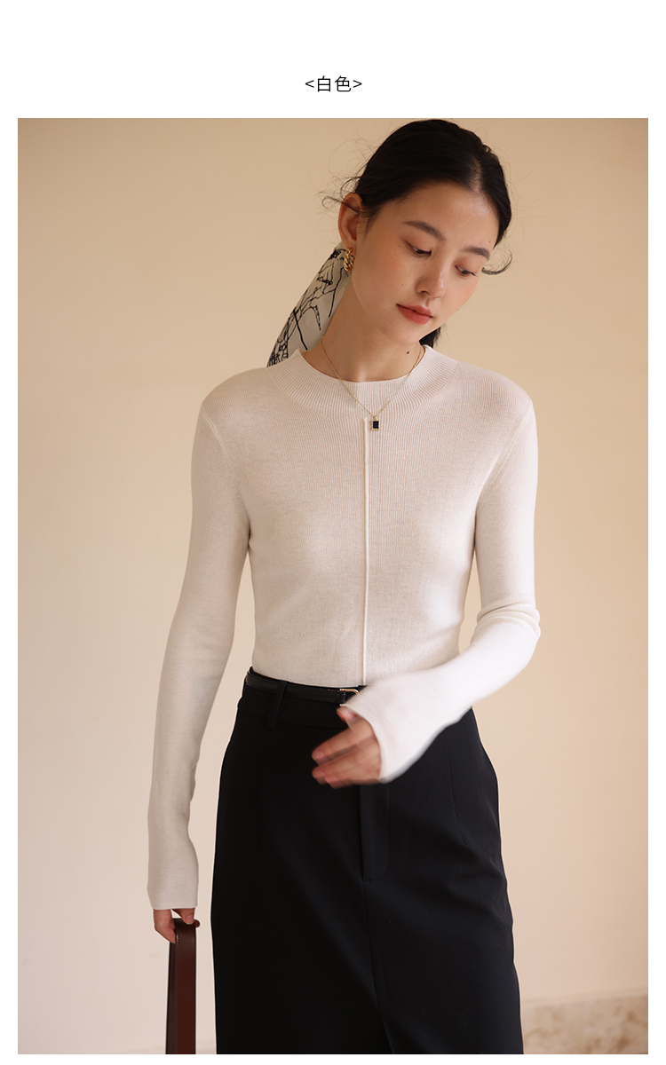 HeyDress半高领针织衫女秋冬圆领修身设计感打底衫内搭上衣