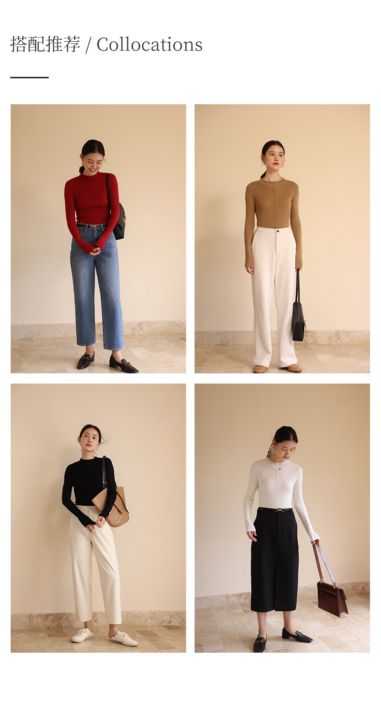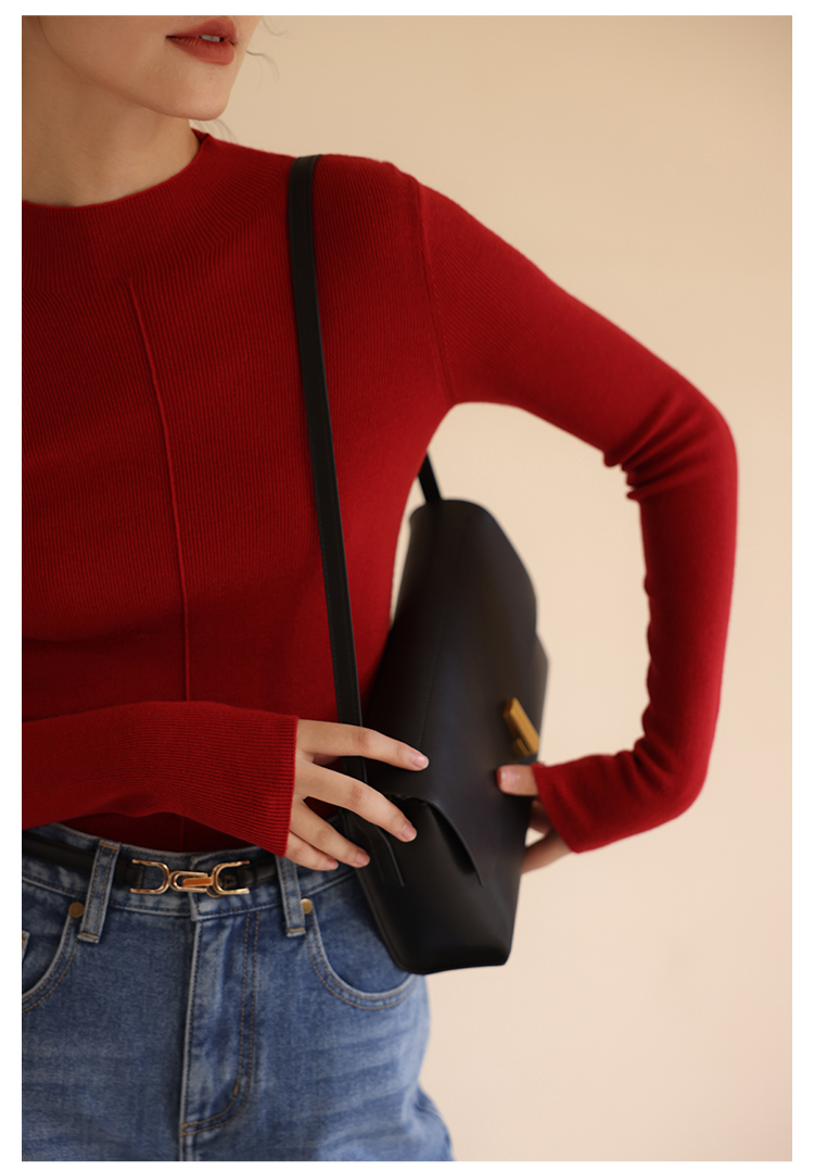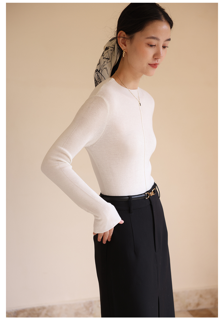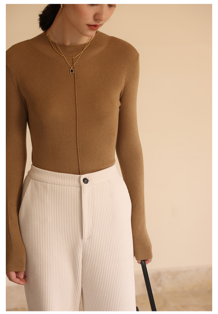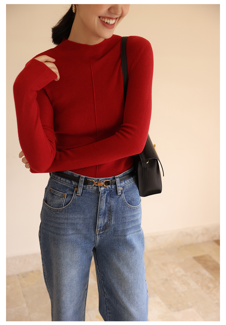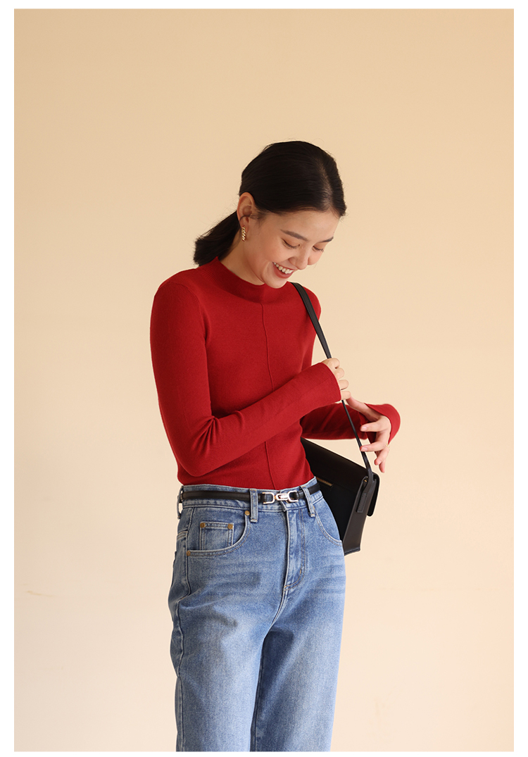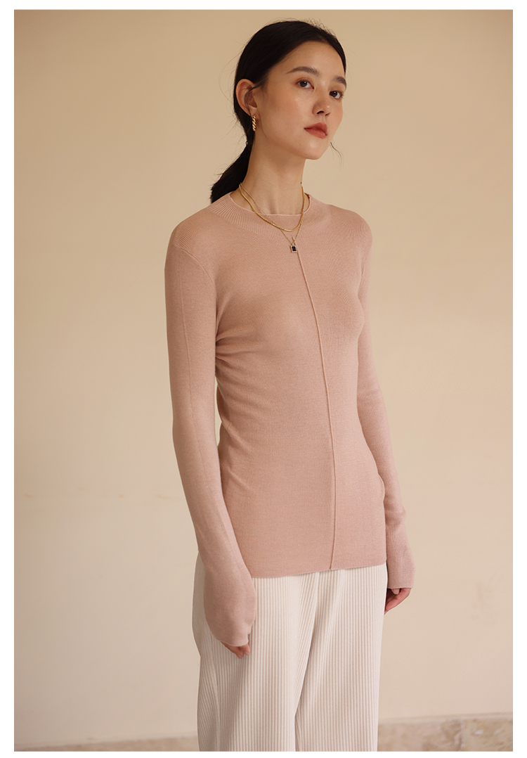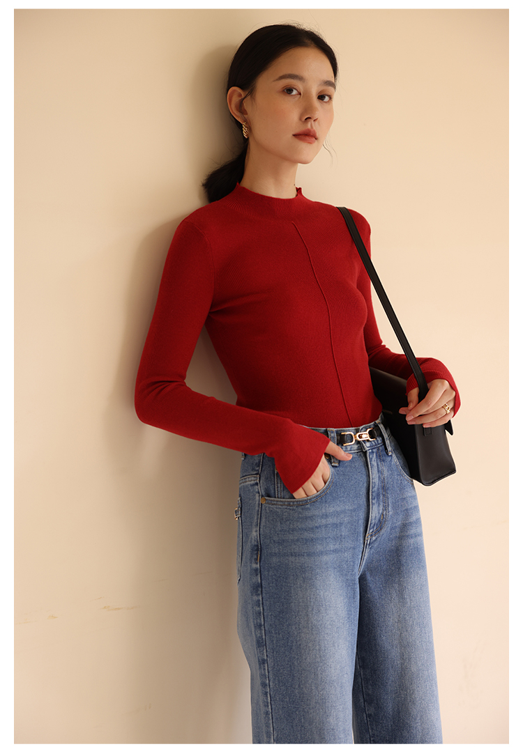 HeyDress半高领针织衫女秋冬圆领修身设计感打底衫内搭上衣