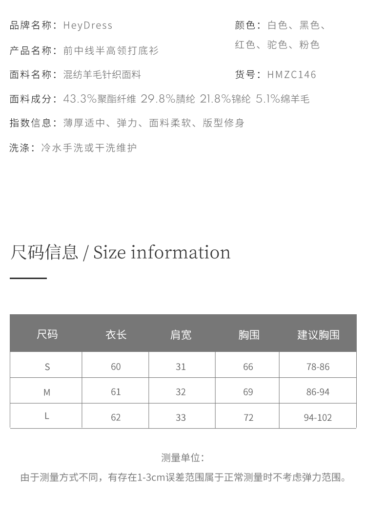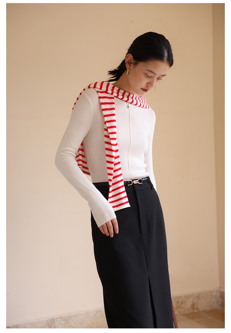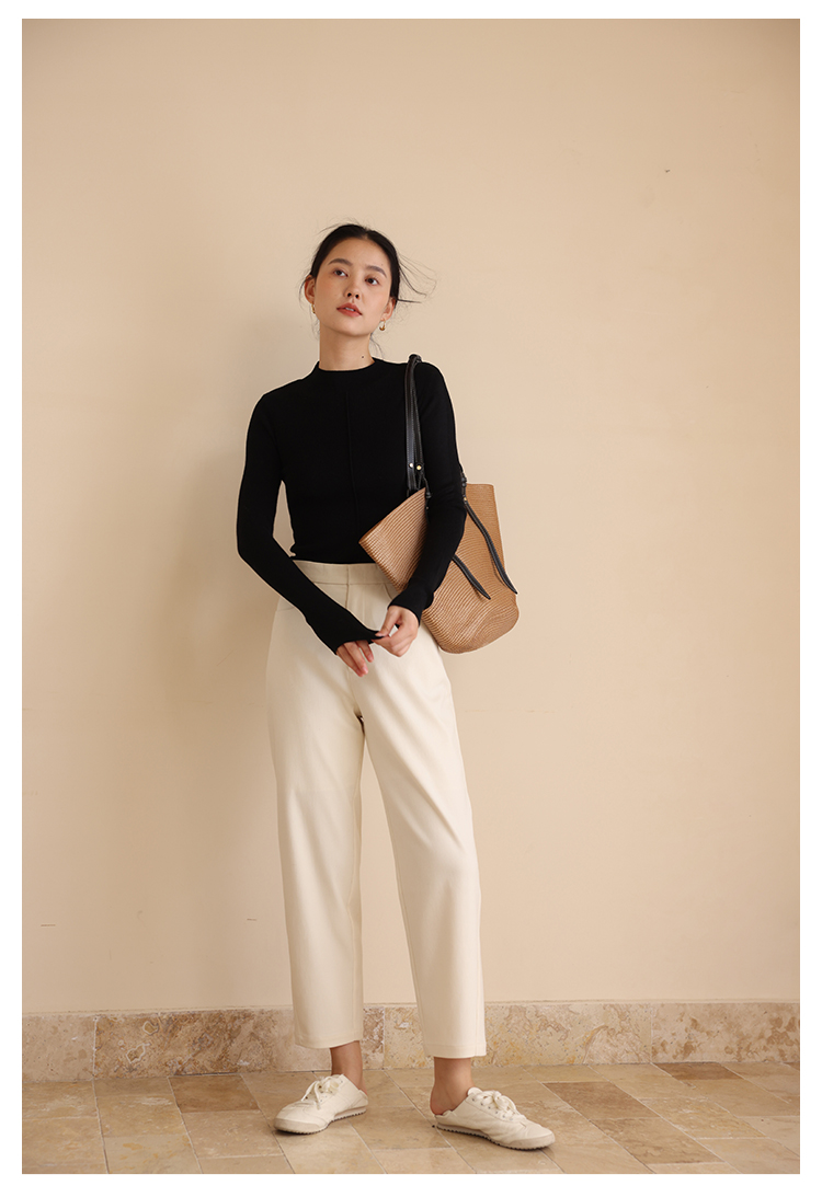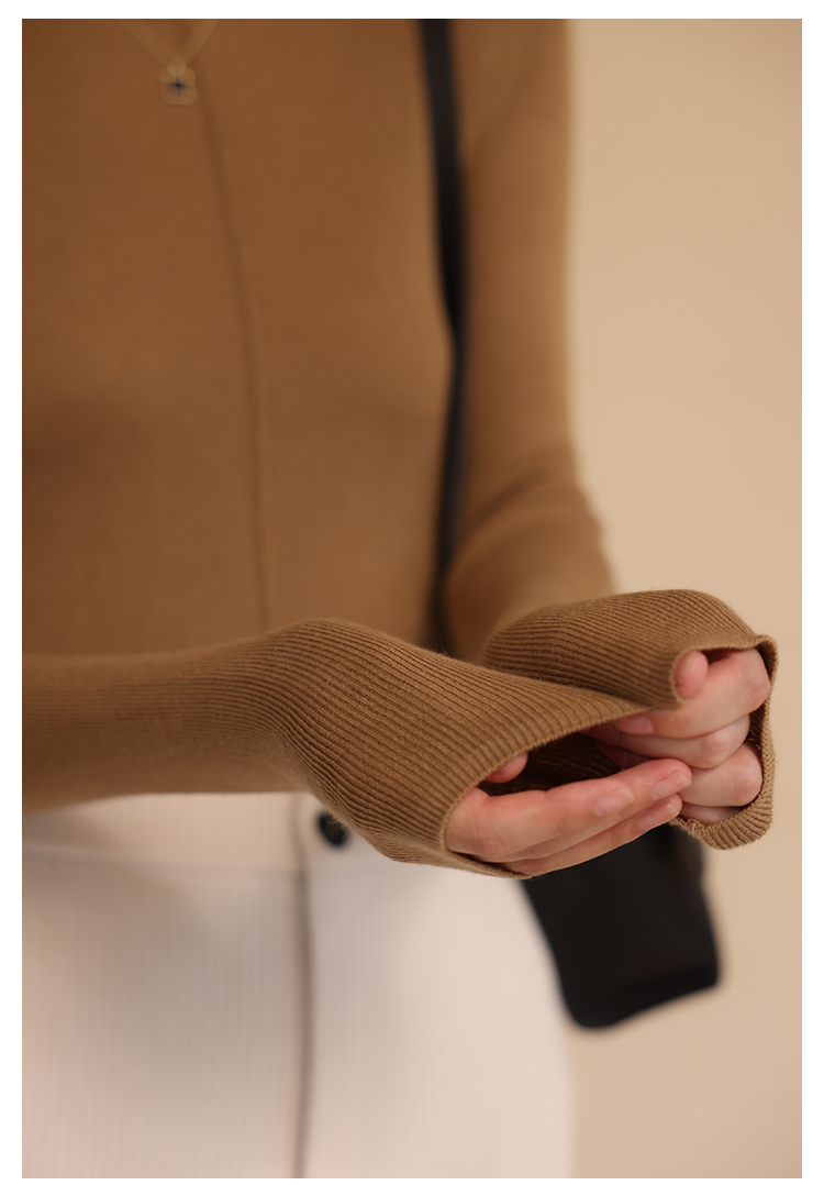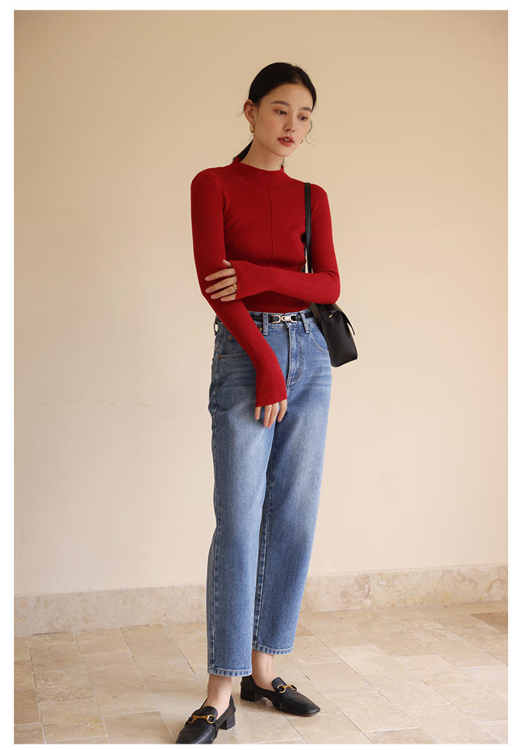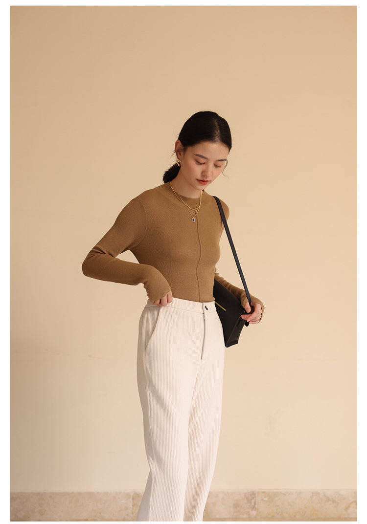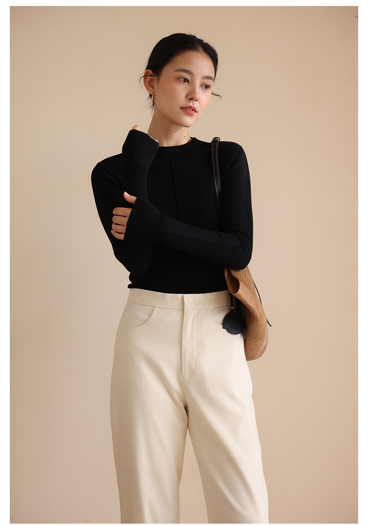 HeyDress半高领针织衫女秋冬圆领修身设计感打底衫内搭上衣