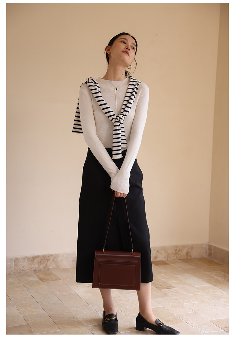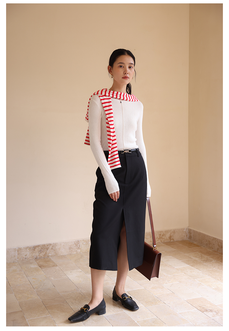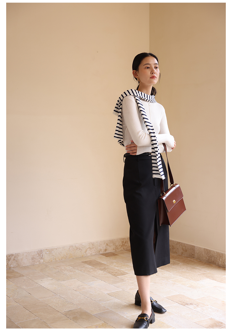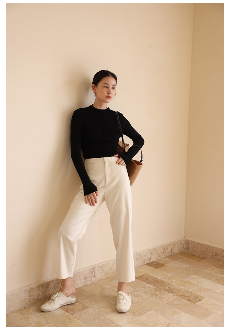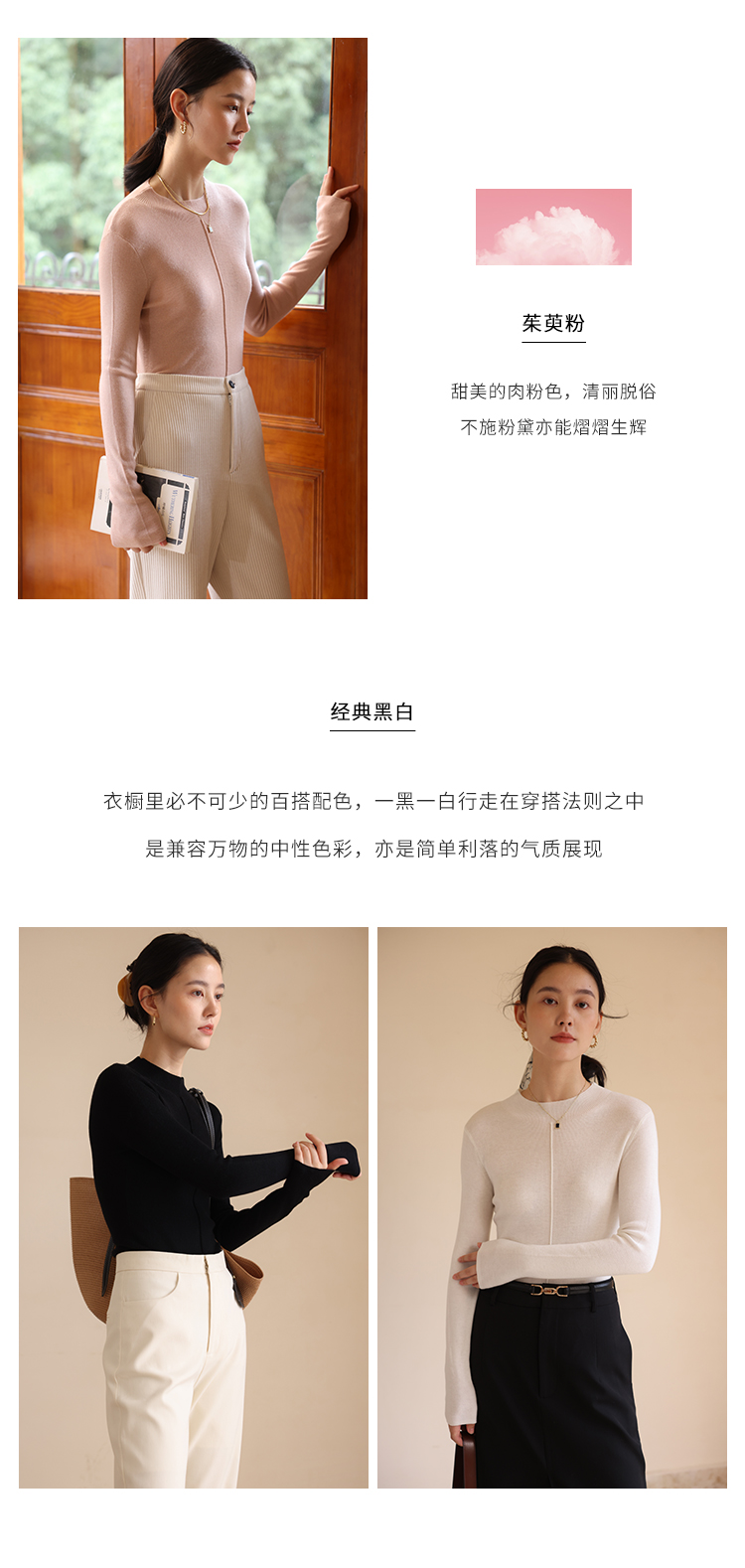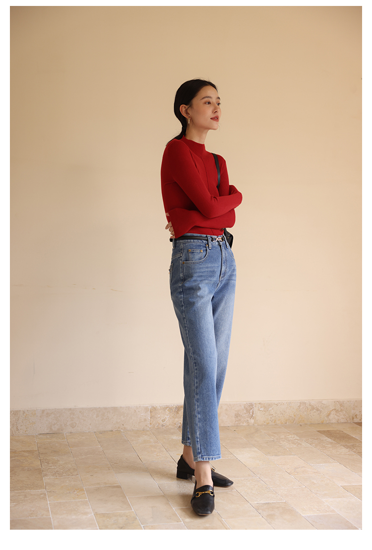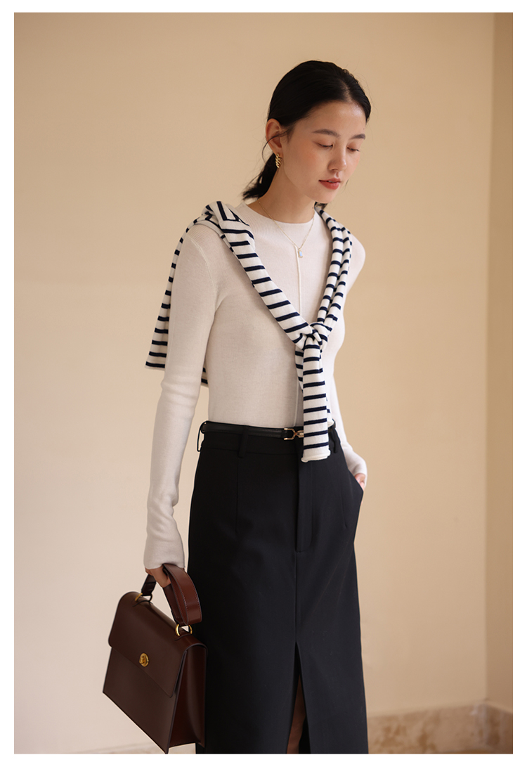 HeyDress半高领针织衫女秋冬圆领修身设计感打底衫内搭上衣