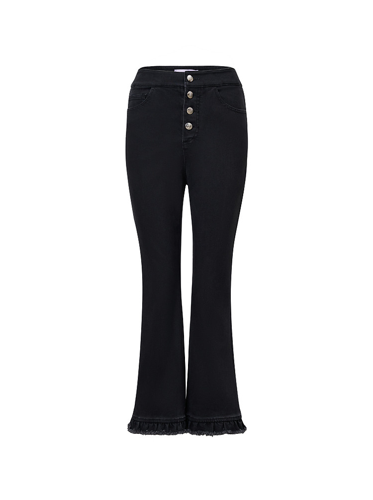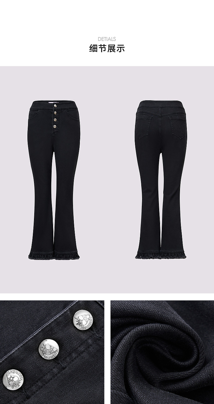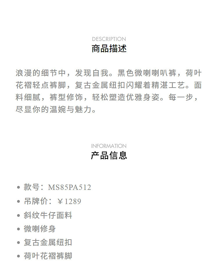 MAXRIENY精致日常风微喇叭秋冬浪漫荷叶裤脚休闲长裤